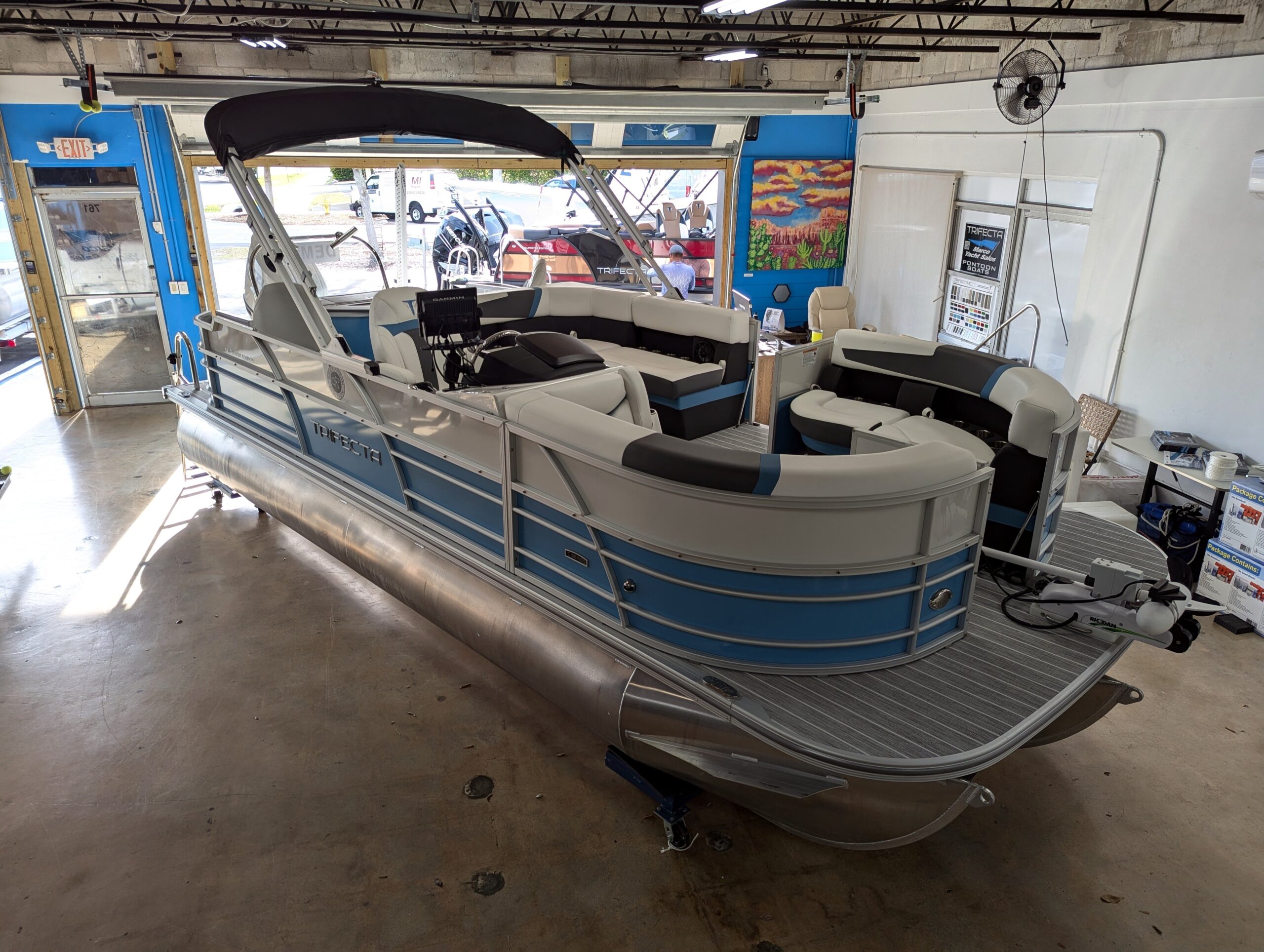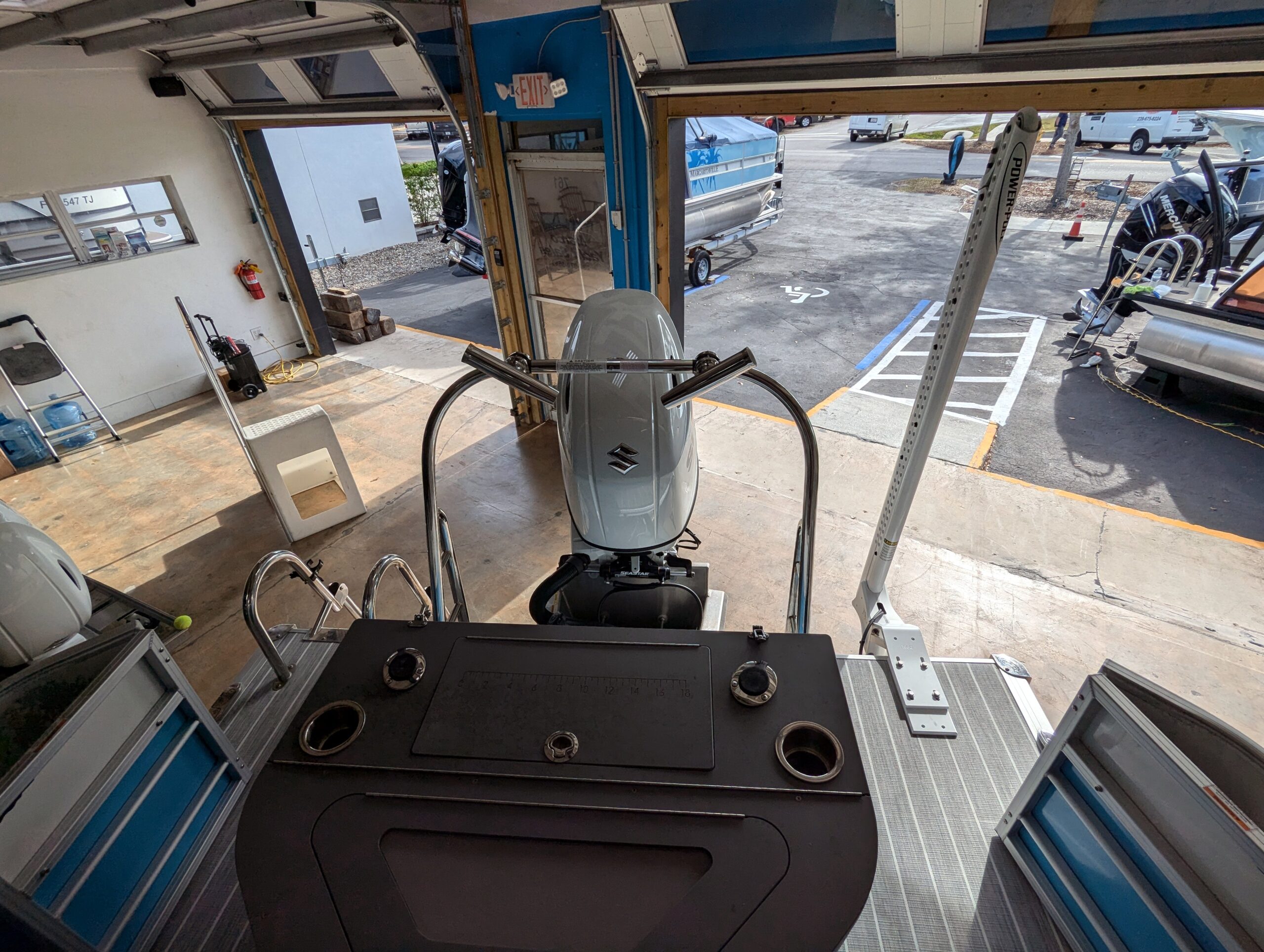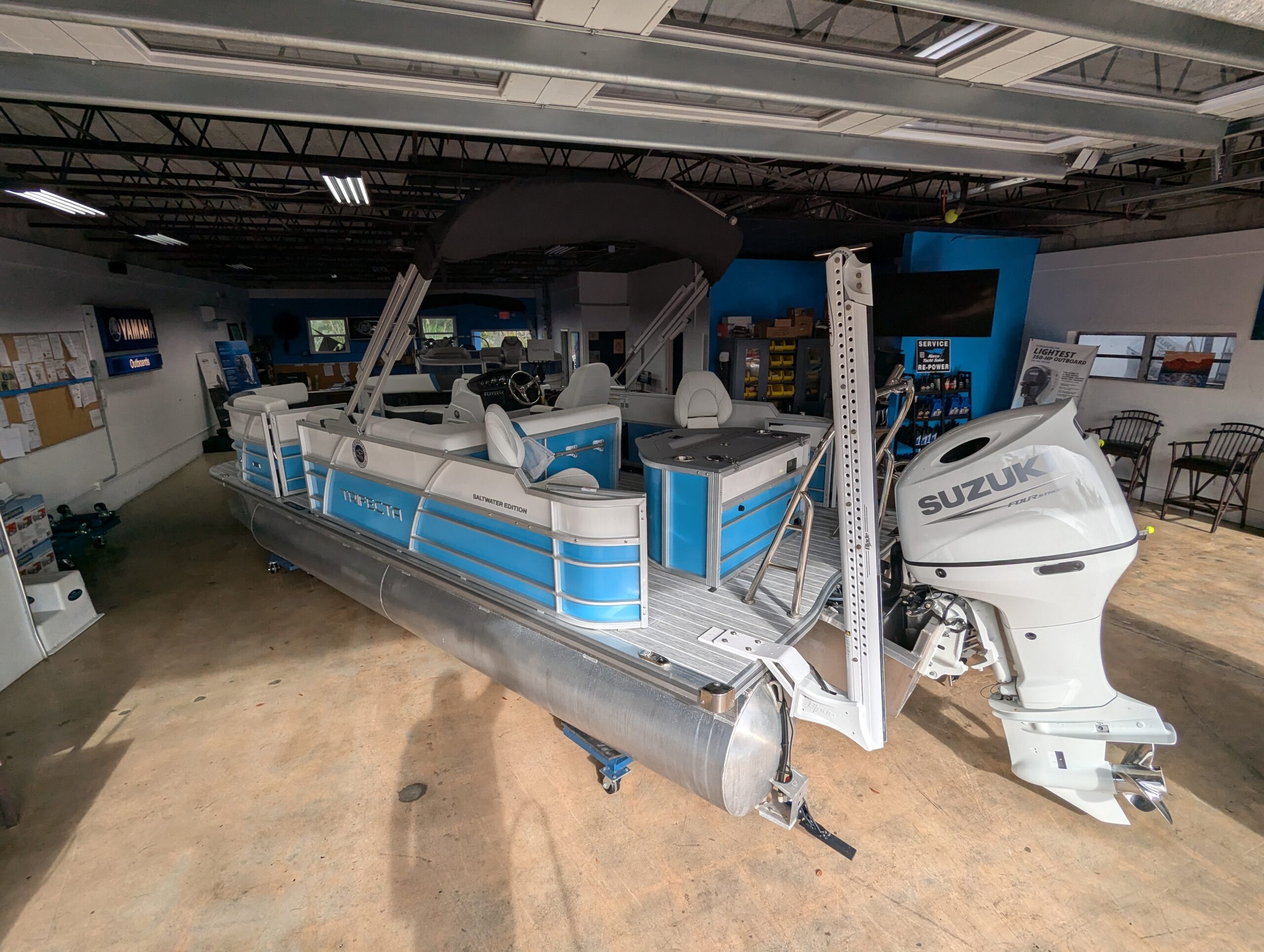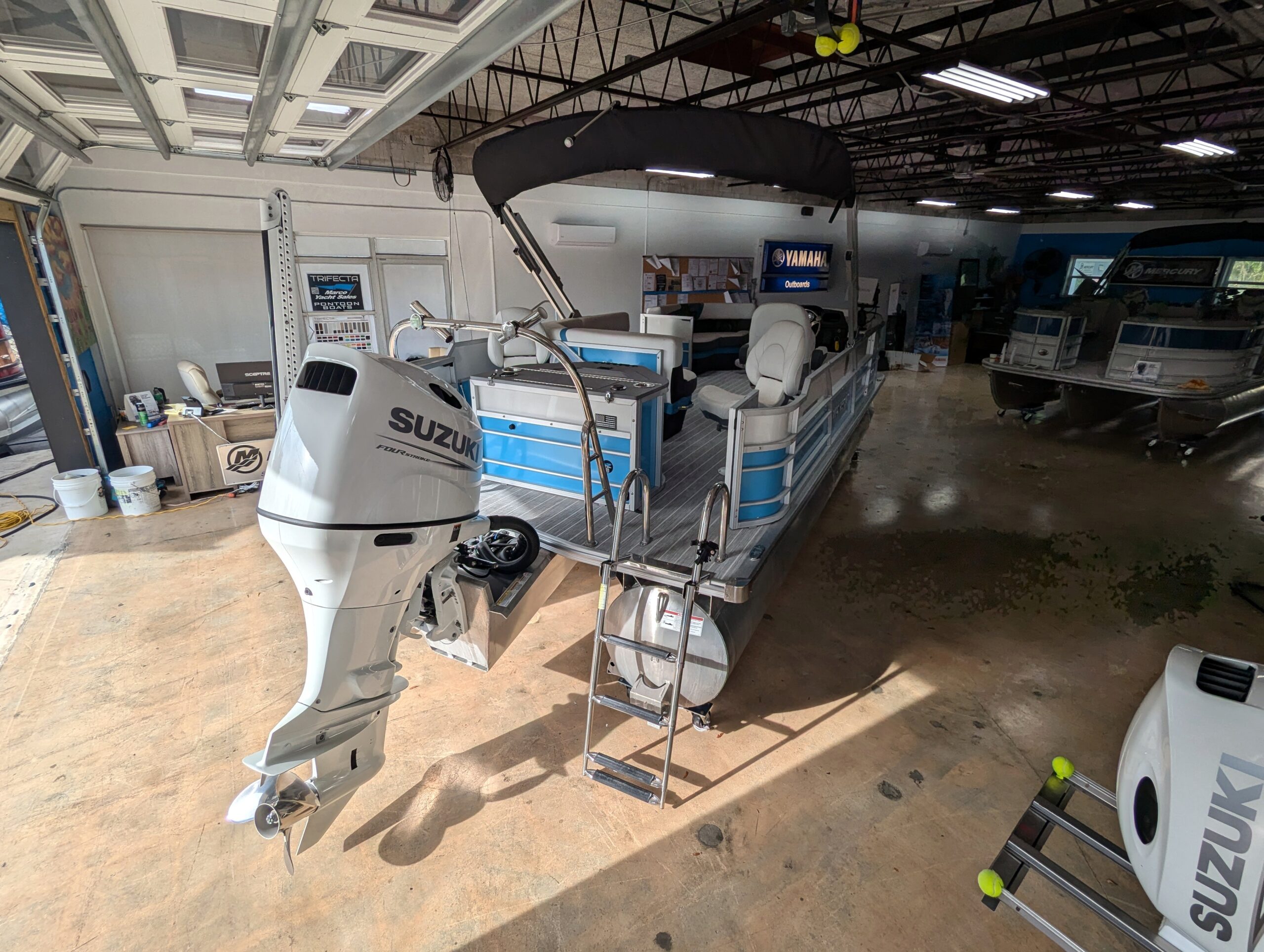 FACTORY OPTIONS: Saltwater Edition Package, Lagoon Accent, 25" Shaft Transom, Smoke Teak Flooring, Power Assist Steering Pump, Suzuki Mechanical Pre-Rig, HD Folding Table, Trolling Motor Outlet & Half Gate, Dual Battery Switch & Charger, SS Pop Up Cleats (Qty 4), SS Ski Tow Bar