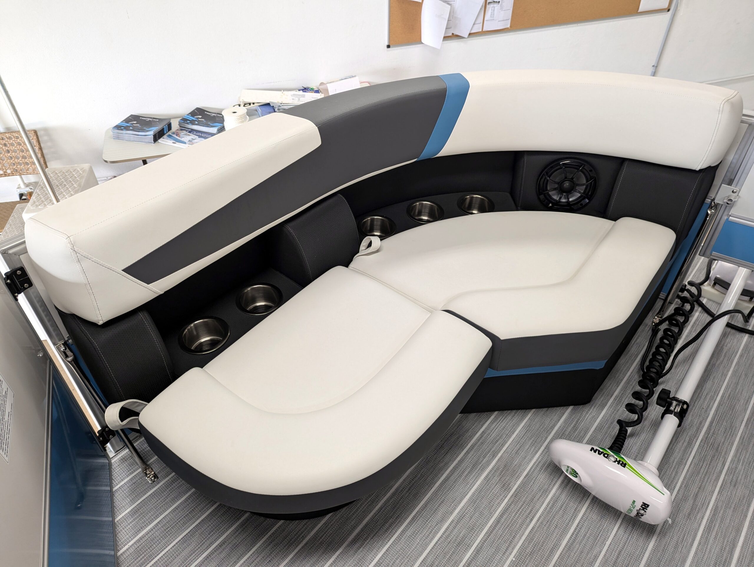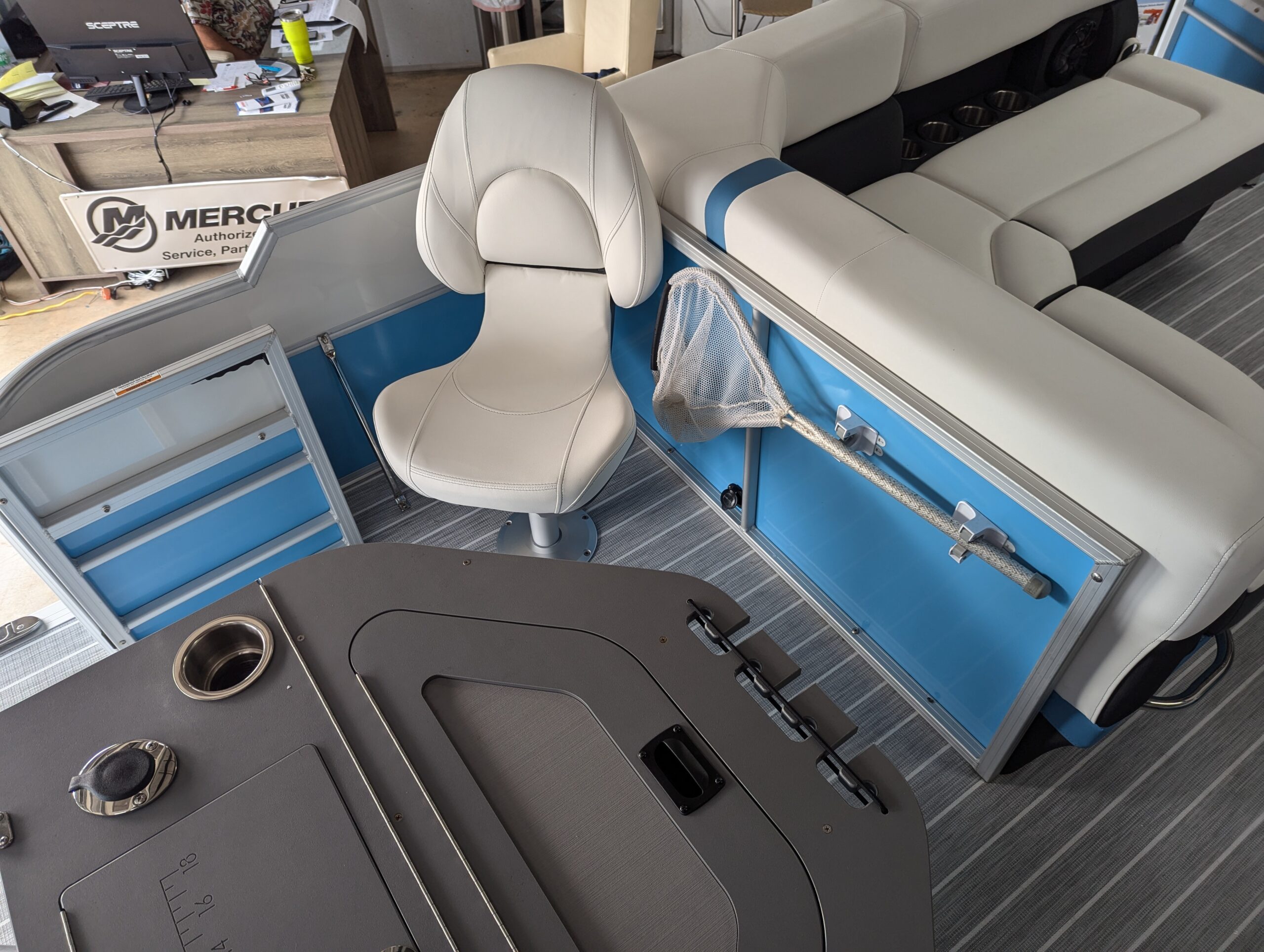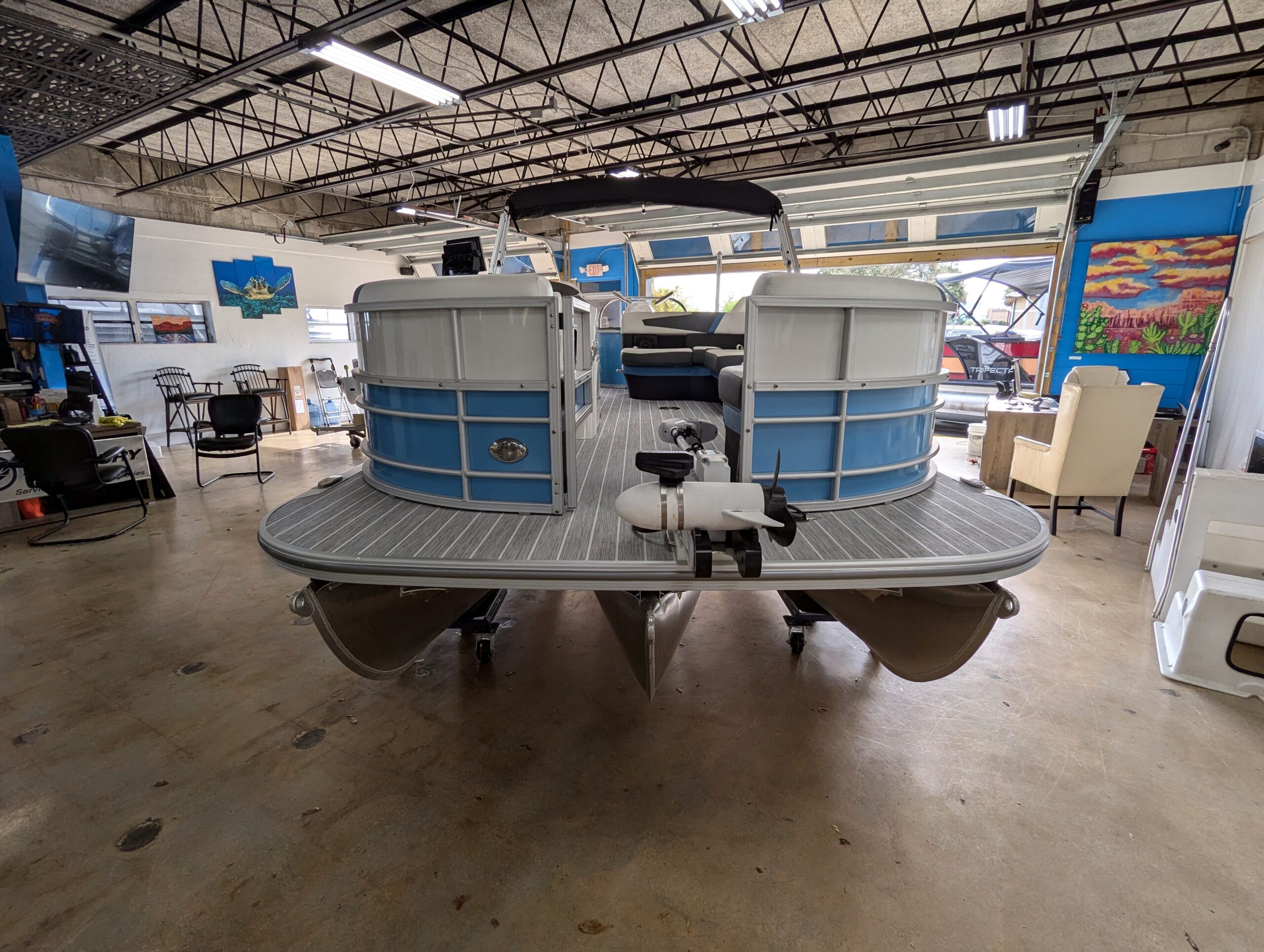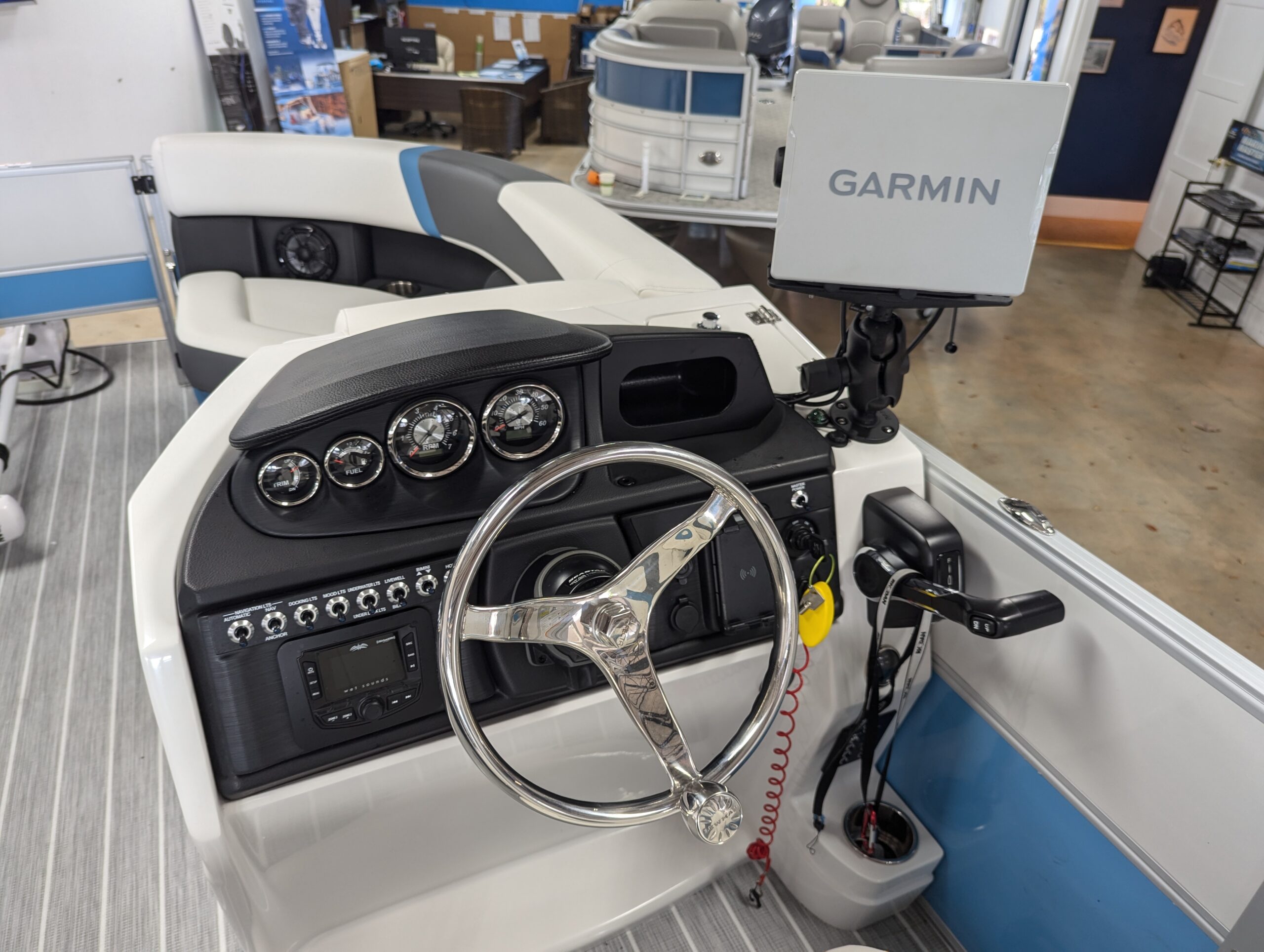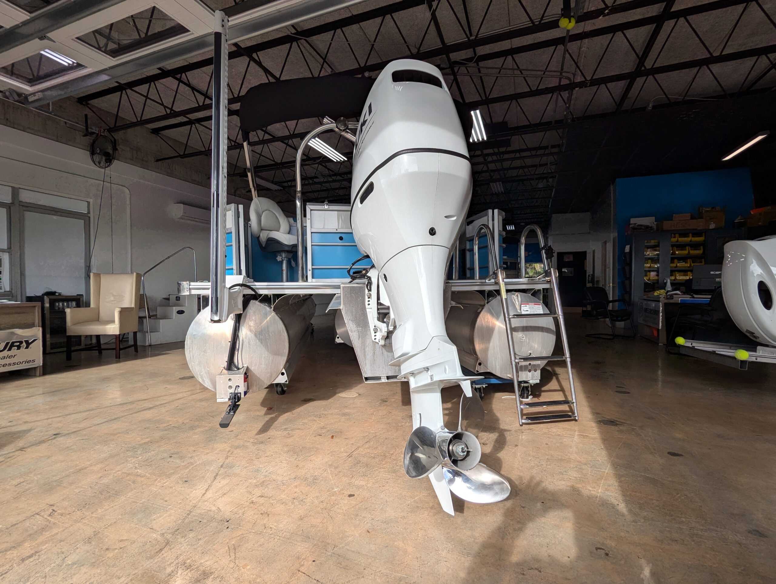 FACTORY OPTIONS: Saltwater Edition Package, Lagoon Accent, 25" Shaft Transom, Smoke Teak Flooring, Power Assist Steering Pump, Suzuki Mechanical Pre-Rig, HD Folding Table, Trolling Motor Outlet & Half Gate, Dual Battery Switch & Charger, SS Pop Up Cleats (Qty 4), SS Ski Tow Bar
