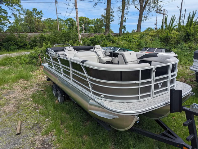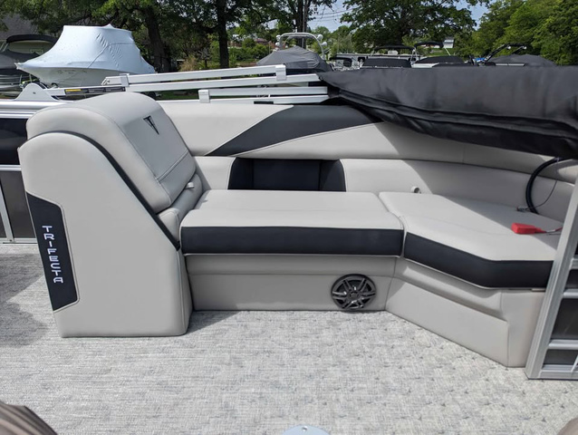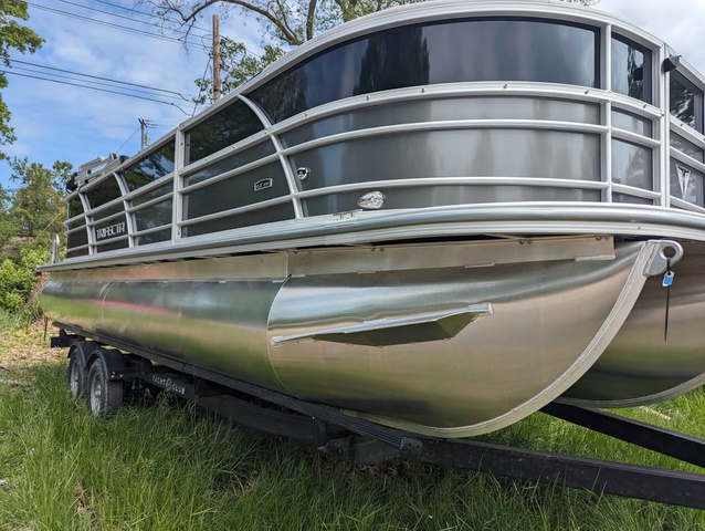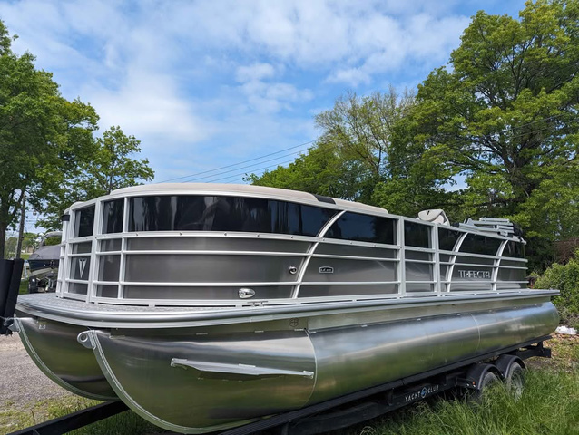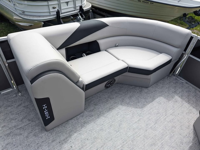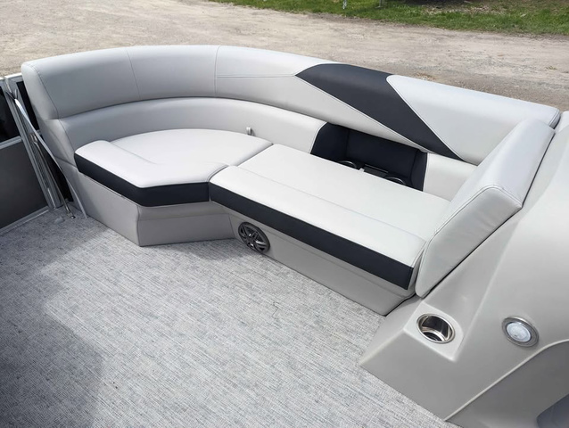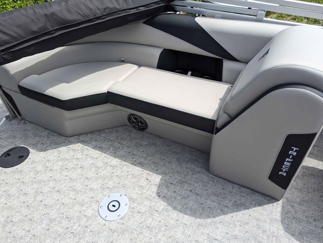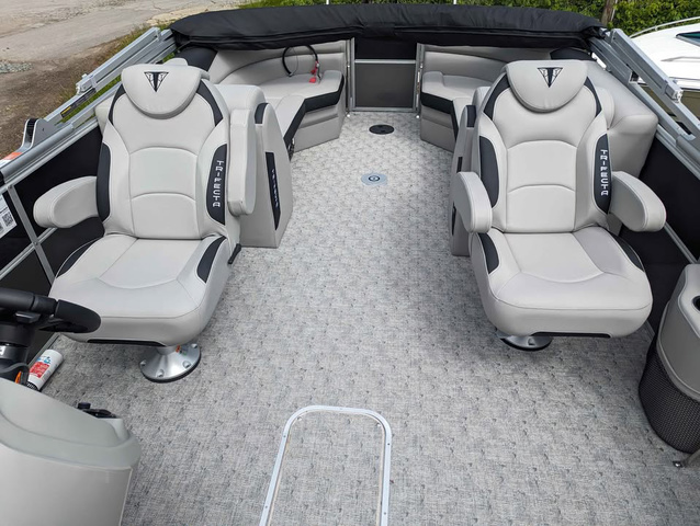 No wood construction all composite one piece flooring. Easily the fastest pontoons in the business. These boats are also exceptionally durable, having stress tested this same model range in Lake Erie with our rental fleet. Those boats have held up very well to the unforgiving waters of our massive lake. To summarize, the LE Series is an incredibly cost effective package. This boat looks fantastic, holds up to 13, and its 150 HP motor brings it to about 38-40 mph. We have multiple available for viewing on our property in Vermilion. This one here is brand new with a large ski locker in the floor and the nice power bimini. Deck Length: 288 in. (7300 mm) Deck Width: 102 in. (2.6 m) Weight: 2025 lb. (918.5 kg.) Capacity: 1785 lb. (809.7 kg.) Number of Tubes: 2