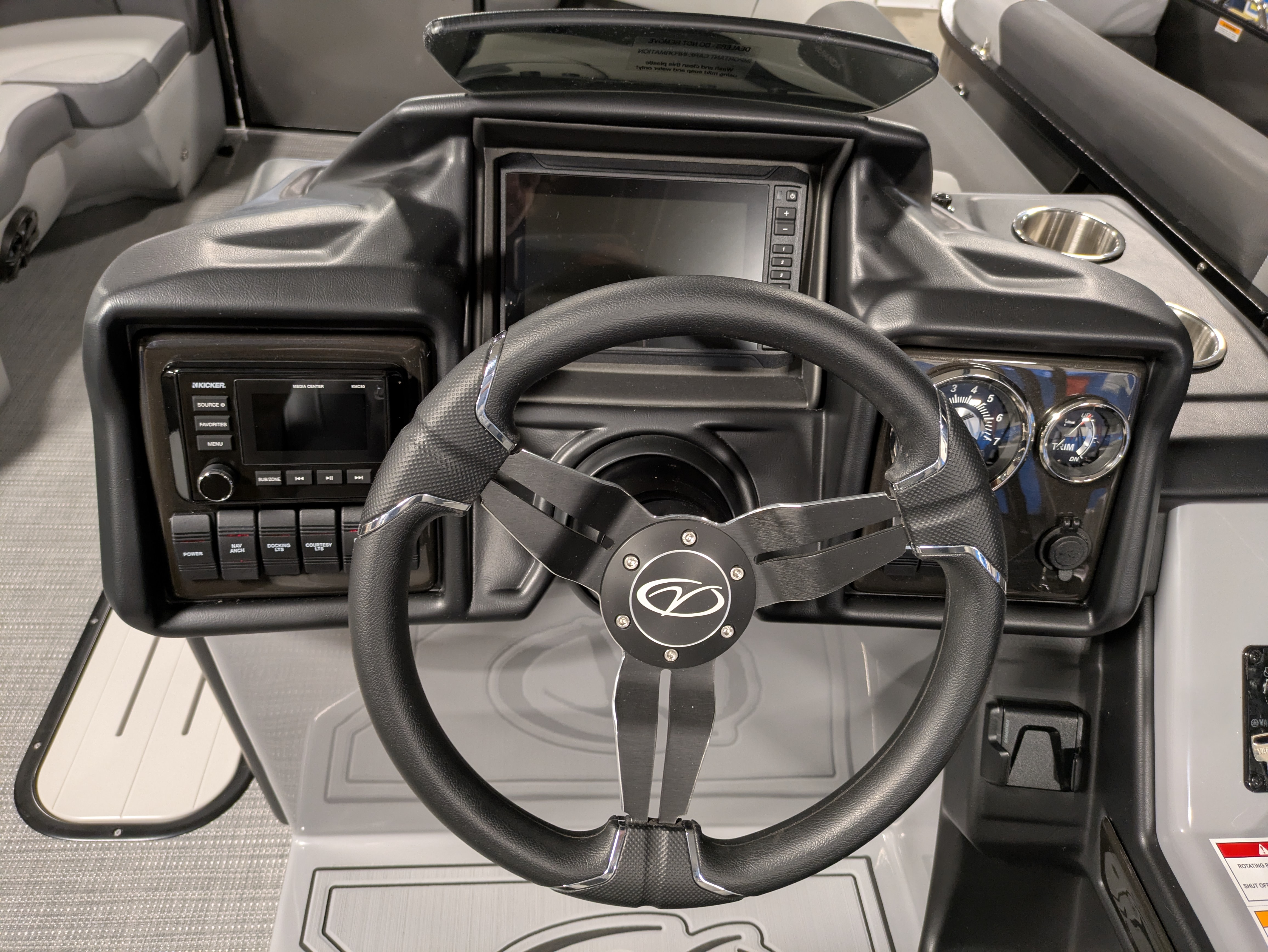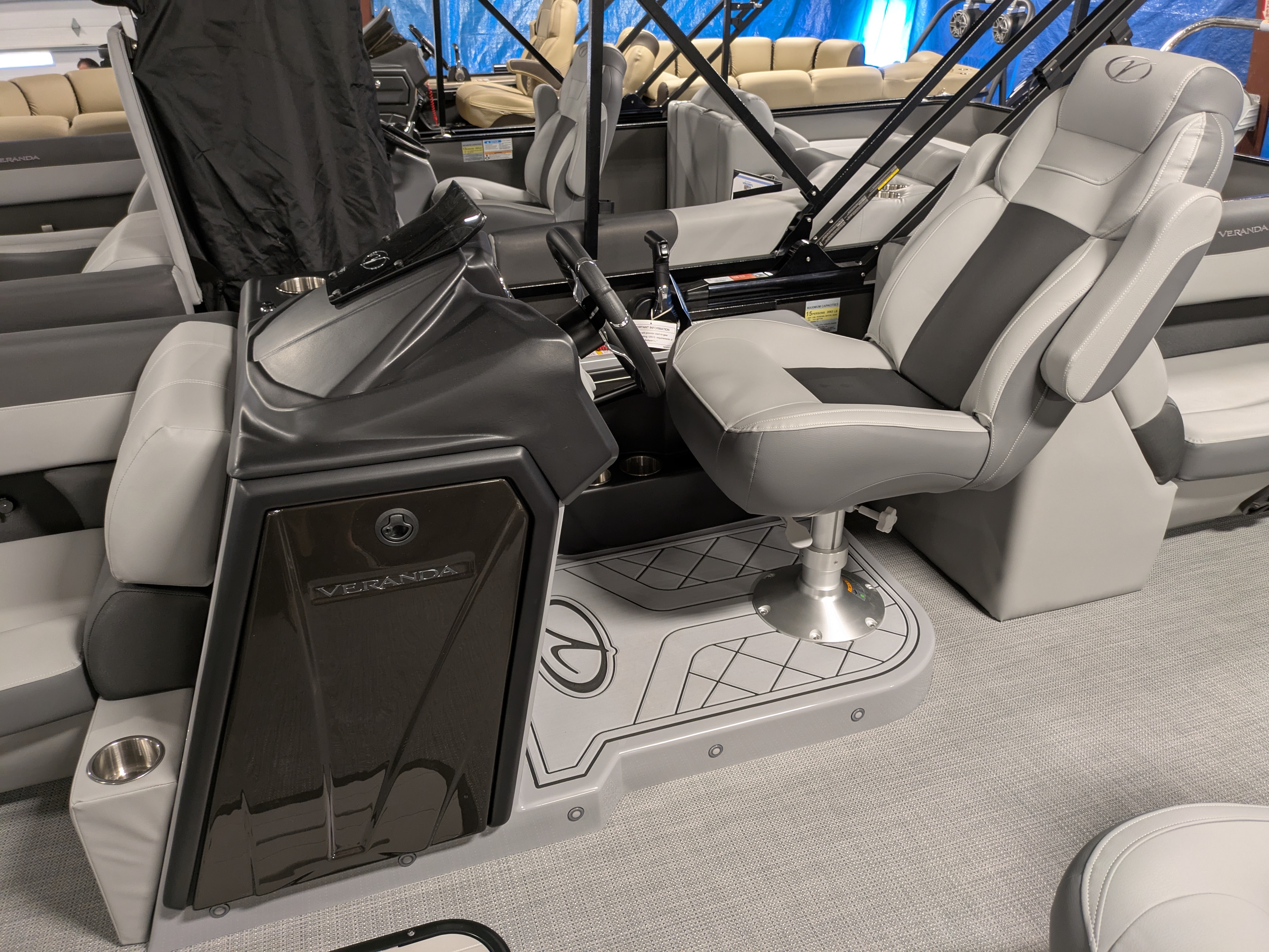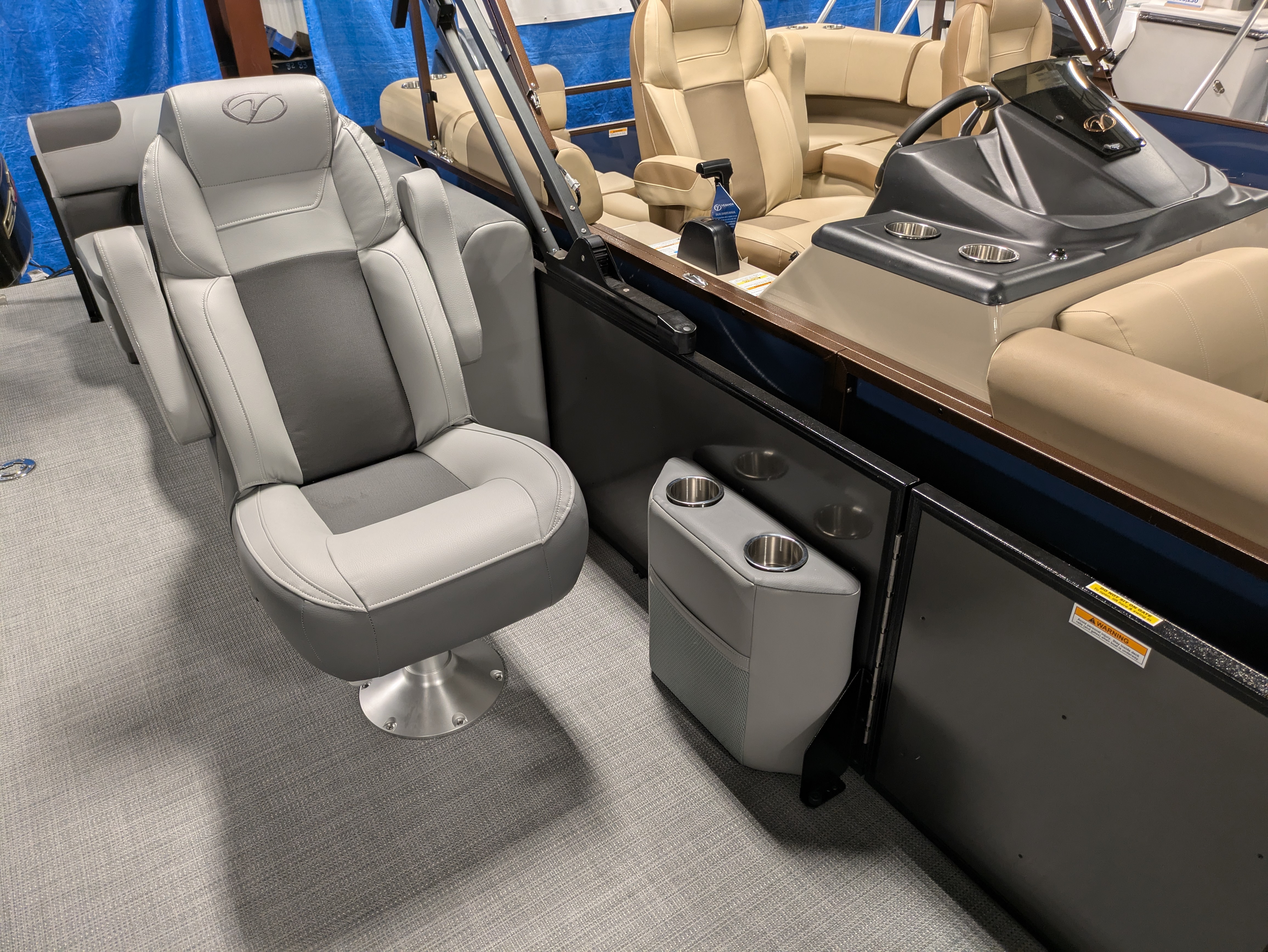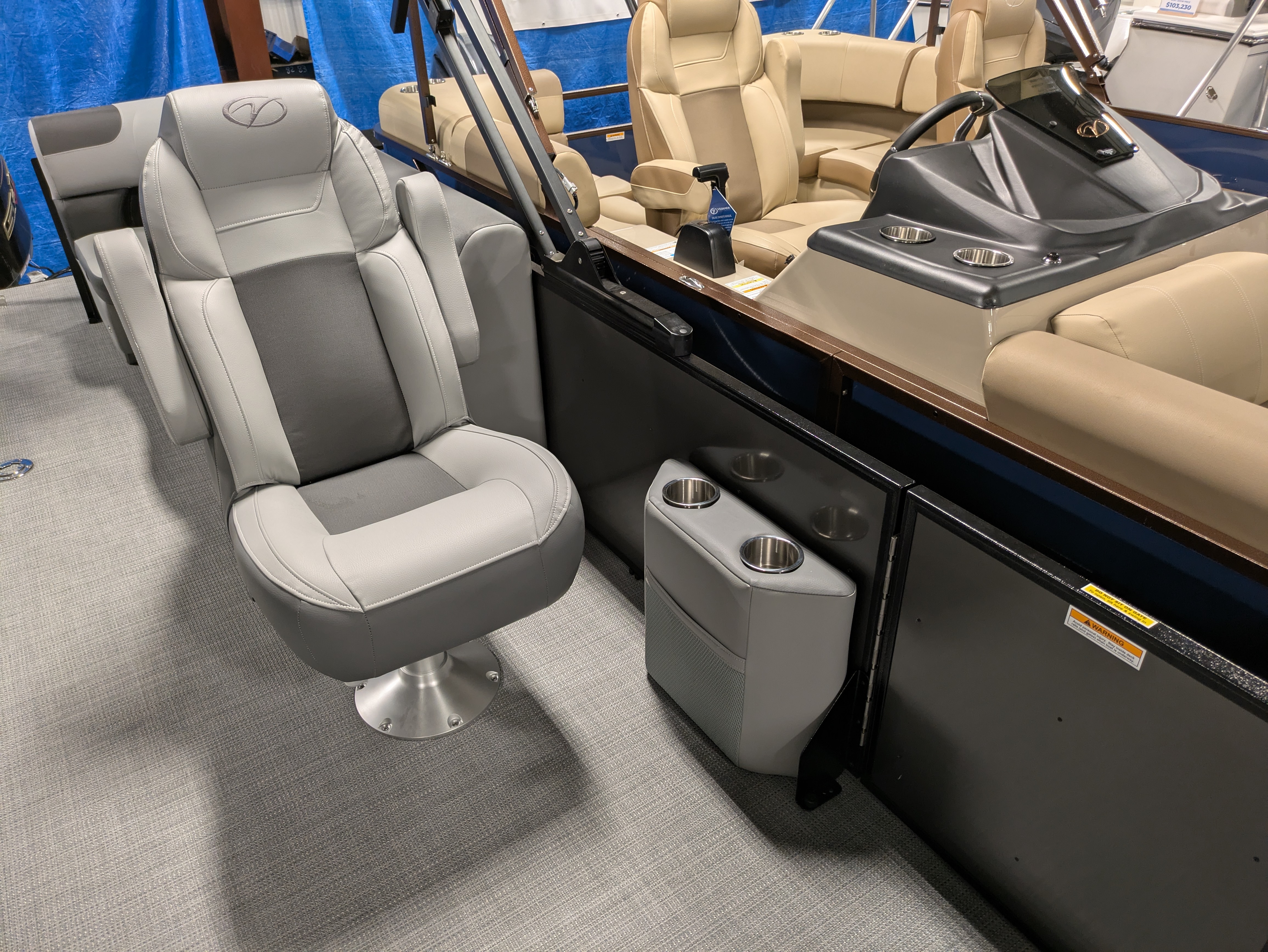 - NEW XL Package: NEW Helm Shifter Panel w/ Cup Holders & Fire Ext. Storage, Two-tone Fence Panels, Center Toon In-Floor Storage, Two "High Rise" Hydraulic, Power Bimini (22'&25' models), Chair Pedestals, NEW GARMIN Echomap Graph MFD Upgrade NMEA and Digital Dash Display.