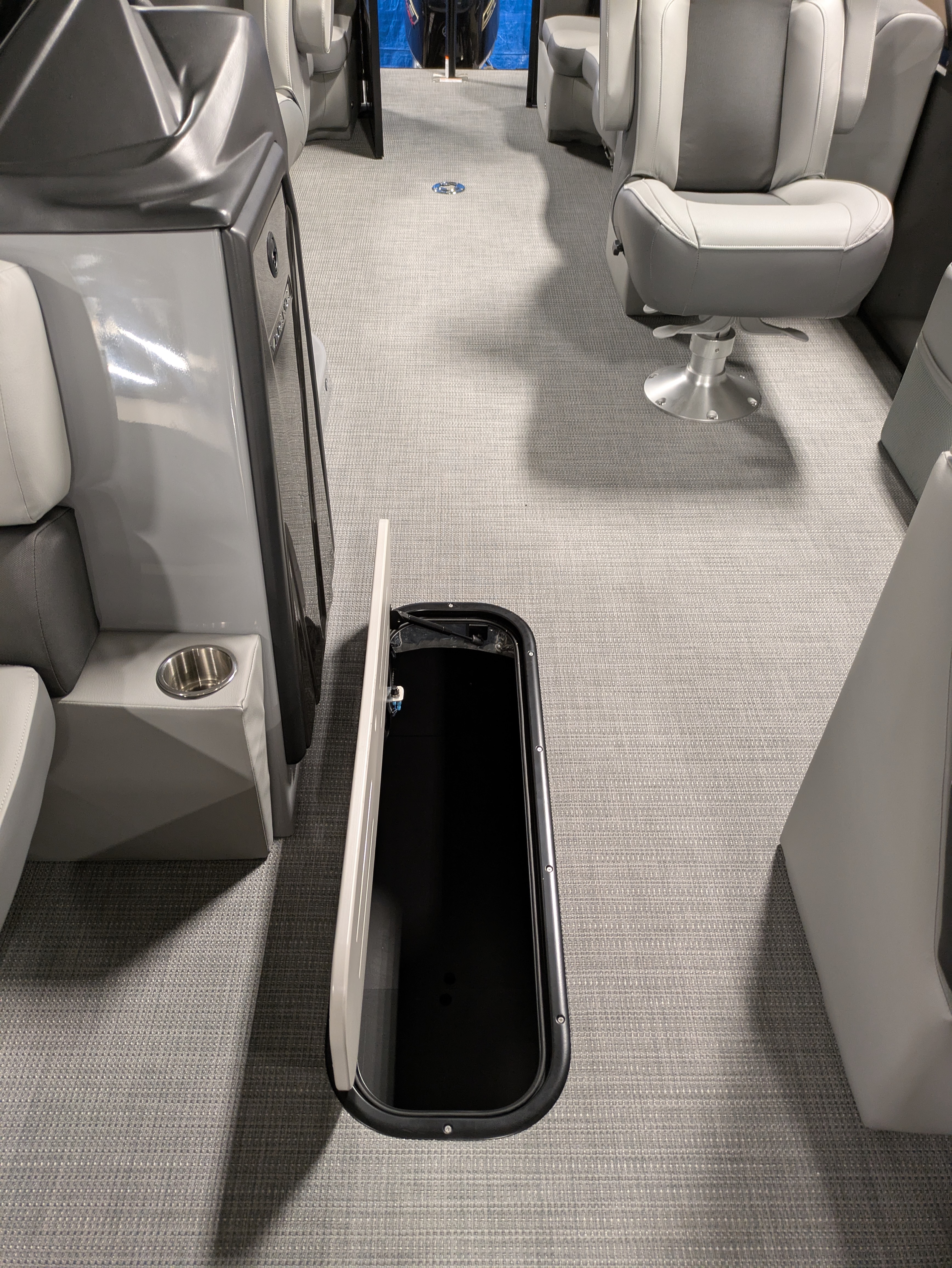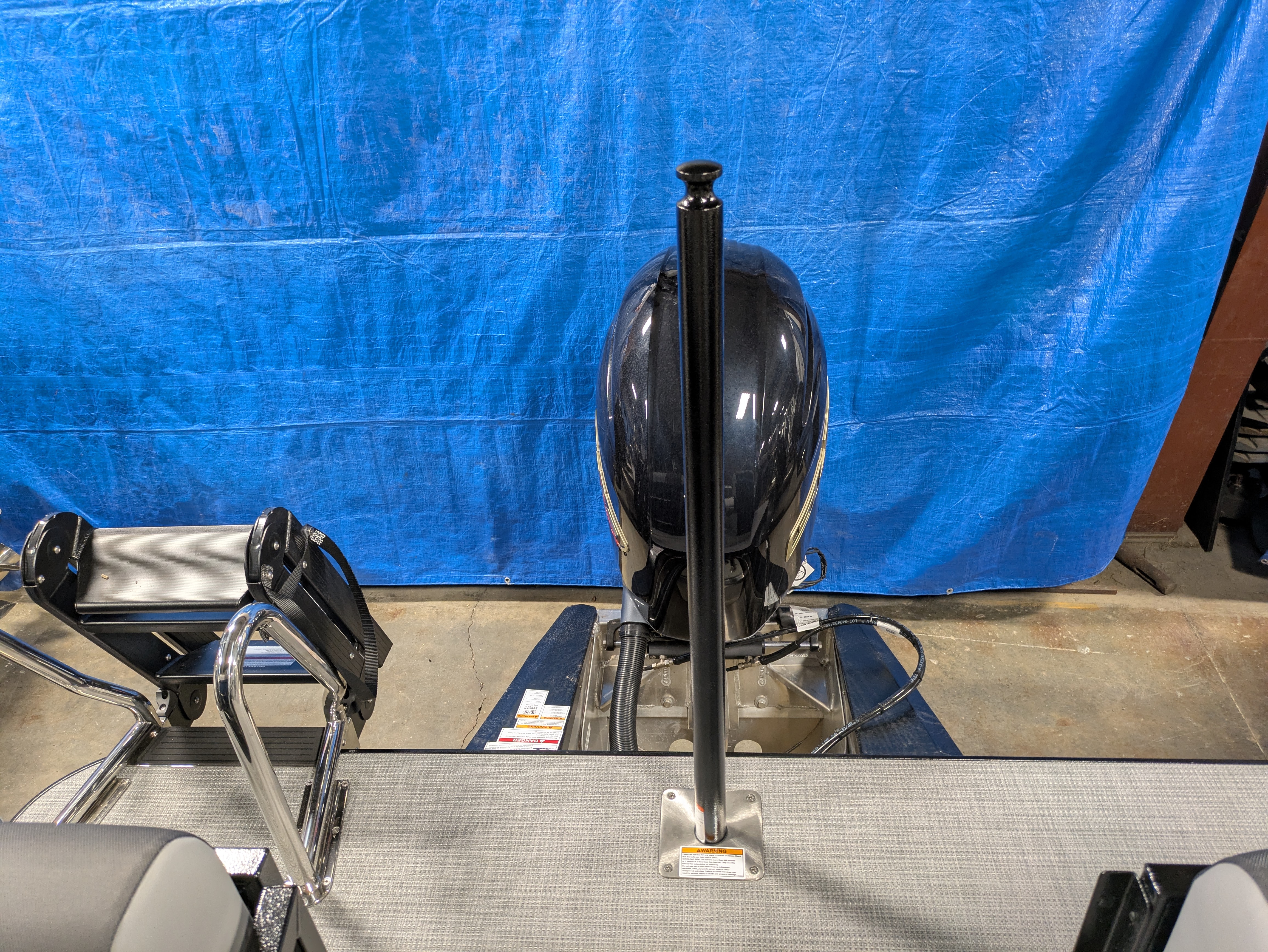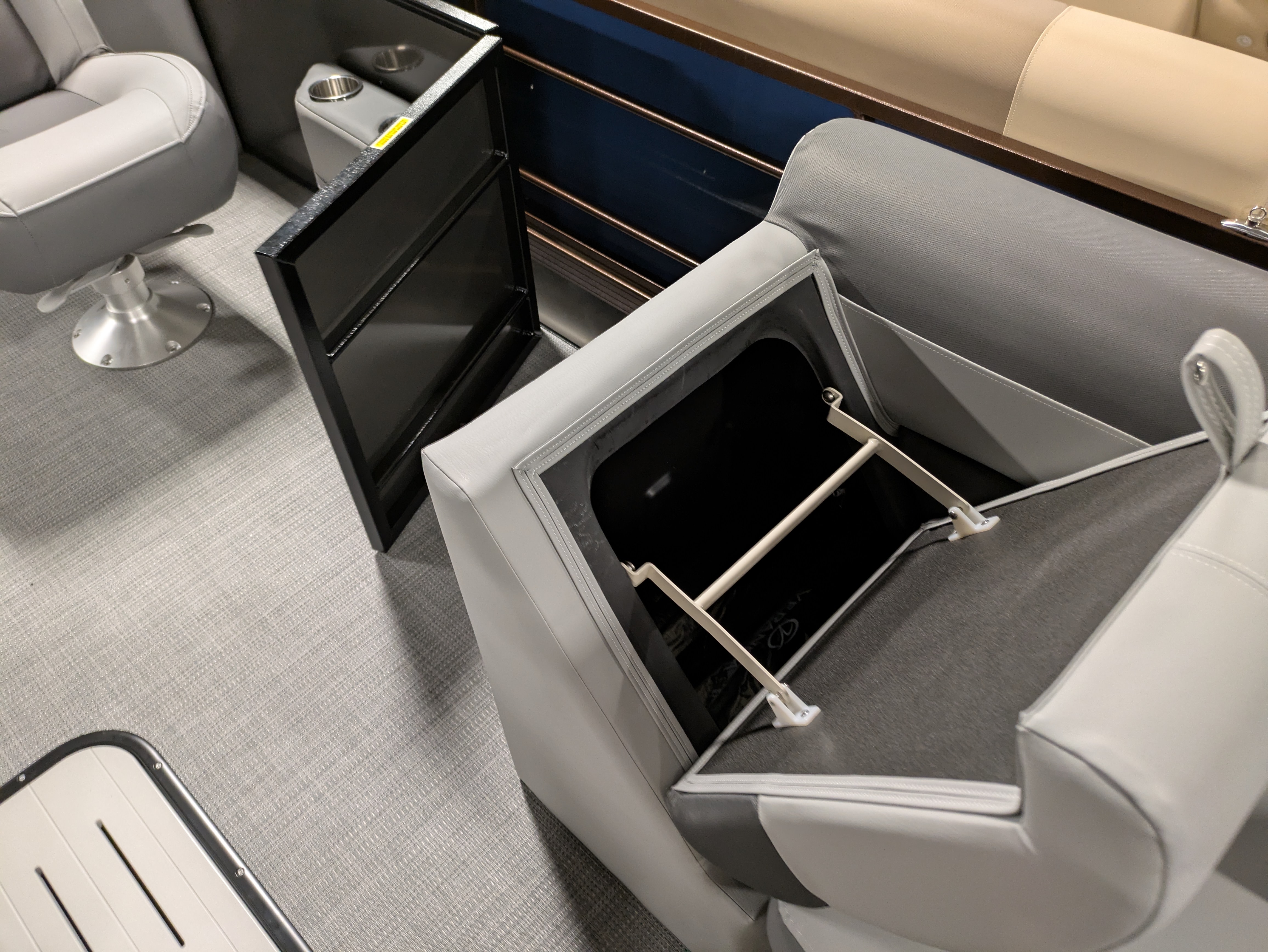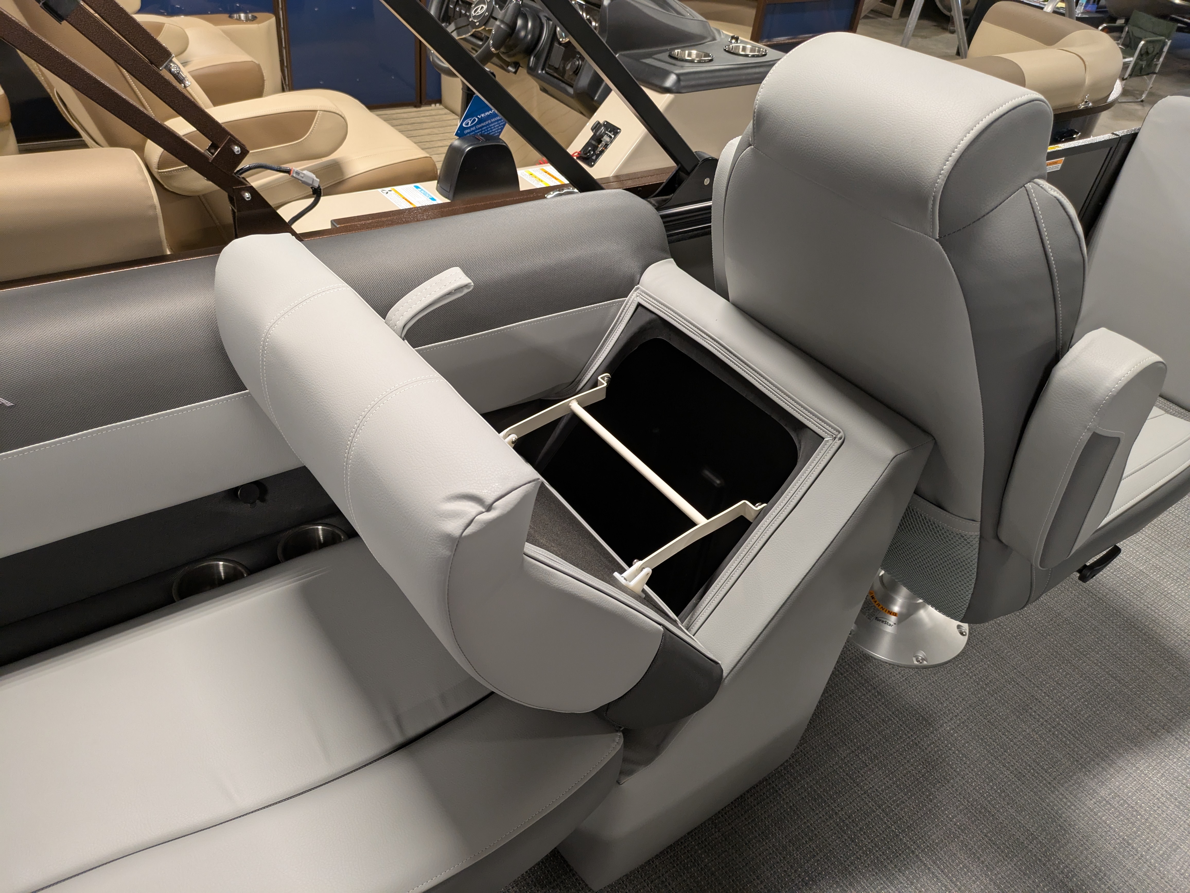 - NEW XL Package: NEW Helm Shifter Panel w/ Cup Holders & Fire Ext. Storage, Two-tone Fence Panels, Center Toon In-Floor Storage, Two "High Rise" Hydraulic, Power Bimini (22'&25' models), Chair Pedestals, NEW GARMIN Echomap Graph MFD Upgrade NMEA and Digital Dash Display.
