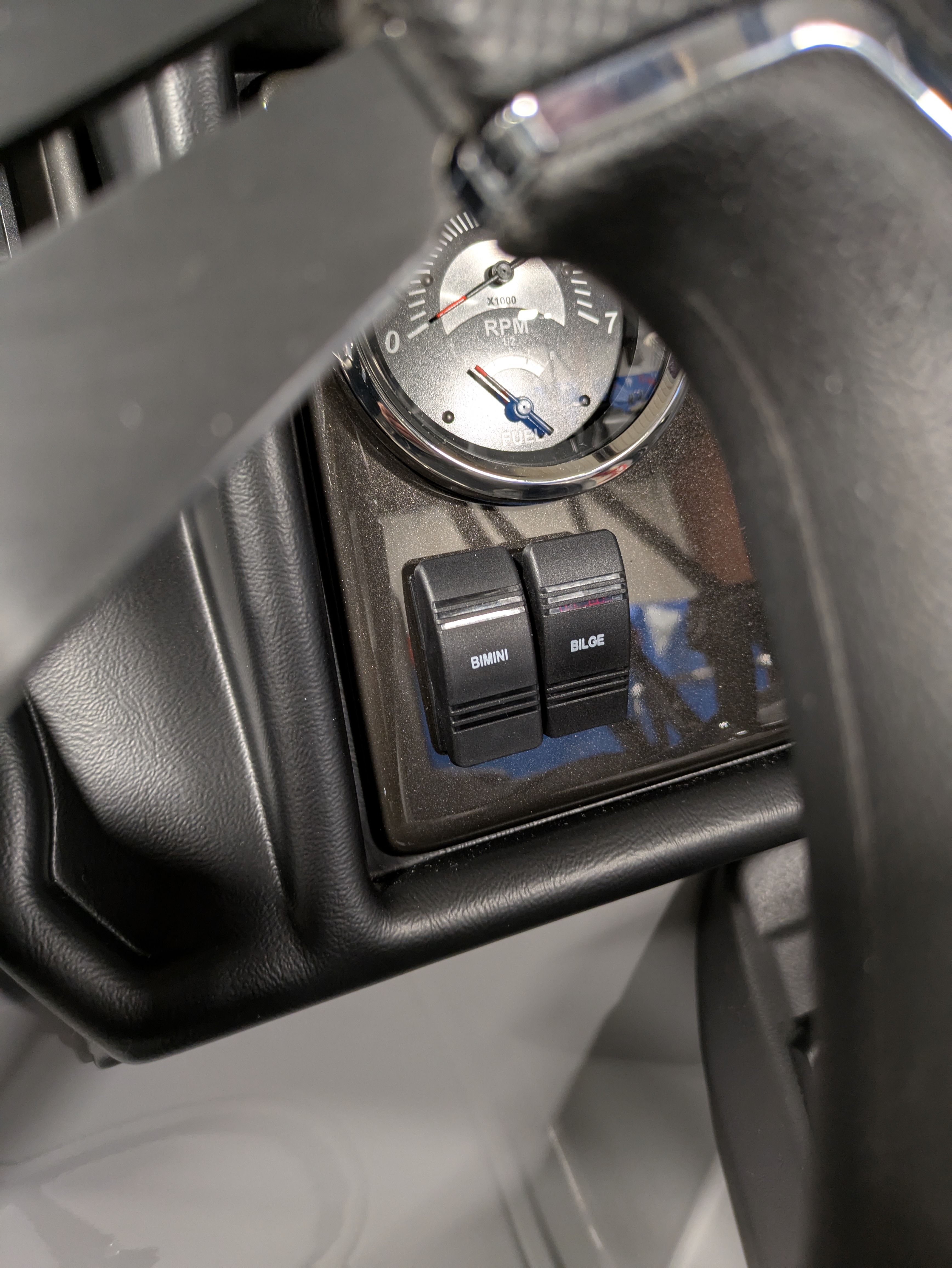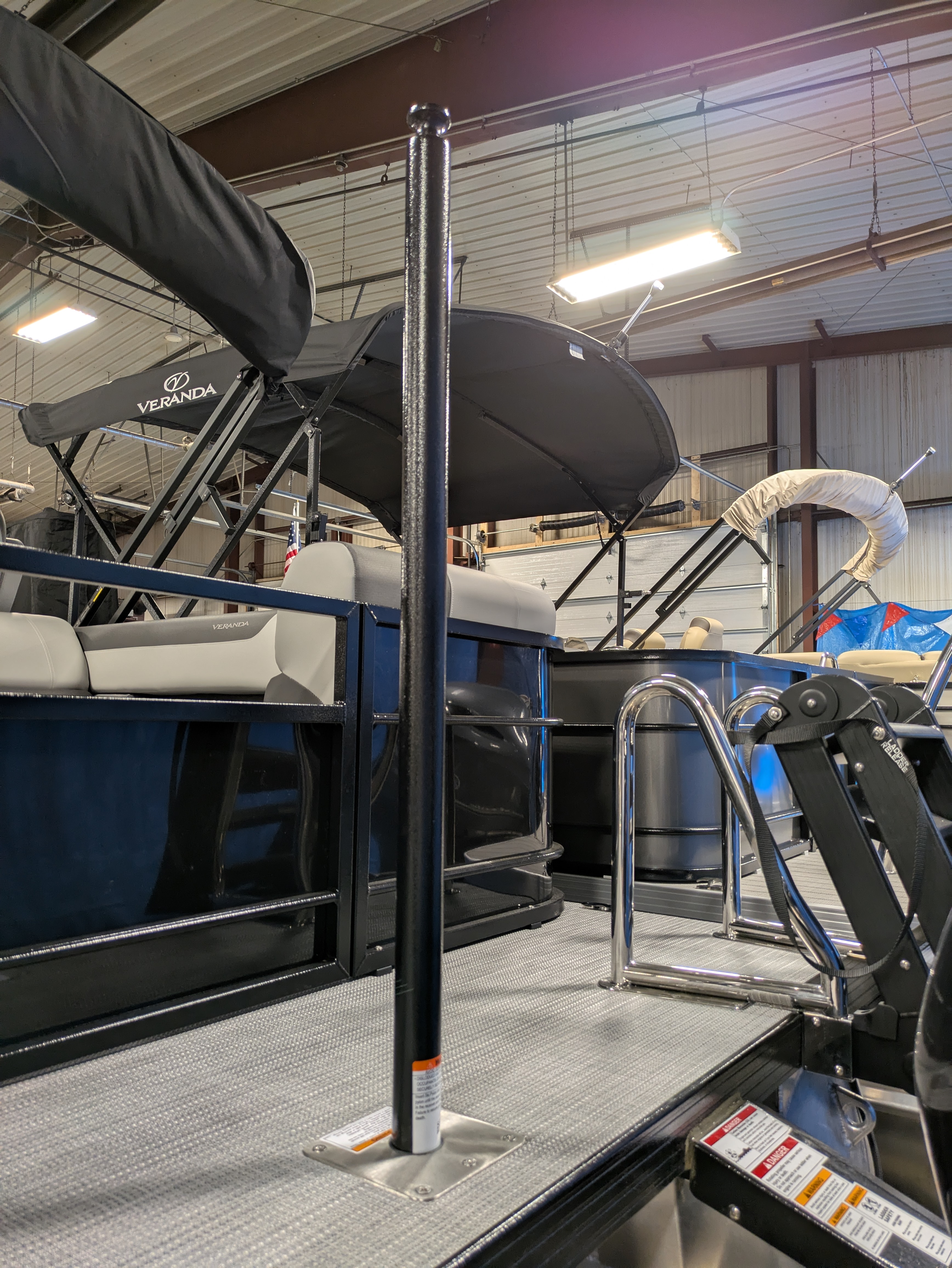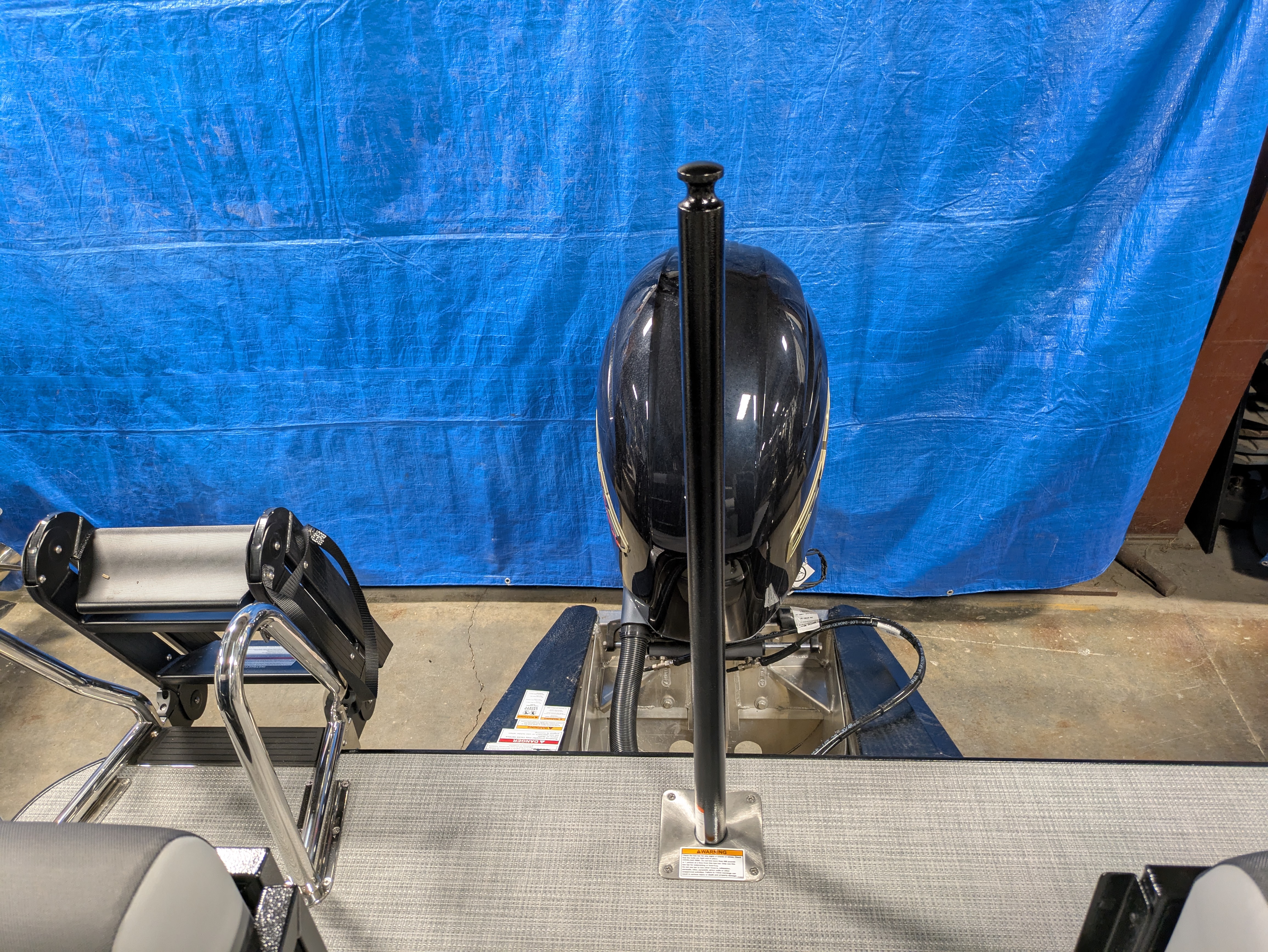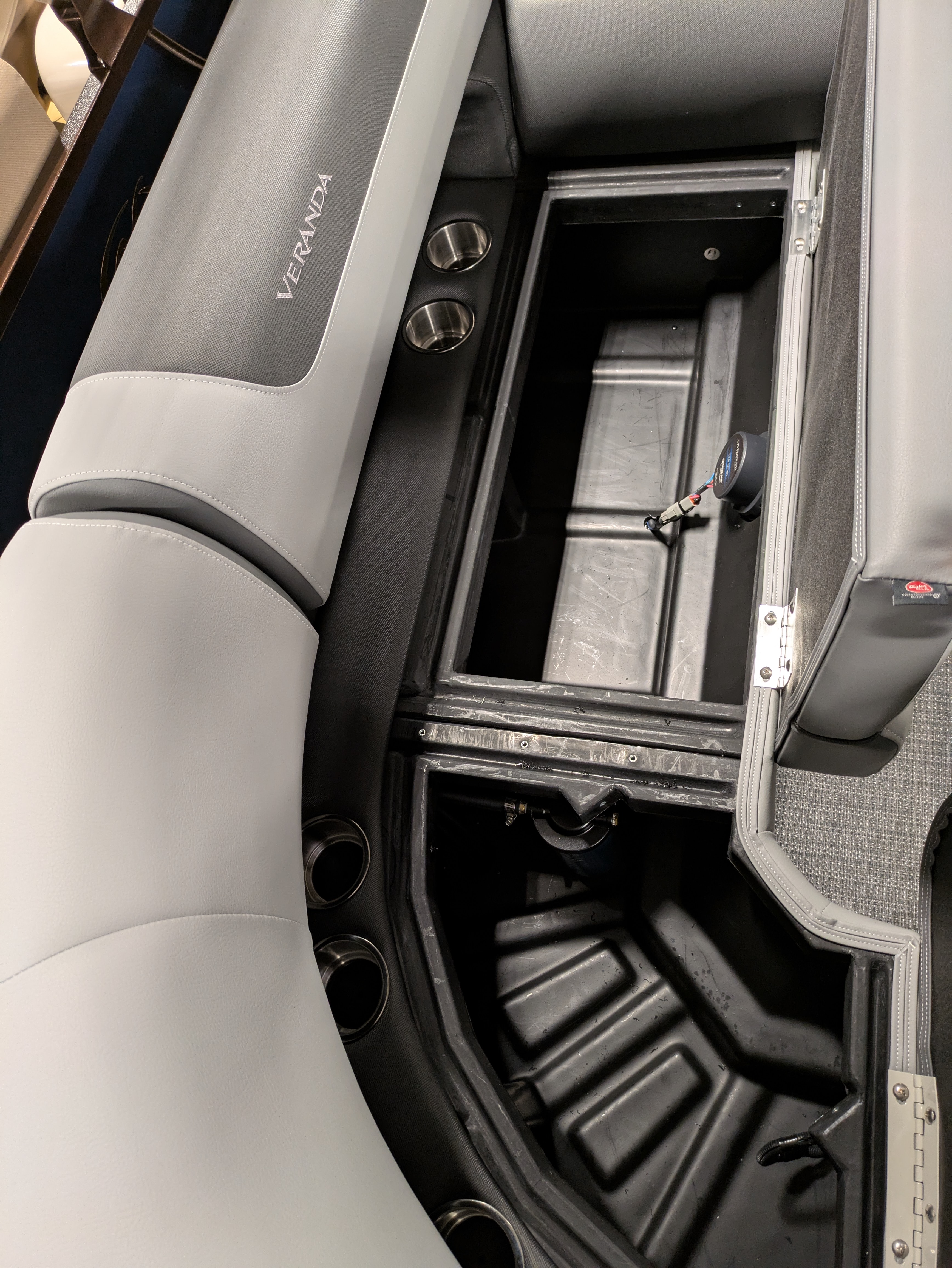 - NEW XL Package: NEW Helm Shifter Panel w/ Cup Holders & Fire Ext. Storage, Two-tone Fence Panels, Center Toon In-Floor Storage, Two "High Rise" Hydraulic, Power Bimini (22'&25' models), Chair Pedestals, NEW GARMIN Echomap Graph MFD Upgrade NMEA and Digital Dash Display.