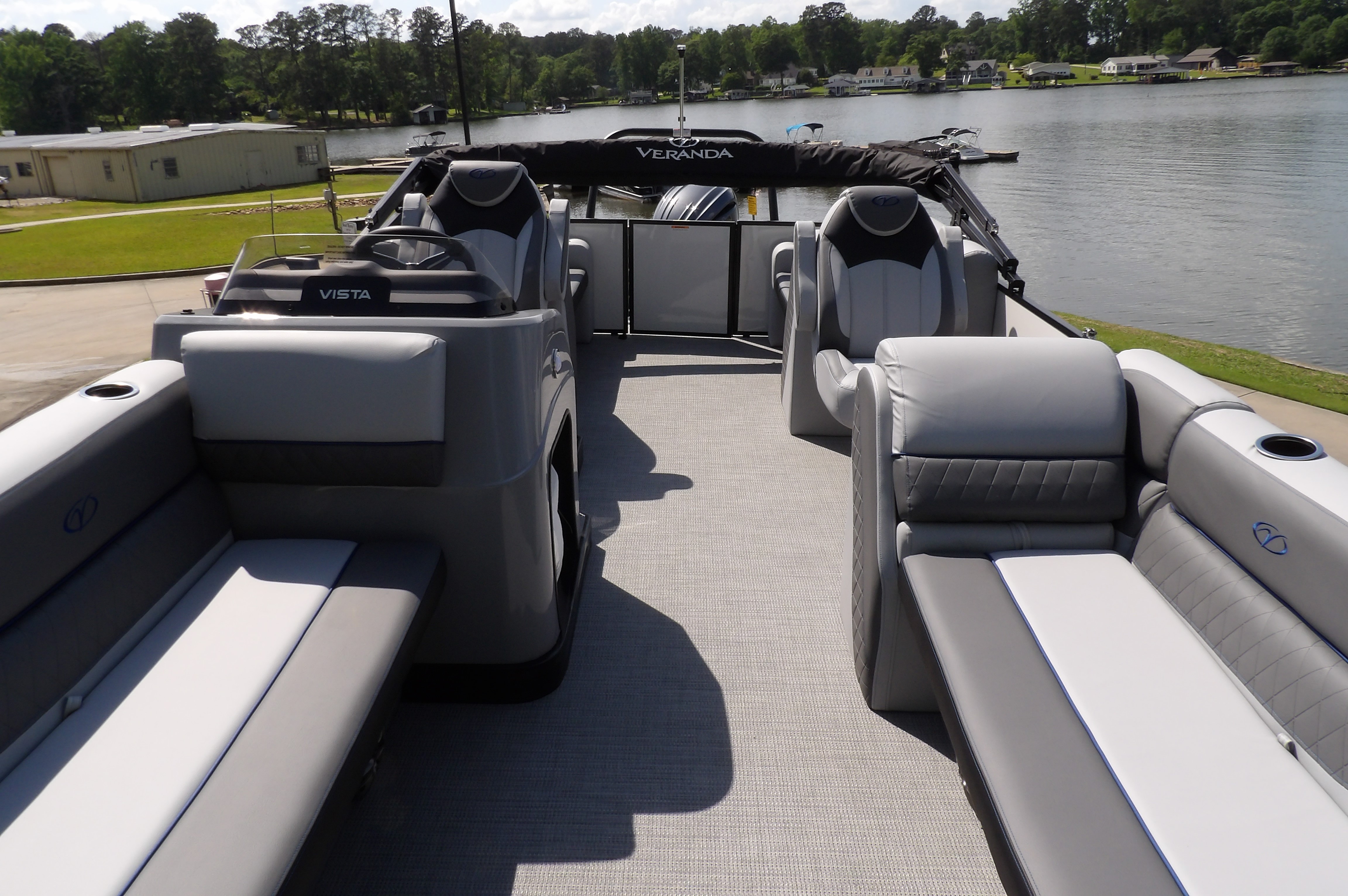 New 2025 Veranda Vista Sport VS22RC Tritoon powered by a Yamaha 150HP 4-Stroke outboard motor. The Vista Sport is a brand-new offering from Veranda for 2025, utilizing their patented all welded aluminum deck. This series is an incredible value, and in this case offering a 22-foot tritoon with at a nationally advertised set price of $55,995. This beautiful new Veranda can be delivered to your dock on the lake, or we have a selection of tritoon trailers available for purchase. For the latest in pricing and incentives give us a call at Sinclair Marina (478) 449-3300 or stop in and see us at 170 Sinclair Marina Drive Milledgeville, GA.