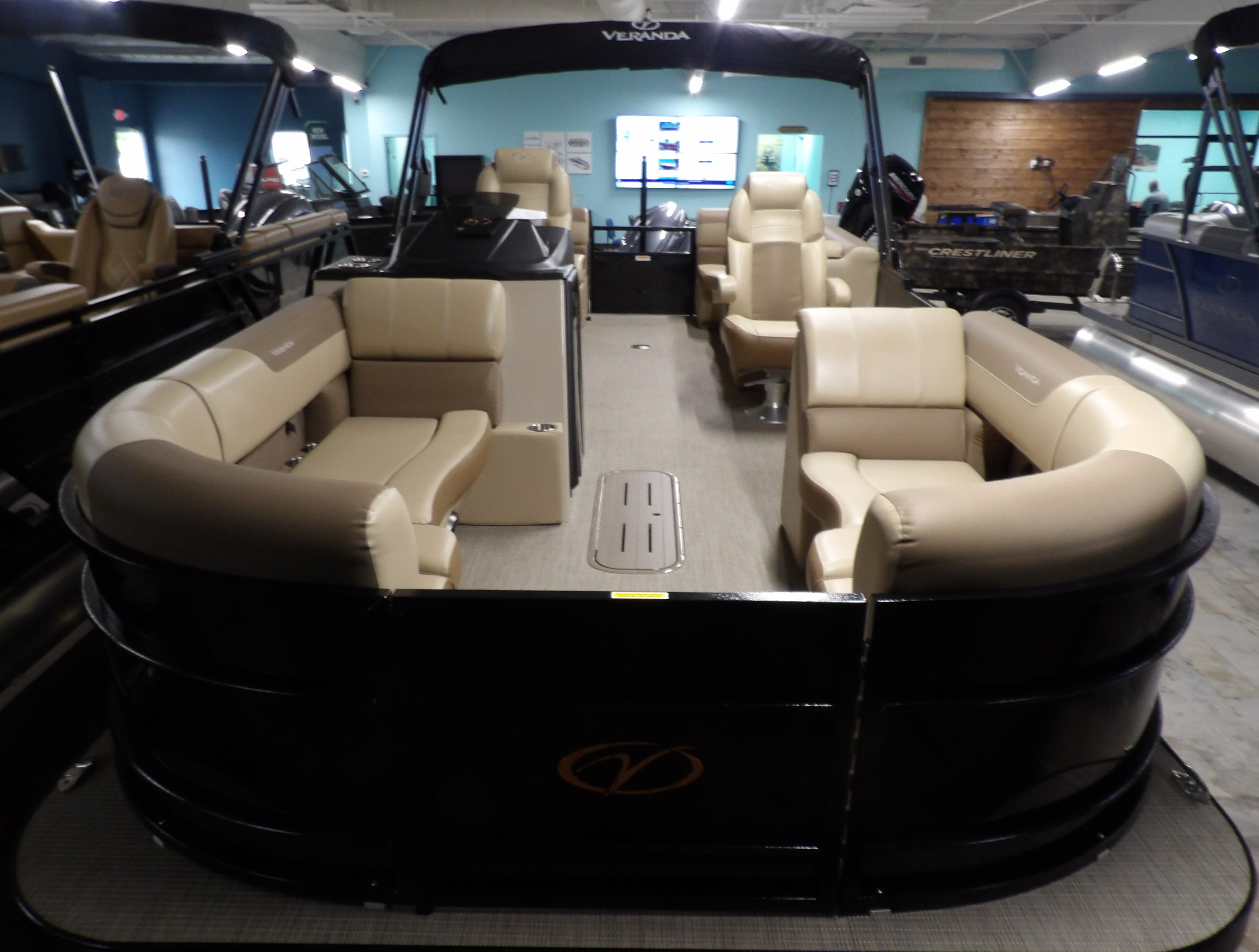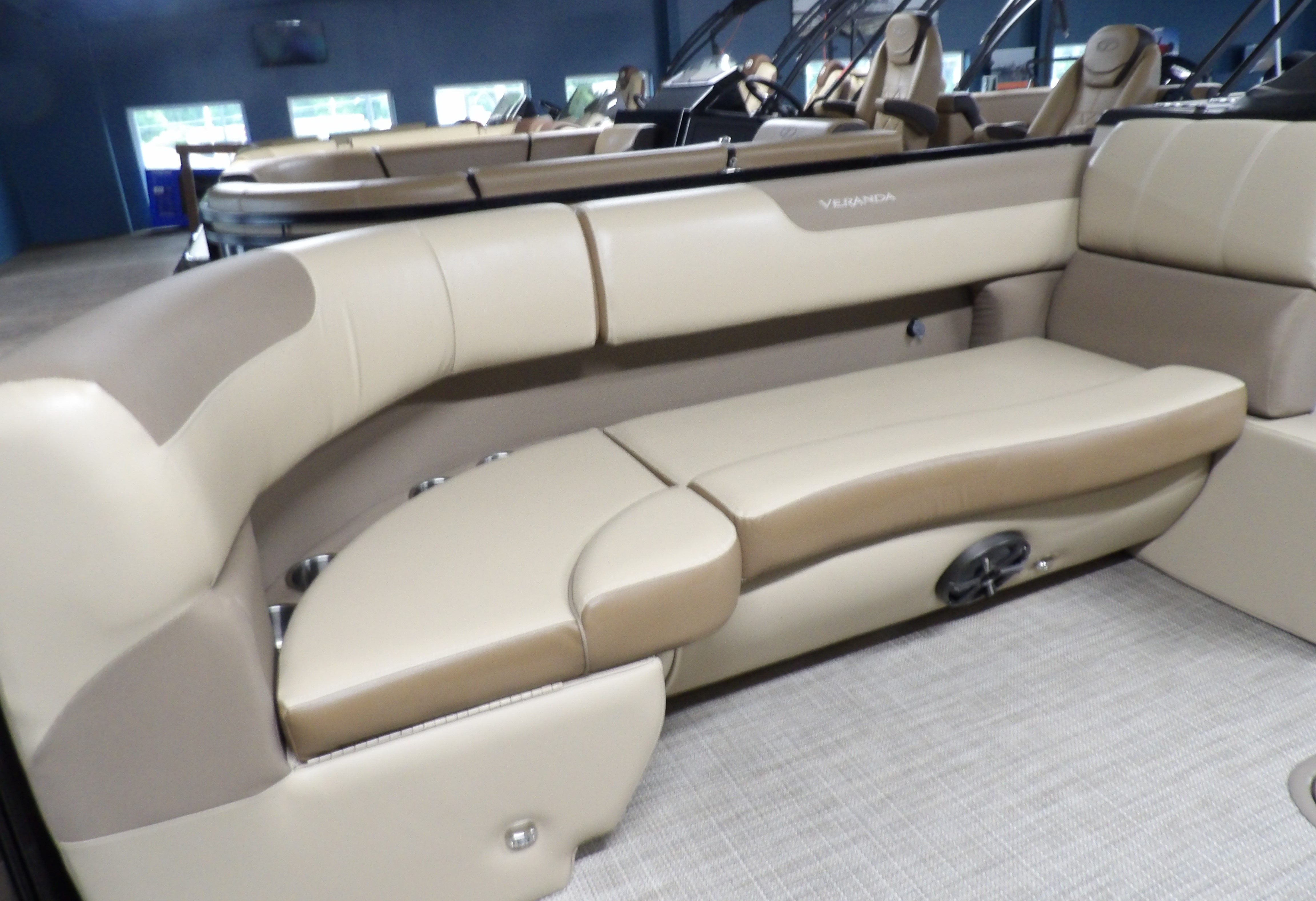 This 2025 Veranda VR22RC Relax series boat is updated & upgraded for the 2025 model year. This boat received new interior and exterior touches and a new helm just to name a few. This Veranda VR22RC comes with all the standard features of the Relax series plus these added options: power from a 200 HP Yamaha Four Stroke outboard, the XL package which includes a power bimini, in-floor storage, console shift panel with fire extinguisher & cell phone holders, adjustable pedestals and digital gauges. This also has side keels, the woven floor upgrade & easy step ladder option, a must have. This Veranda in classic black looks great against the water & mountain backdrop of Lake Keowee. This Tritoon can be delivered to your dock on the water or we have a selection of trailers available for purchase. For the latest in pricing and incentives give us a call at Eclipse Marine Seneca (864) 670-2270 or stop in and see us at 305 US Hwy 123 Seneca, SC. Deck Length: 289 in. (7300 mm)
