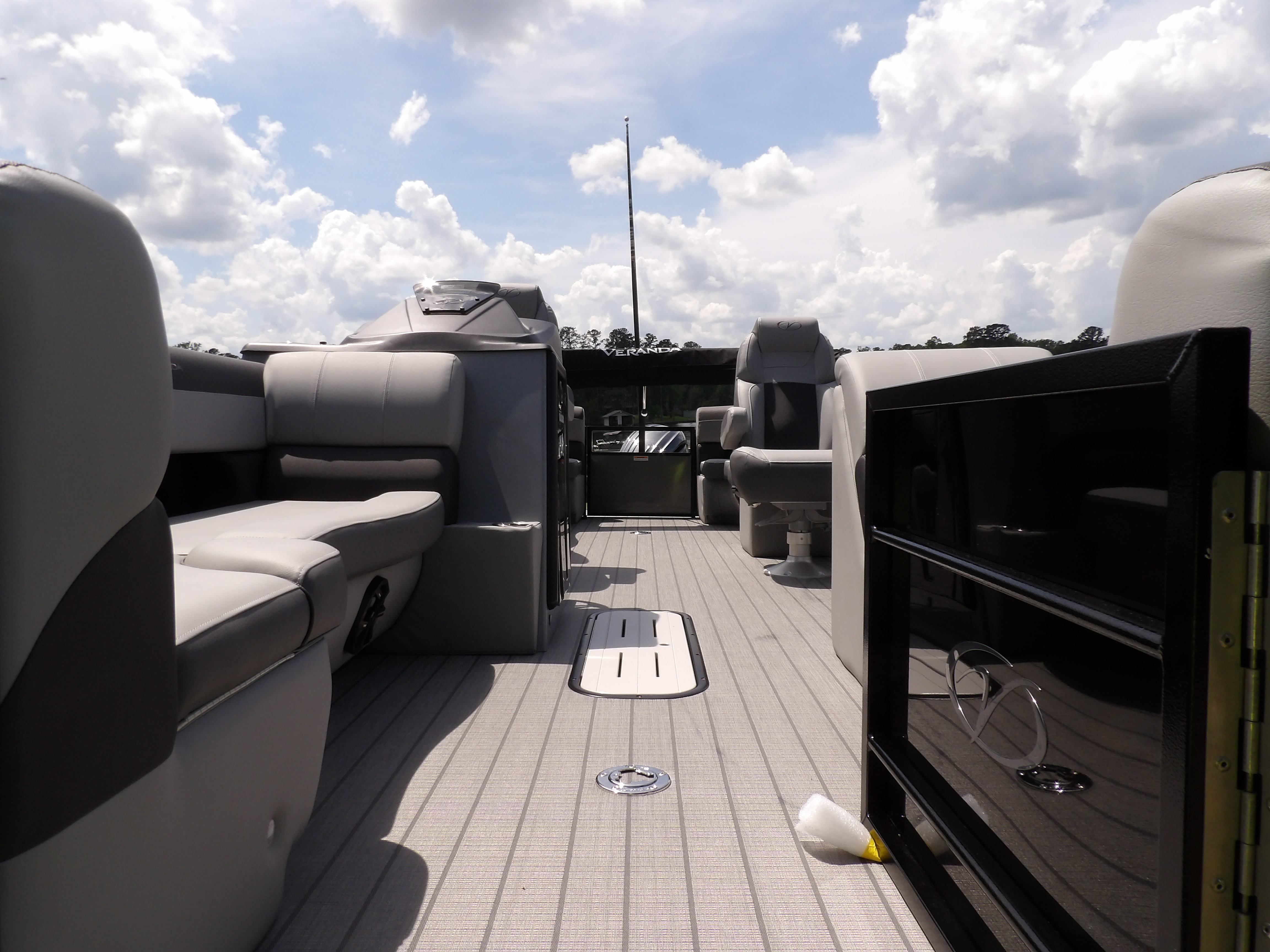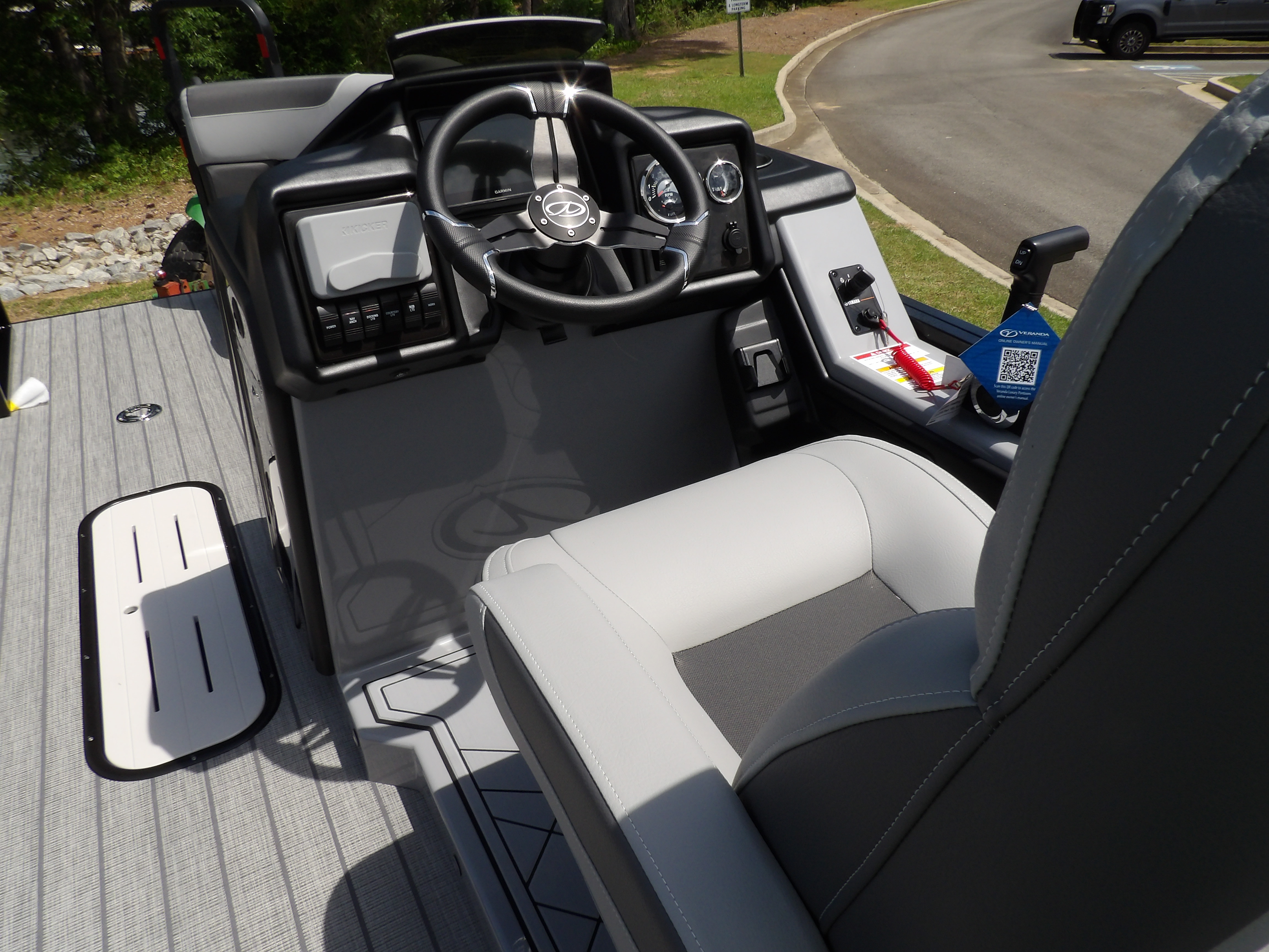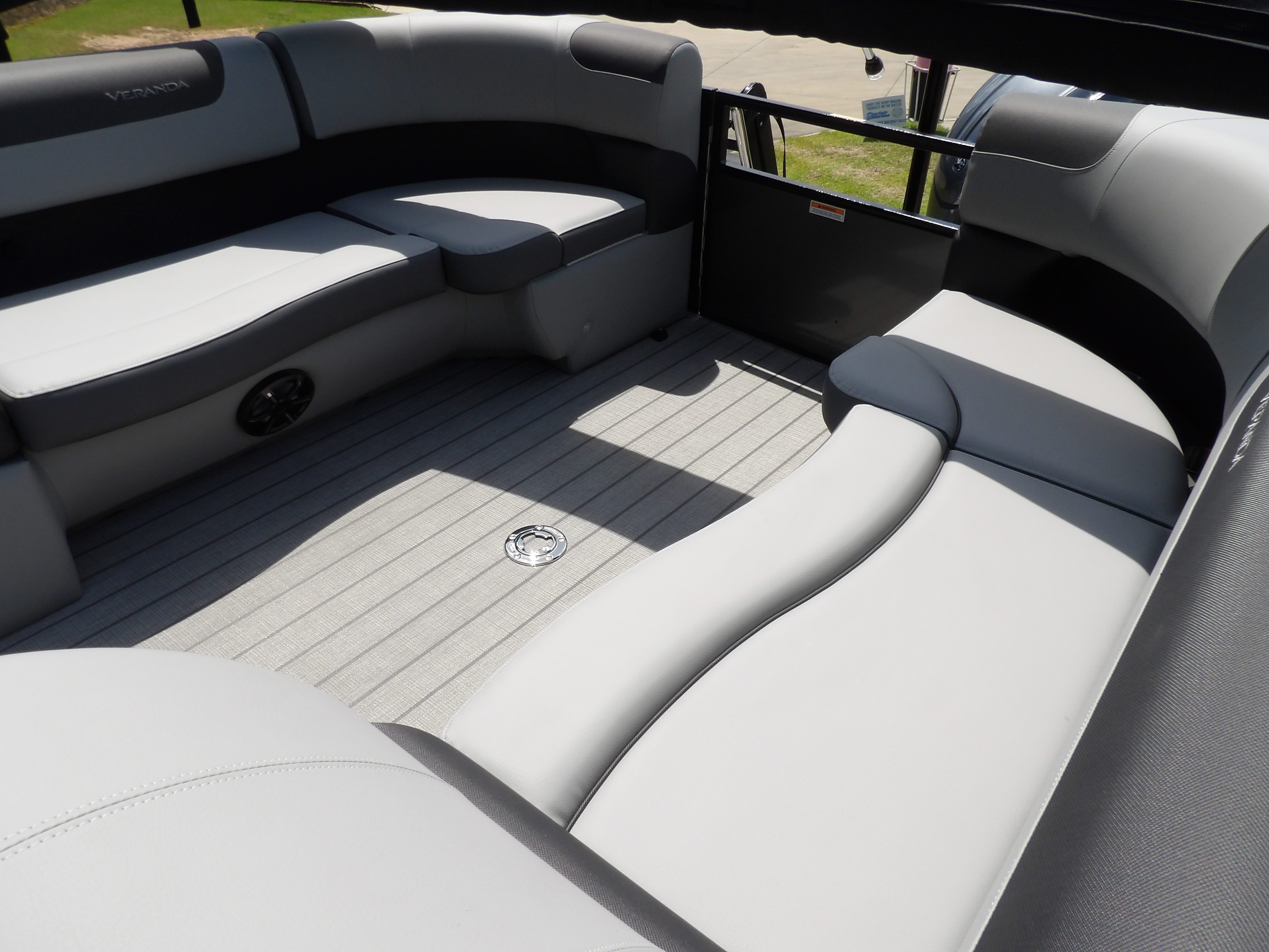 This new 2025 Veranda VR22RC Relax series boat is updated & upgraded for the 2025 model year. This boat get new interior and exterior touches and a new helm just to name a few. This Veranda VR22RC comes with all the standard features of the Relax series plus these added options: reliable power from a 200 HP Yamaha Four Stroke outboard, the XL package which includes larger 27" toons, a power bimini, two-tone paint option, in-floor storage, console shift panel with fire extinguisher & cell phone holders, adjustable pedestals and digital gauges. This also has the woven floor upgrade, side keels & easy step ladder. Look good this summer on your favorite lake in this beautiful two toned Veranda This Tritoon can be delivered to your dock on the water or we have a selection of trailers available for purchase. For more details, the latest in pricing and incentives give us a call at Sinclair Marine (478) 449-3300 or stop in and see us at 170 SInclair Marina Road Milledgeville, GA. Deck Length: 289 in. (7300 mm)