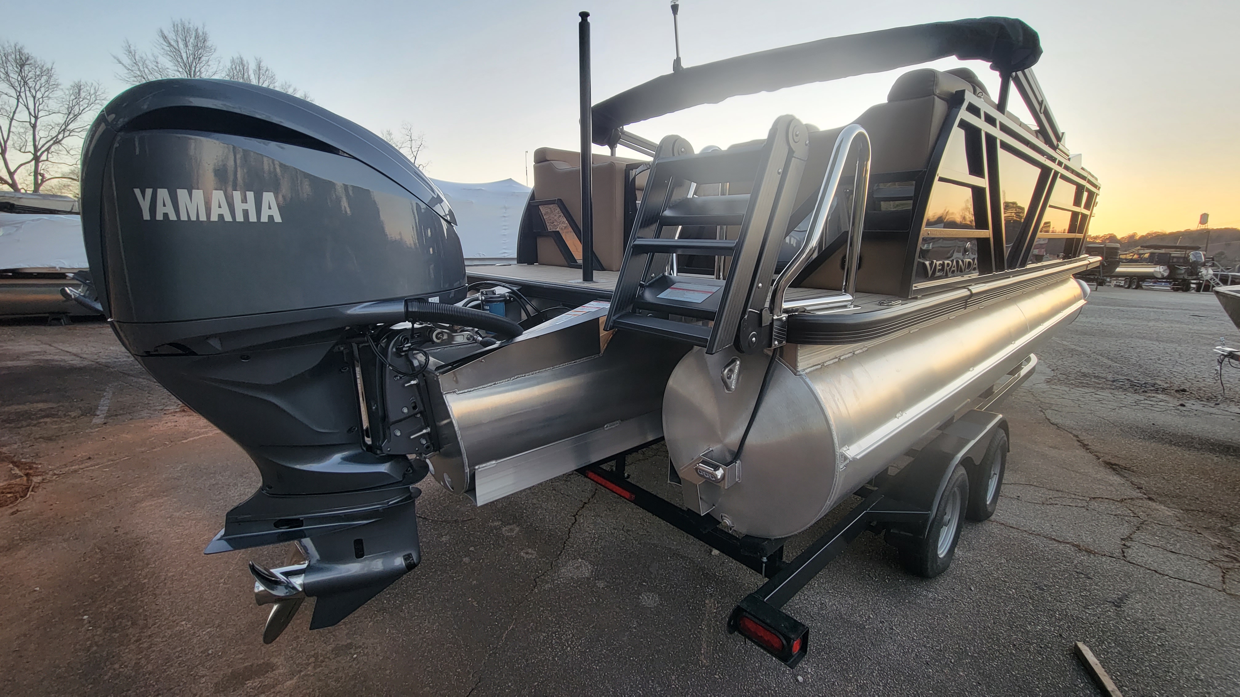 This Veranda Vertex VX22RC is an all new model for the 2025 model year. It comes loaded with equipment like a large touch screen Garmin display, Wetsounds audio system and LED lighting throughout that you'd expect in an upscale tritoon. This 22 footer boasts power from a stout 300 HP Yamaha Four Stroke outboard that will push you and your crew well past 50 miles per hour. Great for entertaining, cruising, & watersports, this do it all Veranda does it all and does it well.This Veranda Vertex can be delivered to your dock on the lake, or we have a selection of trailers available for purchase. For more details, the latest pricing and incentives give us a call at Eclipse Marine Seneca (864) 670-2250 or stop in and see us at 305 US Hwy 123 Seneca, SC. Deck Length: 289 in. (7300 mm)