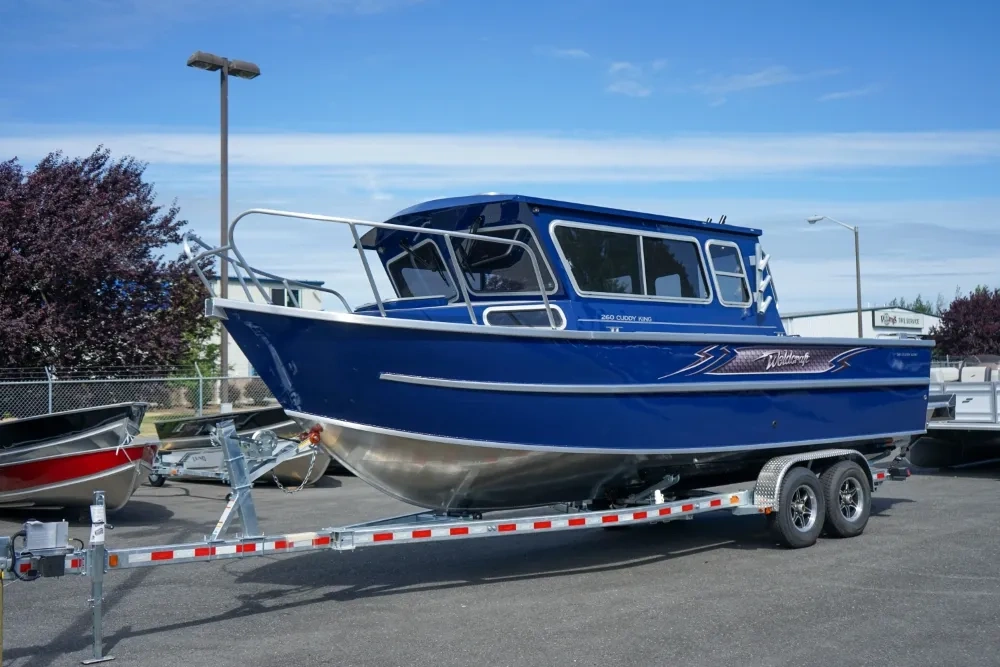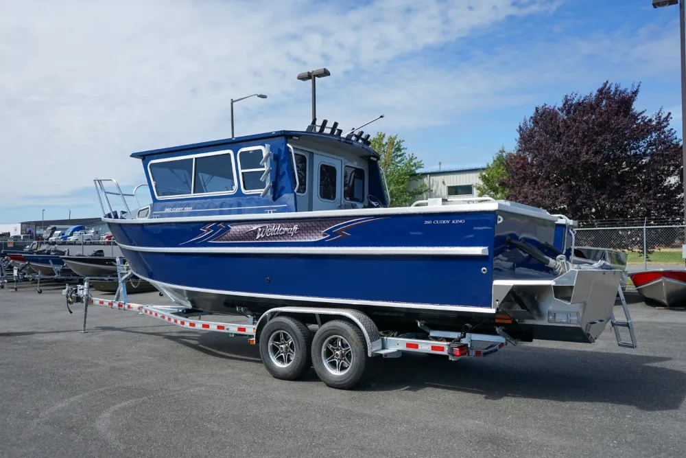 The Weldcraft 260 Cuddy King transforms the concept of secure and enjoyable maritime fishing expeditions with its expertly engineered design. Its comprehensive hardtop, featuring forward-raked windows, provides unwavering protection from harsh weather, while the pronounced upswept bow and insulated below-deck fish box underscore its dedication to superior, seaworthy performance. The cabin offers extensive storage solutions and leads to a spacious cuddy fitted with plush cushions and ambient lighting, creating a haven of comfort following an exhilarating day on the water.• Twin Yamaha 200XSA Dec Electric Steer W/Dual Stations• Helm Master Ex Electronic Steering W/Tilt Helm• Kicker Pre-Rig At Rear Helm• Painted Cabin, Full Side & Transom• Reel-Tread Decking• 160 Gallon Fuel Tank Upgrade• Single Rub Rail• Stern Rails With Downrigger Brackets• Kicker Bracket With Quick Fuel Disconnect• Boarding Ladder• Transom Fish Box With Tackle Fence & Tackle Tray• Full Dinette With Reversible Backrest• In Floor Rod Storage• Wallas Viking Diesel Heater• Locking Glove Box• Electric Trim Tabs• Dual Group 27 Batteries• Ez Loader Trailer With Elec/Hydraulic Disc BrakesMaster Marine Boat Center | To learn more about this listing, give us a CALL or TEXT at (360) 336-2176, email us at sales@mastermarine.com, or visit our website at mastermarine.com.