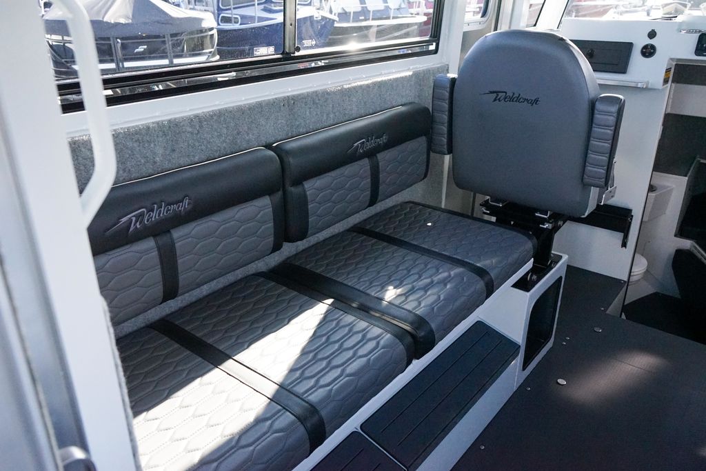 The 34' Odyssey is built for unmatched performance, durability, and comfort, making it the ultimate choice for offshore adventures. Featuring a full reverse chine bottom design, Helm Master electronic steering, and a twin-engine offshore bracket, this boat delivers superior handling and power. A spacious walk-around cabin includes suspension seating, a cuddy cabin with a V-berth, and a full head with a sink. Packed with premium features like Garmin electronics, ZipWake trim control, shore power, and multiple washdowns, it’s ready for any journey.