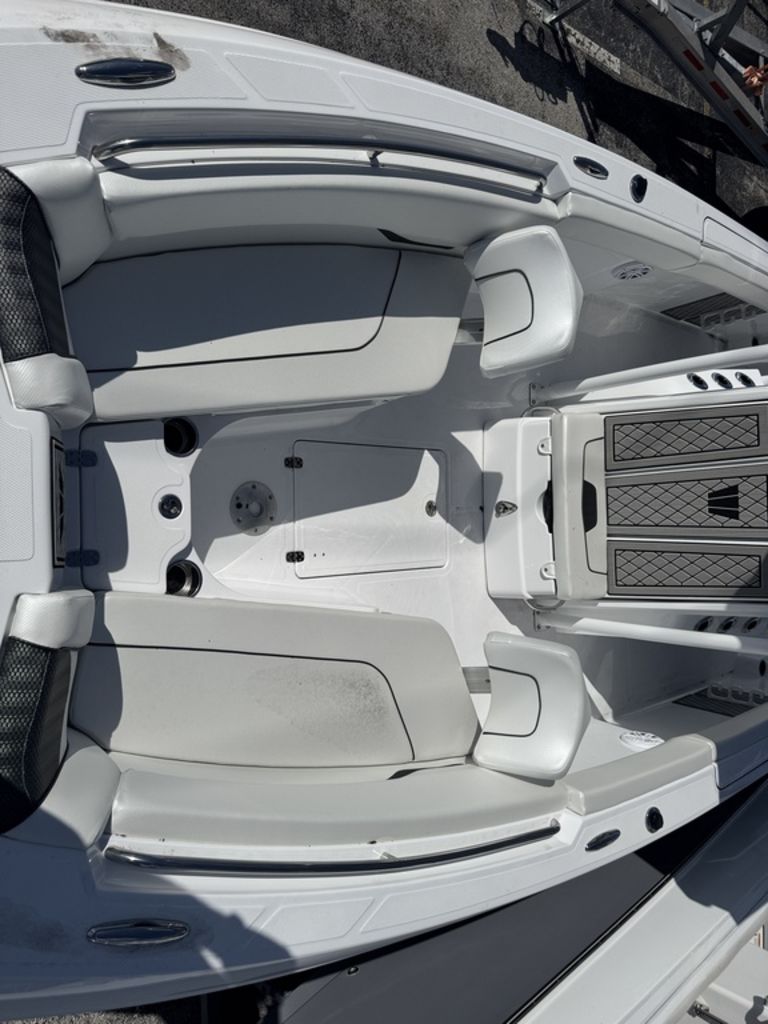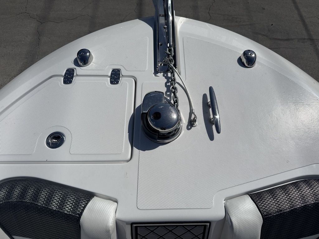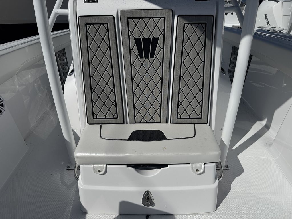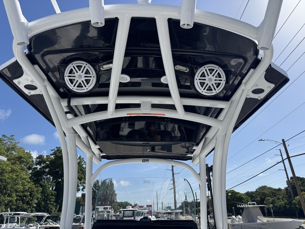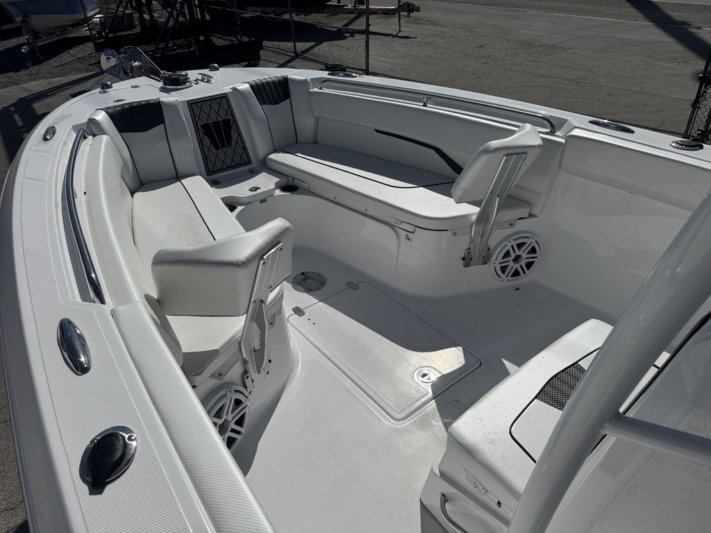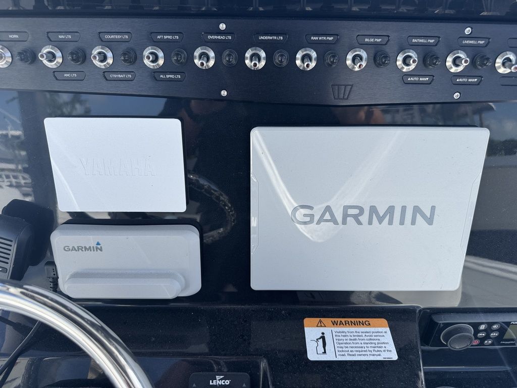 - Factory Options: Jet Black Hull Color, Fiberglass T-Top Deluxe, Hydraulic Tilt Steering, Bow Table, Helm Floor & Rod Storage Mats, Forward Facing Bow Backrests, VHF Radio, Power Assisted Steering, Bow Filler Cushion, Twin Battery Charger, Premium Sound System Package, Underwater LED Lighting, Garmin GPS Plotter with Depth Sounder, Porta-Potti with Pumpout, Bow Seating Package.
