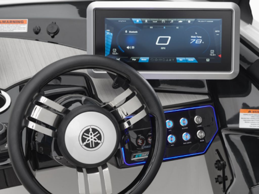 - Wireless charging, 6 marine speakers, and stern stereo remote