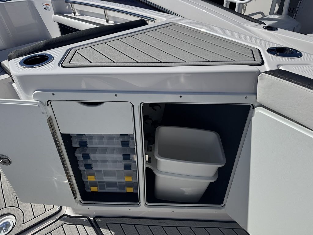 - Fishing-Friendly Design: Center console with livewell, rod holders, T-top, and ample storage for offshore angling.