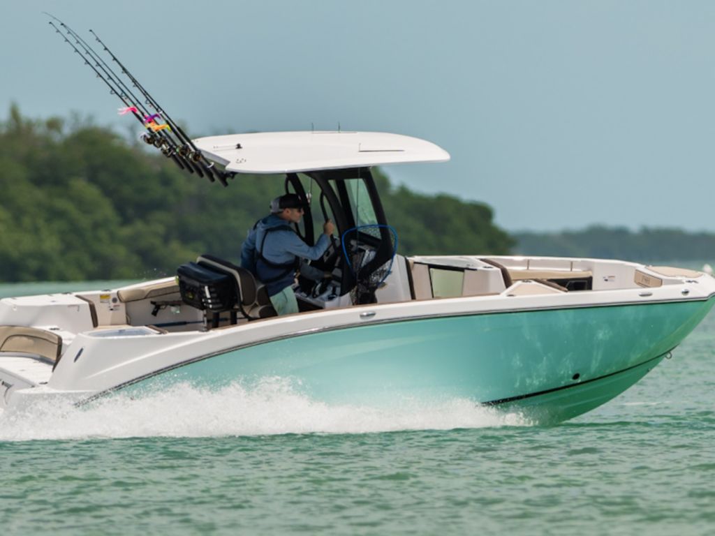 - Fishing-Friendly Design: Hardtop T-Top with rod holders, livewell, insulated fish boxes, and 12.3” Connext touchscreen display for ultimate functionality.