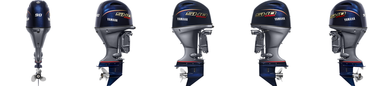 The All-New VF90 In-Line Four V MAX SHO. A single-overhead-camshaft design with four valves per cylinder and 1.8-liter displacement makes the In-Line Four V MAX SHO 90 a class leader in torque, top speed and efficiency. Still, it's one of the quietest 90-horsepower outboards on the water. That makes for some pretty stealthy fishing.
