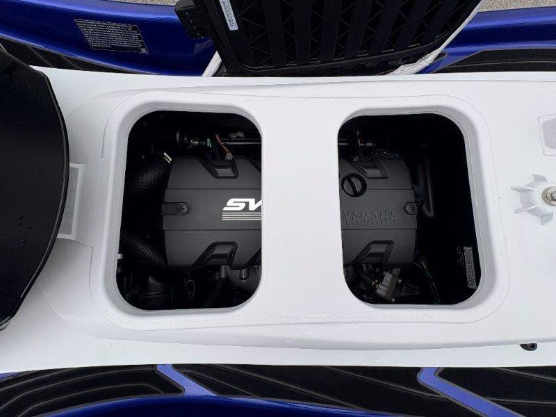 3 IN-STOCK 2025 Yamaha Waverunner GP SVHO w/ Audio POWER & PERFORMANCE Supercharged 1.8L SVHO engine (~250 hp), top speed ~70 mph. 160mm pump, explosive acceleration, RiDE system, Cruise Assist, No Wake Mode™, ~3-4 MPG cruising, 18.5-gal tank. DESIGN & COMFORT Lightweight NanoXcel hull (~811 lbs dry), 10’11” length, 1-2 person seating, aggressive stance, self-draining footwells, lightweight handlebars, easy reboarding step. RIDER FEATURES 4.3" Connext LCD with Touchpad Control, Drive Control, security mode, notifications. Factory audio: twin 6.5" waterproof speakers (6.5" woofer + 1" tweeter), 50W each, 100W amp with auto-volume. 17.1-gal storage with watertight glovebox (LED, USB/12V). KEY FEATURES 250 hp Supercharged SVHO Engine 4.3" Connext Display Premium 100W Audio System RiDE + Cruise/No Wake 17.1 gal Storage Pull-up Cleats & Tow Hook Colors: White/Racing Blue or Black