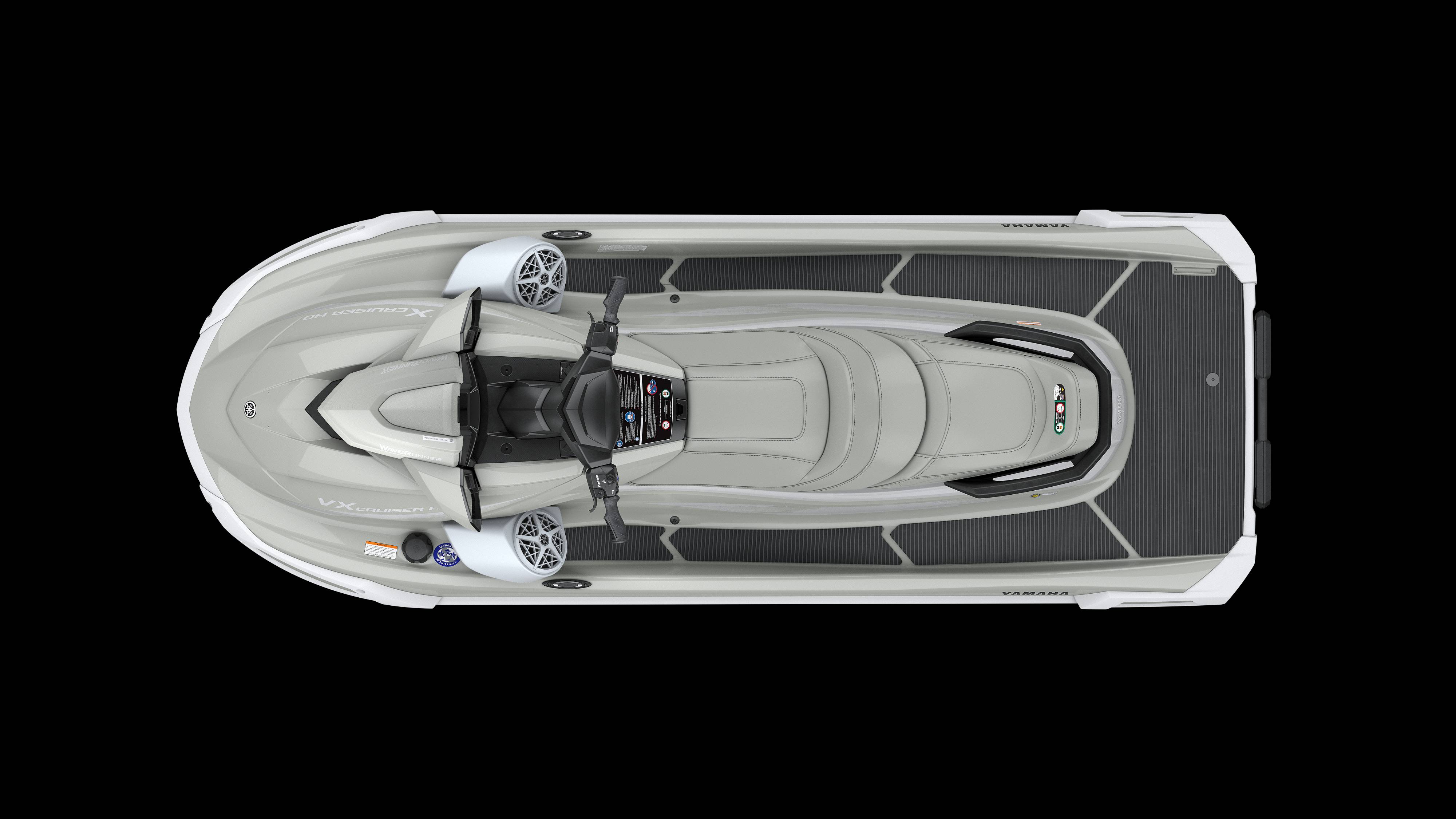 2025 Yamaha Waverunner VX Cruiser HO The Industry's Best Selling Model The VX ® Cruiser HO boasts superior ergonomics, cutting-edge technology, and optional integrated speakers, making it the top choice for watercraft enthusiasts. Available Colors Deepwater Blue & Pearl/Mint Rider Capacity (people) 1-3 Length 11'1" Width 4'1" Height 3'11" Dry Weight (lbs) 783 Fuel Capacity (gal) 18.5 Storage Capacity (gal) 30.1 Yamaha Marine Engine 4-cylinder, 4-stroke, 1.9 Liter High Output Yamaha Marine Engine Displacement 1898CC Fuel Capacity (L) 70 Recommended Fuel Regular Unleaded 155 MM High-Pressure Pump Oil Capacity per Engine (L) 2.6 RiDE® T.D.E Reverse Assist Mode Factory Installed Yamaha Audio System Optional Connext Screen (in) 4.3 Connext Screen Security Drive Control X(3step) Bluetooth Capable Text/Call notifications Drive Control/Low RPM Mode Fuel Gauge Connext Screen Cruise Assist/No Wake ModeTM Touchpad Control Automatic Bilge Molded Cooler Storage in Bow Multi-Mount System 2 Dual Mirrors Glove Box Watertight with USB & 12V Outlet with Accent Lighting Seat Cruiser 2-piece Water-resistant Under-seat Storage Pull-up Cleats 2 Reboarding Step upgraded Footwell Drains Deck Mats Custom Cut Tow Hook upgraded Maintanence-free Battery