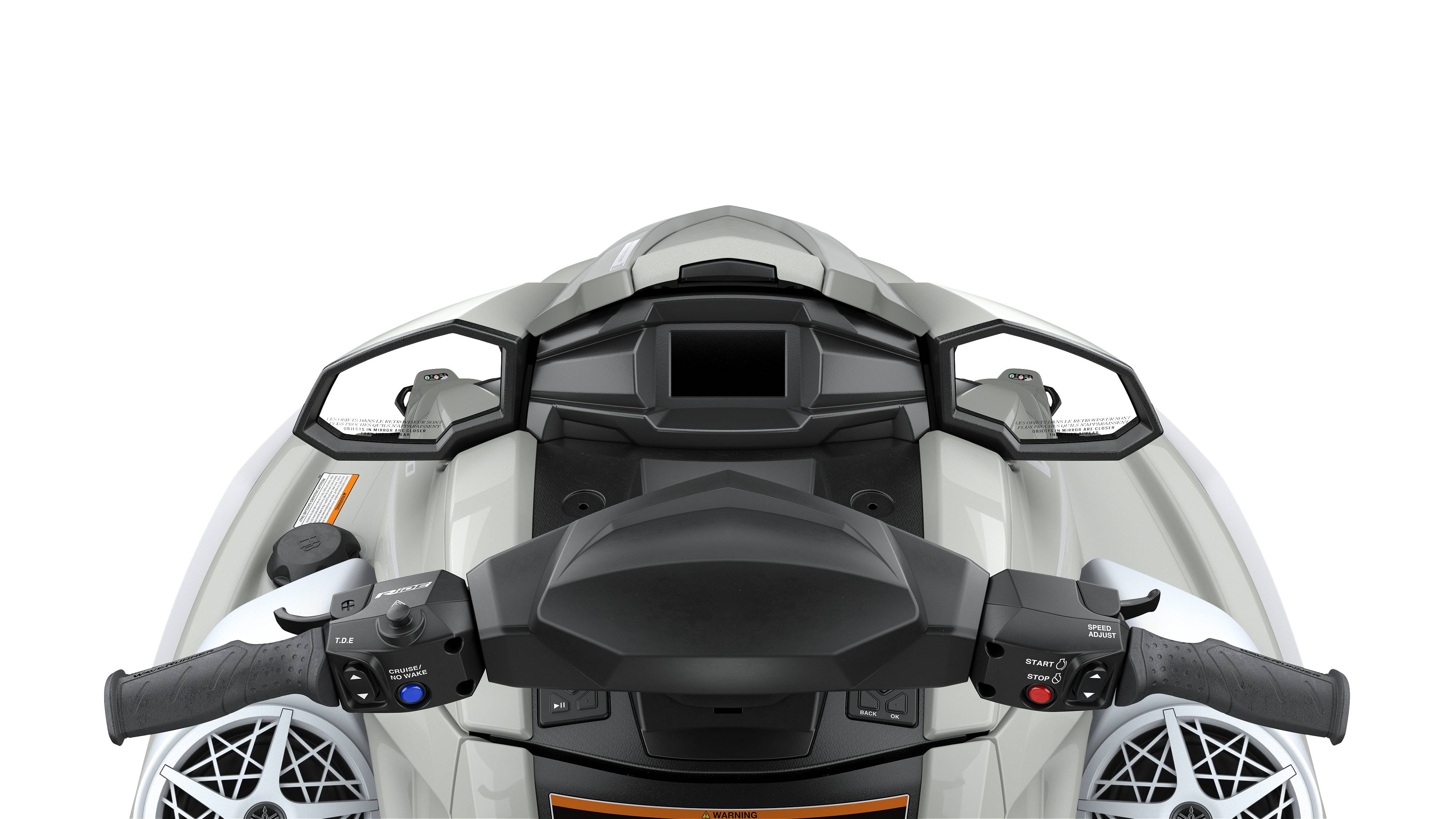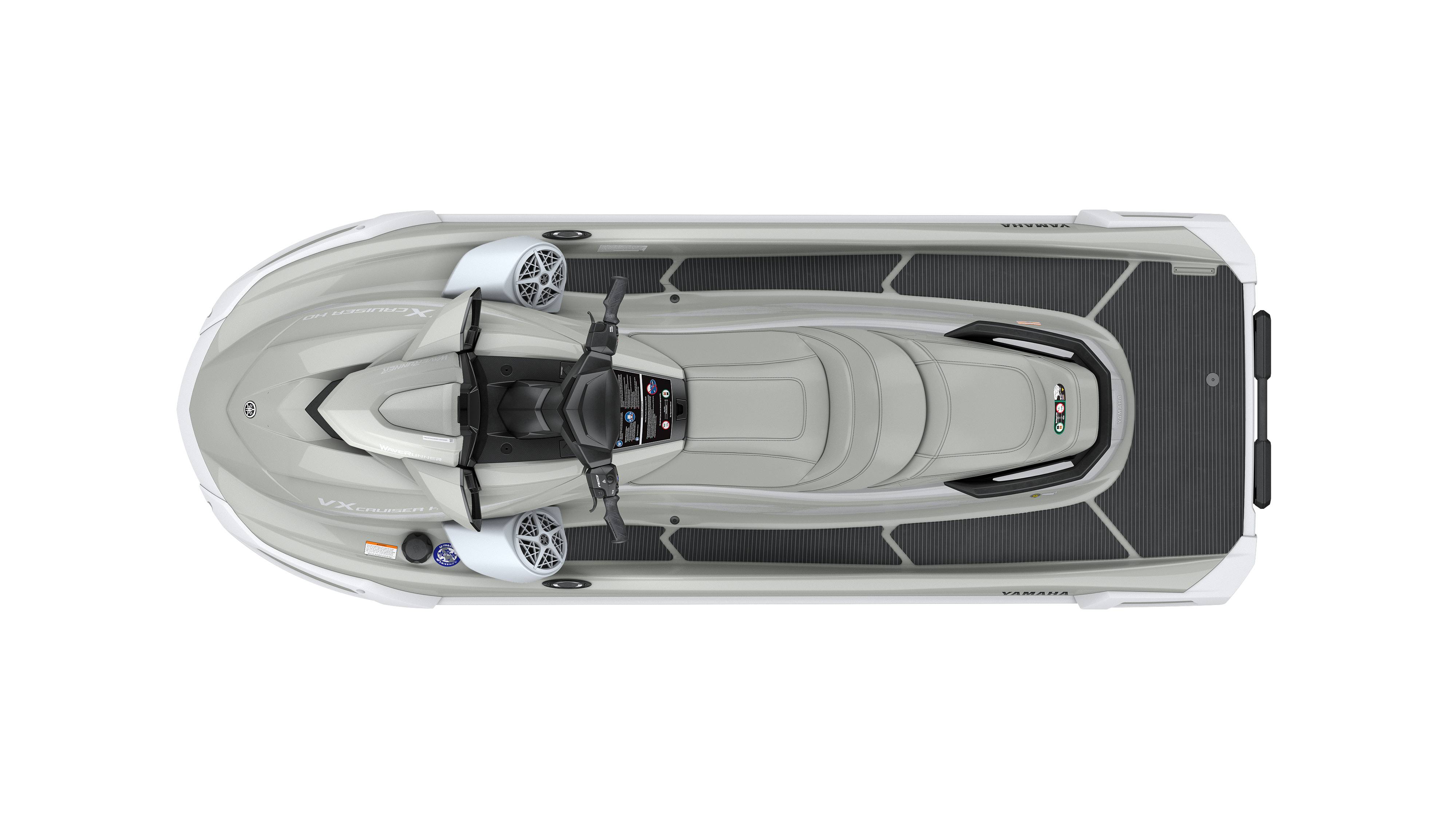 2025 Yamaha Waverunner VX Cruiser HO Engine: 1.9L High Output (1,898 cc), 4-stroke, 4-cylinder, water-cooled. Dry Weight: 783 lbs. Length: 11' 1". Width: 4' 1". Height: 3' 11". Fuel Capacity: 18.5 gal (70 L), regular unleaded. Storage Capacity: 30.1 gal. Rider Capacity: 1-3 persons. Pump: 155mm High-Pressure. Key Features RiDEĀ® System: Dual throttle handlebar for easy maneuvering and reverse. Connext Screen : 4.3-inch color display with security and drive control. Audio: Optional factory-installed Yamaha audio system. Comfort: Cruiser 2-piece seat, deep footwell drains, and upgraded reboarding step. Convenience: Watertight glove box with USB & 12V outlet