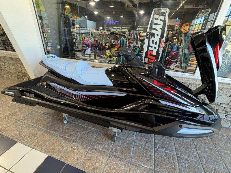 2025 Yamaha Waverunner VX Cruiser Affordable Cruiser Comfort Engineered for unparalleled comfort and convenience, enabling you to explore more and venture further. Available Colors Black/Ice Blue & White Rider Capacity (people) 1-3 Length 11'1" Width 4'1" Height 3'11" Dry Weight (lbs) 690 Fuel Capacity (gal) 18.5 Storage Capacity (gal) 30.1 Yamaha Marine Engine 3-cylinder, 4-stroke TR-1 High Output Yamaha Marine Engine Displacement 1049CC Fuel Capacity (L) 70 Recommended Fuel Regular Unleaded 155 MM High-Pressure Pump Oil Capacity per Engine (L) 3.4 RiDEĀ® T.D.E Reverse Assist Mode Factory Installed Yamaha Audio System Optional Connext Screen (in) 4.3 Connext Screen Security Drive Control X(2step) Bluetooth Capable Text/Call notifications Drive Control/Low RPM Mode Fuel Gauge Connext Screen Cruise Assist/No Wake ModeTM Touchpad Control Automatic Bilge Molded Cooler Storage in Bow Multi-Mount System 2 Dual Mirrors Glove Box Watertight with USB & 12V Outlet with Accent Lighting Seat Cruiser 2-piece Water-resistant Under-seat Storage Pull-up Cleats 2 Reboarding Step upgraded Footwell Drains Deck Mats Tow Hook upgraded Maintanence-free Battery