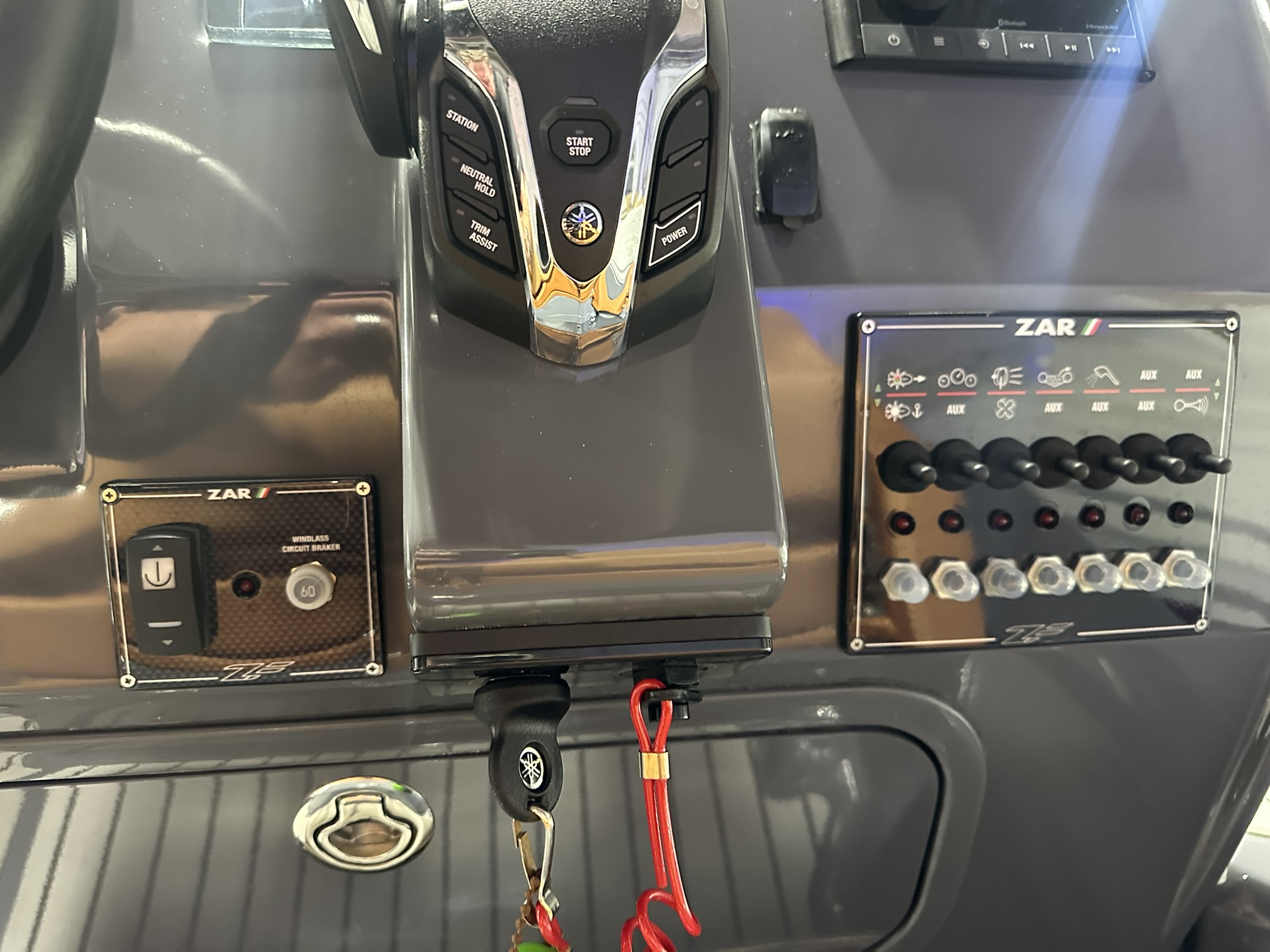 THIS IS A MUST LOOK BOAT!!! Rarely does an opportunity come around like this. This ZAR 59 Limited Custom was taken to the max. The Upgraded Yamaha F200 was custom painted to match the custom cushion set color. Even the Nav lights and horn were painted to match. The Yamaha has electronic controls and electronic steering. Auto pilot can easily be added. The Fusion stereo with highly upgraded JL Audio M6 speakers and Sub we also taken to the max. Electric anchor windlass with wireless remote control, Freshwater system, deck and under water lights, upgraded battery system with batter charger and separate batter inverter were installed. Towing bits installed at the bow. Full custom mooring cover as well as slip covers for thee console and helm seat. The list goes on and on.