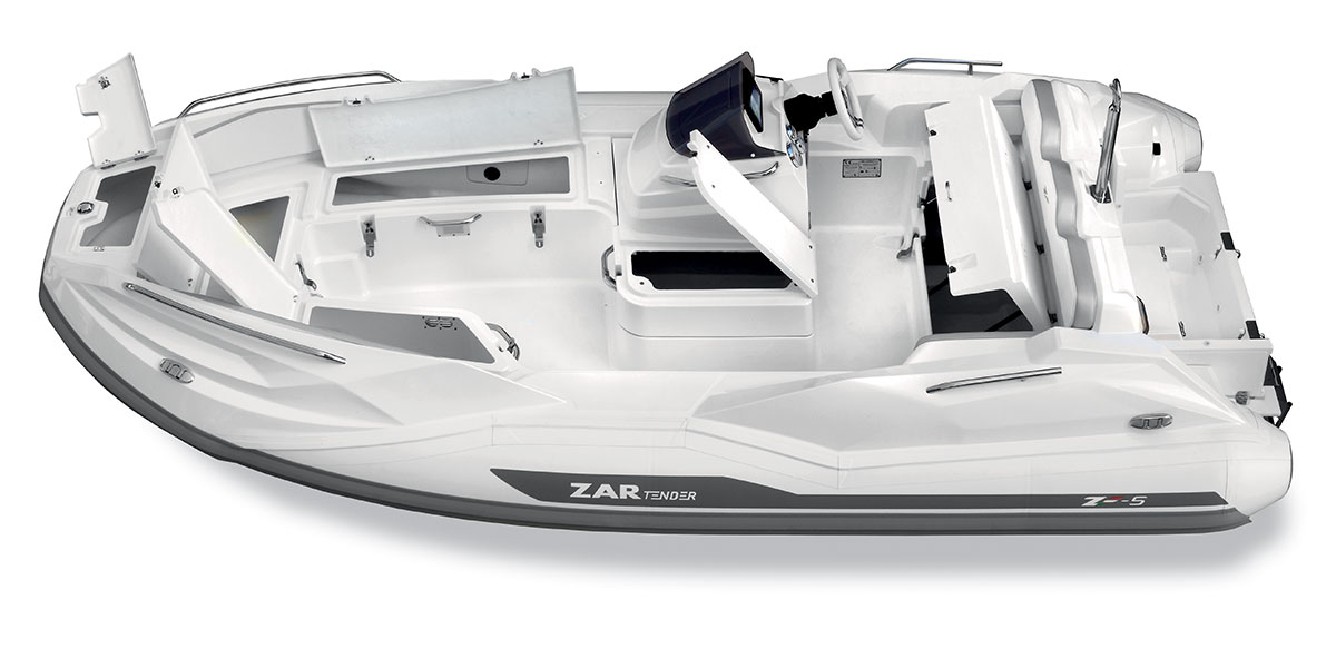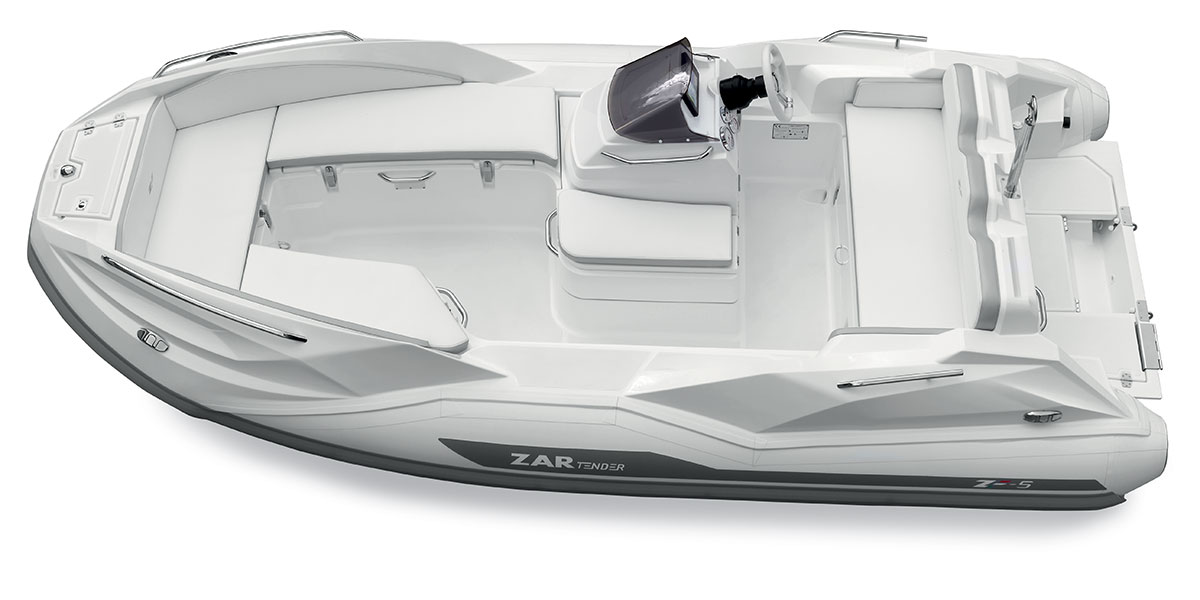 The ZAR ZF-5 Tender is revolutionizing what the traditional yacht tender is supposed to be. Pushing the boundaries in every way, this 15 foot tender seats 9 people in seats and gets on plane with 9 adults rigged with a 70hp motor. You must compare the ZAR ZF-5 with a comparable boat of at least 17 feet in length. Superior handling, superior ride quality, superior quality, superior in every way! The ZAR ZF-5 Tender has a open deck plan with a full walk through to the U-shaped seating in the bow. A true anchor locker and true swim platform with integrated swim ladder add to the luxury touches you have come to know from ZAR. The seating all has storage beneath giving the ZF-5 the absolute most storage of any comparable boat of the same size. The ride is the best part! With the ZAR hull, the ZF-5 is the best running, best performing, driest, most comfortable ride with more seating and double the storage of any competing boat of the same size.