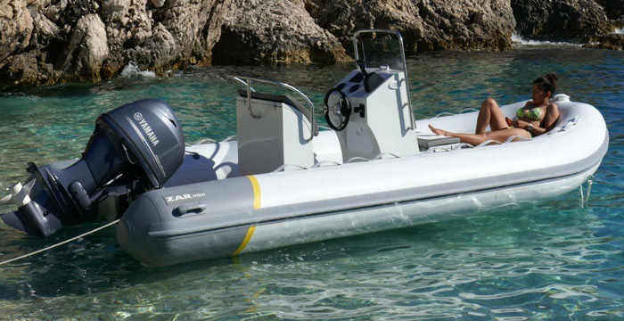 The ZAR mini RIB 15 SUV at only 875 lbs fully wet rigged with a Suzuki 60 is the lightest 15' in its class. The very Deep-v hull makes for the smoothest ride while the oversized tubes give the most stability you want and need. This is the perfect boat for outdoor and water sports enthusiast that want the versatility of a boat that can cruise, fish, dive, tow, and more.