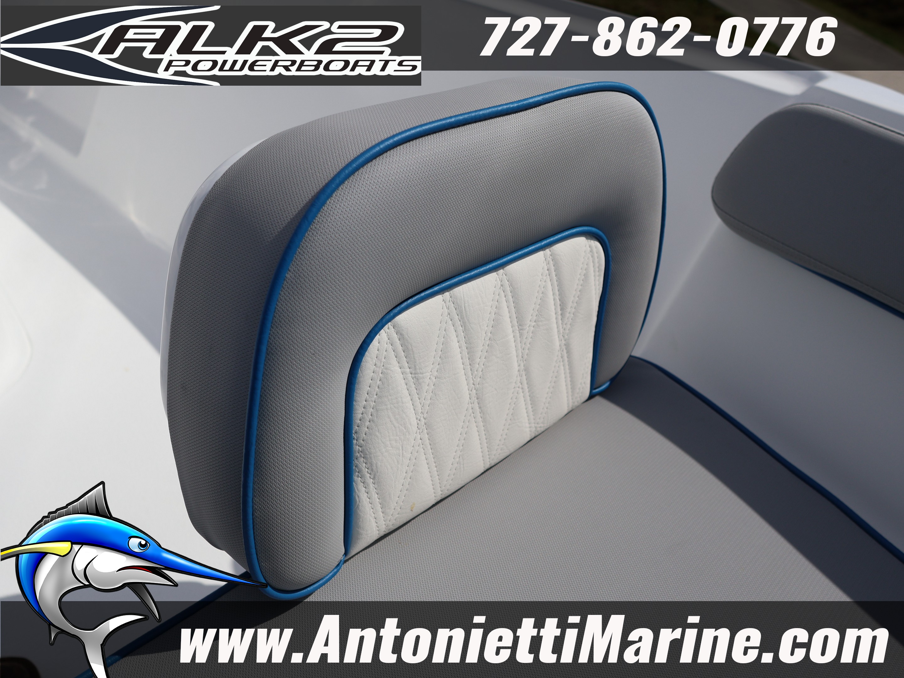 • WHITE/GREY UPHOLSTERY W/ BLUE TRIM