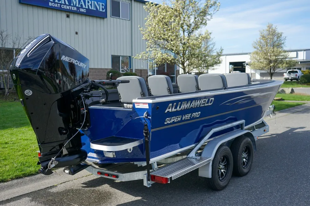 Alumaweld's Super Vee Pro has earned many titles, ''the ultimate fishing machine'', ''The Guide's Choice'', and, ''the choice of professionals'', to name a few. Developed by, and for, Western fishing guides, the Super Vee Pro reflects the very highest standards of design, construction and performance. Mercury 200XL TILLER JET PUMPBattery Tray/fuel Water SeparatorShear CleatsTop Load Rod LockersLower Electronic DoorsDiamond Plate Bow GuardWide TraysSwin StepInterior LightsBattery SwitchSide GuidesTandem Axle Trailer With Brakes Master Marine Boat Center | To learn more about this listing, give us a CALL or TEXT at (360) 336-2176, email us at sales@mastermarine.com, or visit our website at mastermarine.com.
