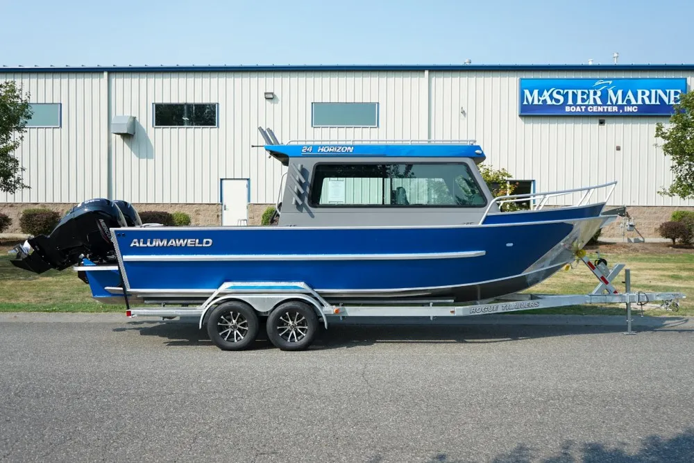 The new Horizon from Alumaweld is here! Combining innovative hard top cabin design, unmatched performance, and lots of options for customization. It has the new transom access door and a roomy cabin. • Twin Mercury 150XL/CXL• Kicker Bracket• Dual Wipers• Electric Trim Tabs w/AutoTrim Pro Control• Dual Battery Management System• Diesel Heater• Top and Side Cab Rocket Launchers• Diamond Plate Step Deck• Diamond Plate Bow Guard and Corner Caps• Rear Steering Station• Cockpit Gunnel Rubber• 24” Roof Extension• Top Load Rod Lockers• LED Interior Lights• Sleeper Seats with Porta-Potti• Front Trail Boss Suspension Seats• Deluxe Appearance Package• Transom Fish Box• Wash Down Pump• Rogue Trailer with Disc BrakesMaster Marine Boat Center | To learn more about this listing, give us a CALL or TEXT at (360) 336-2176, email us at sales@mastermarine.com, or visit our website at mastermarine.com.