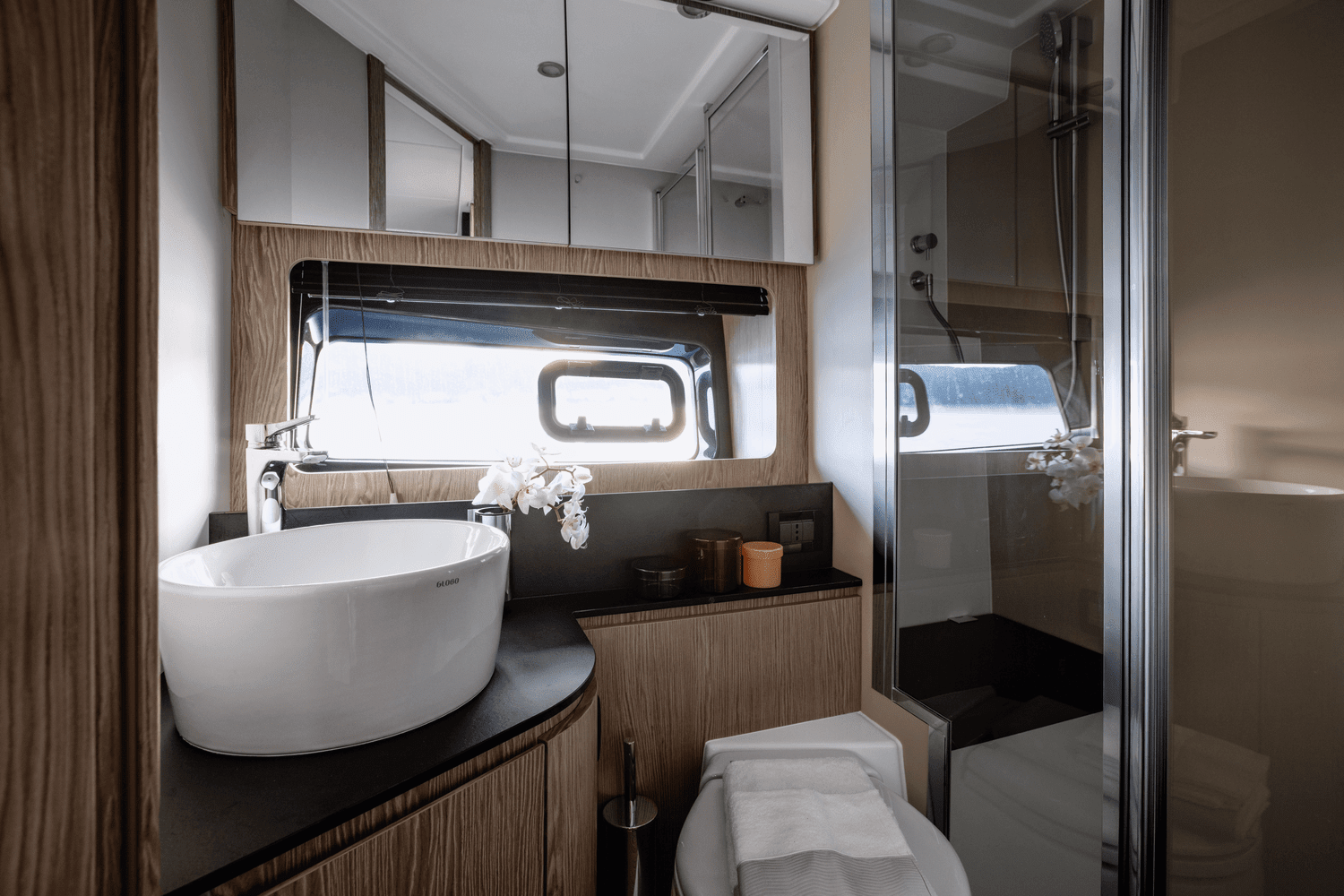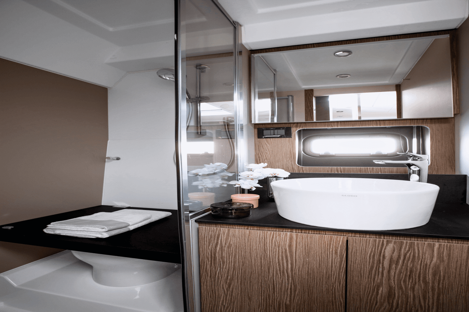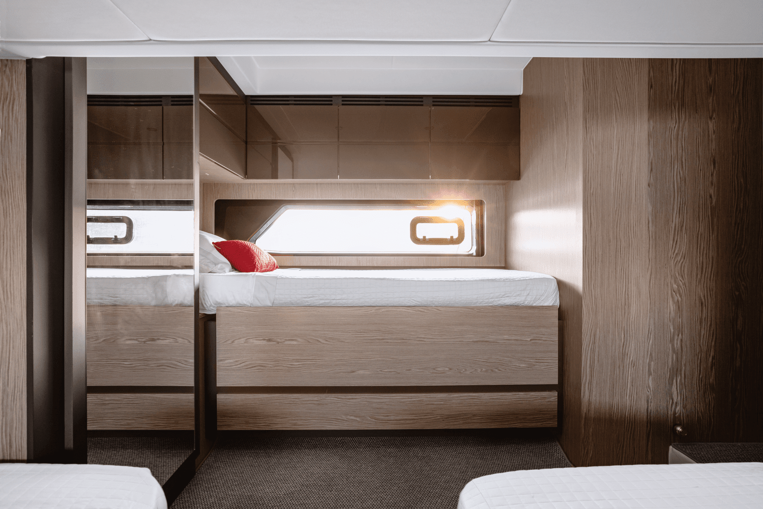 The Art of Hospitality - A generous beam accommodates the versatile second cabin. The large full-height side cabinet at the enterance can also be configured as a third bed, and the two twin beds can slide together to form a queen sized bed. Free your spirit on the Atlantis 45.