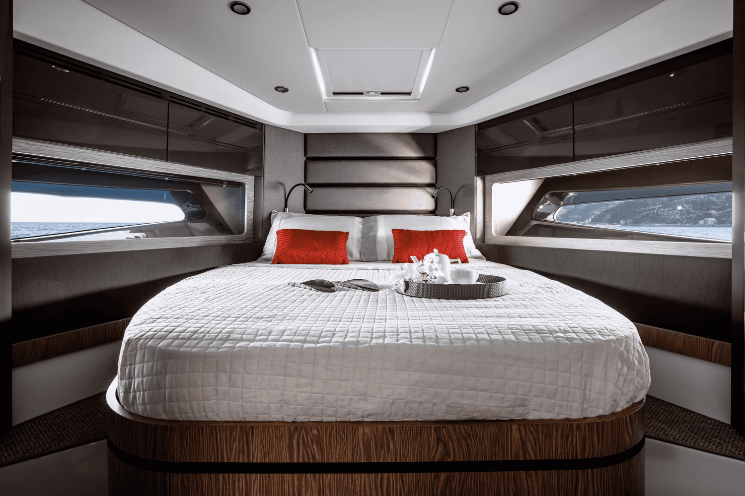 Below Deck Bel Air - Aspiring to create an airy and roomy environment below deck, the layout develops around a central square, constituted by the alignment of the galley with the lounge dinette to unify and expand the space.