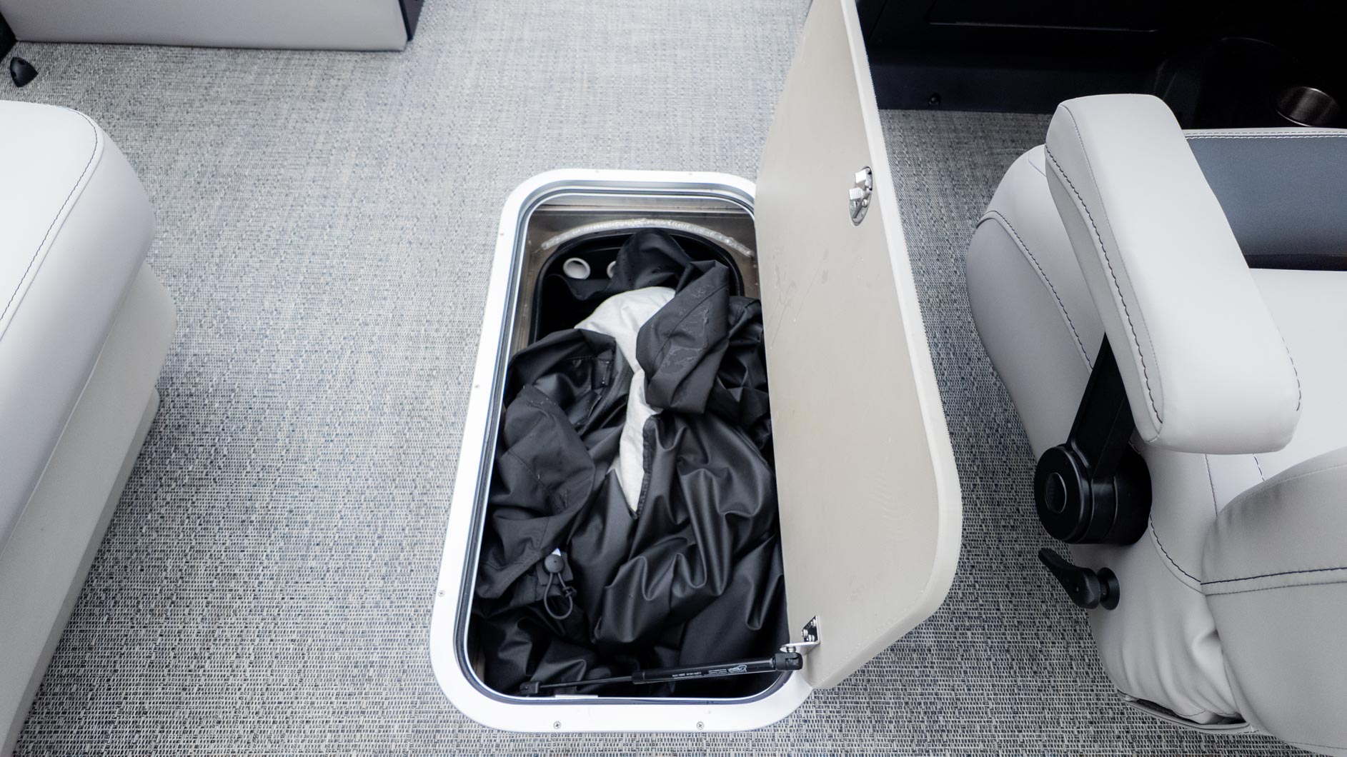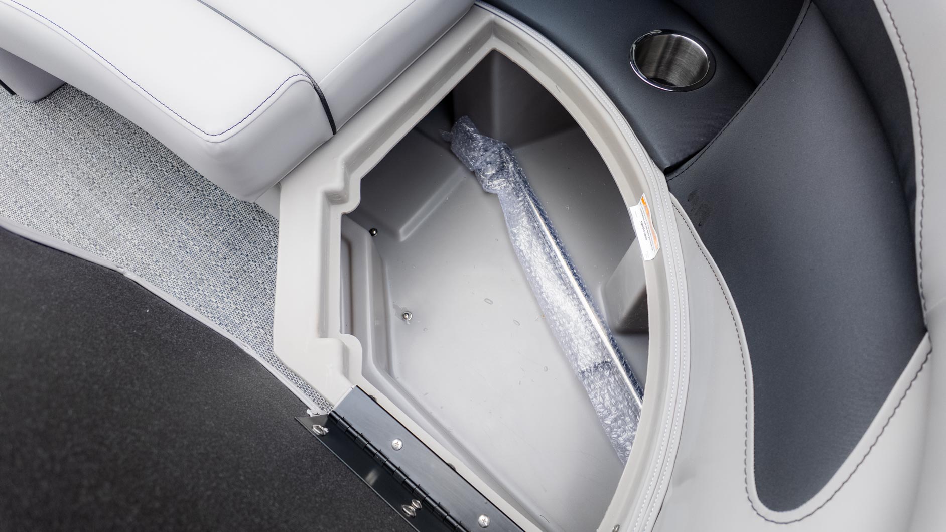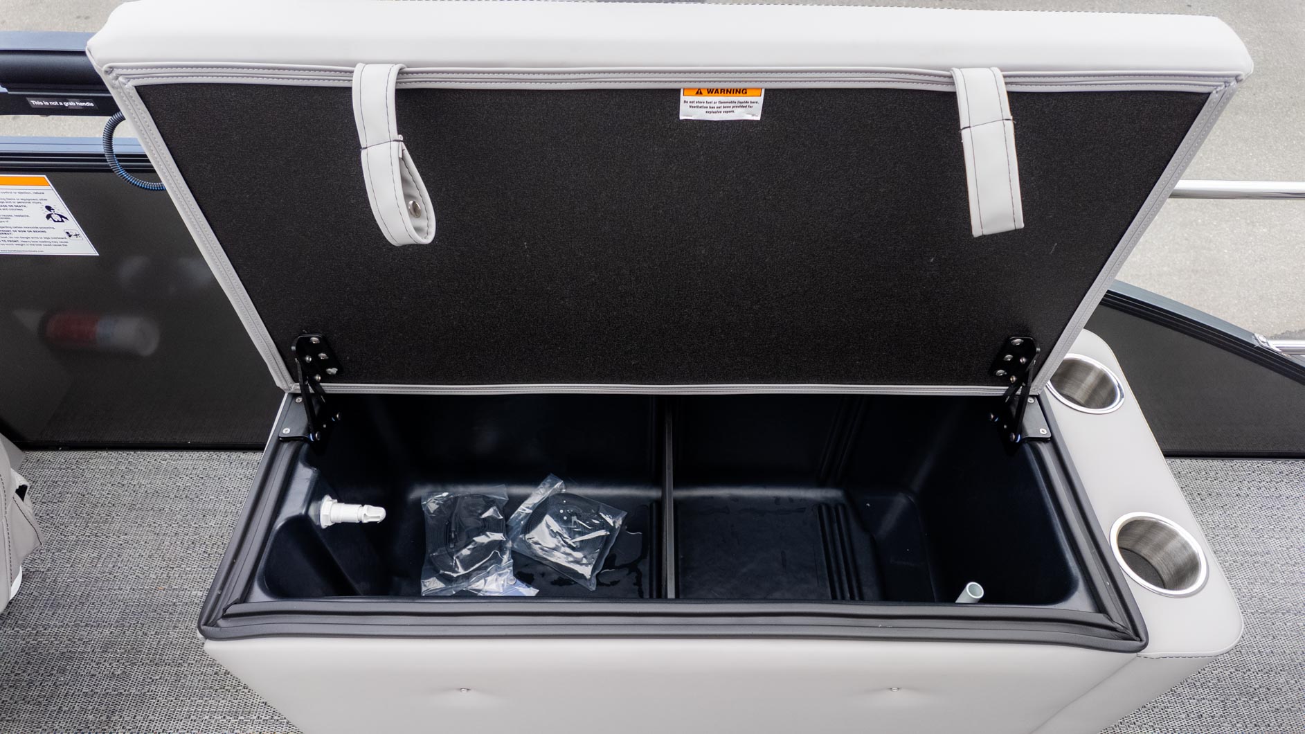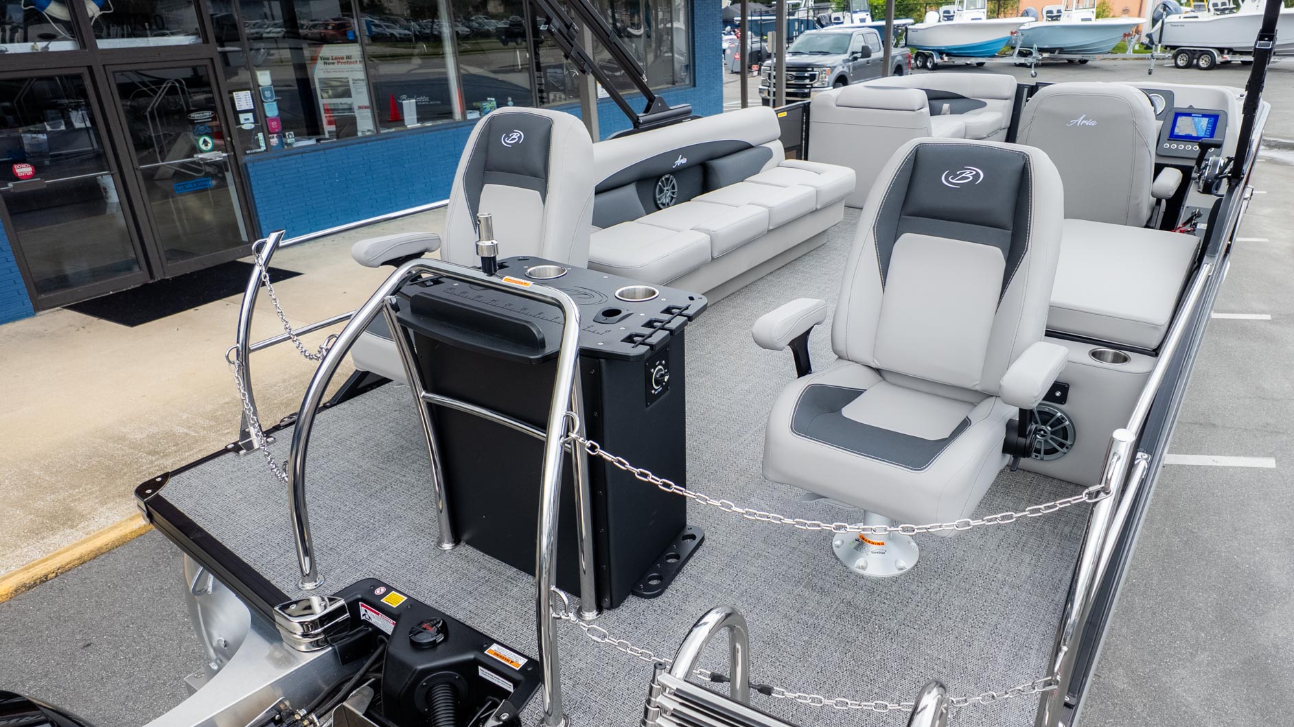 Get ready for fun on the water with the Barletta Aria A22CC. This pontoon is designed for the casual angler and their entire crew. You get the best of both worlds with a versatile layout that combines fishing amenities with comfortable seating. The boat is equipped with a fishing center that has rod holders, rod storage, and tackle trays. You'll also find an extra-large livewell with an aerator and Yeti-ready cupholders. The furniture, with its Tempest Gray color and Amore Gray flooring, provides a comfortable and stylish atmosphere for a day of cruising with family and friends.