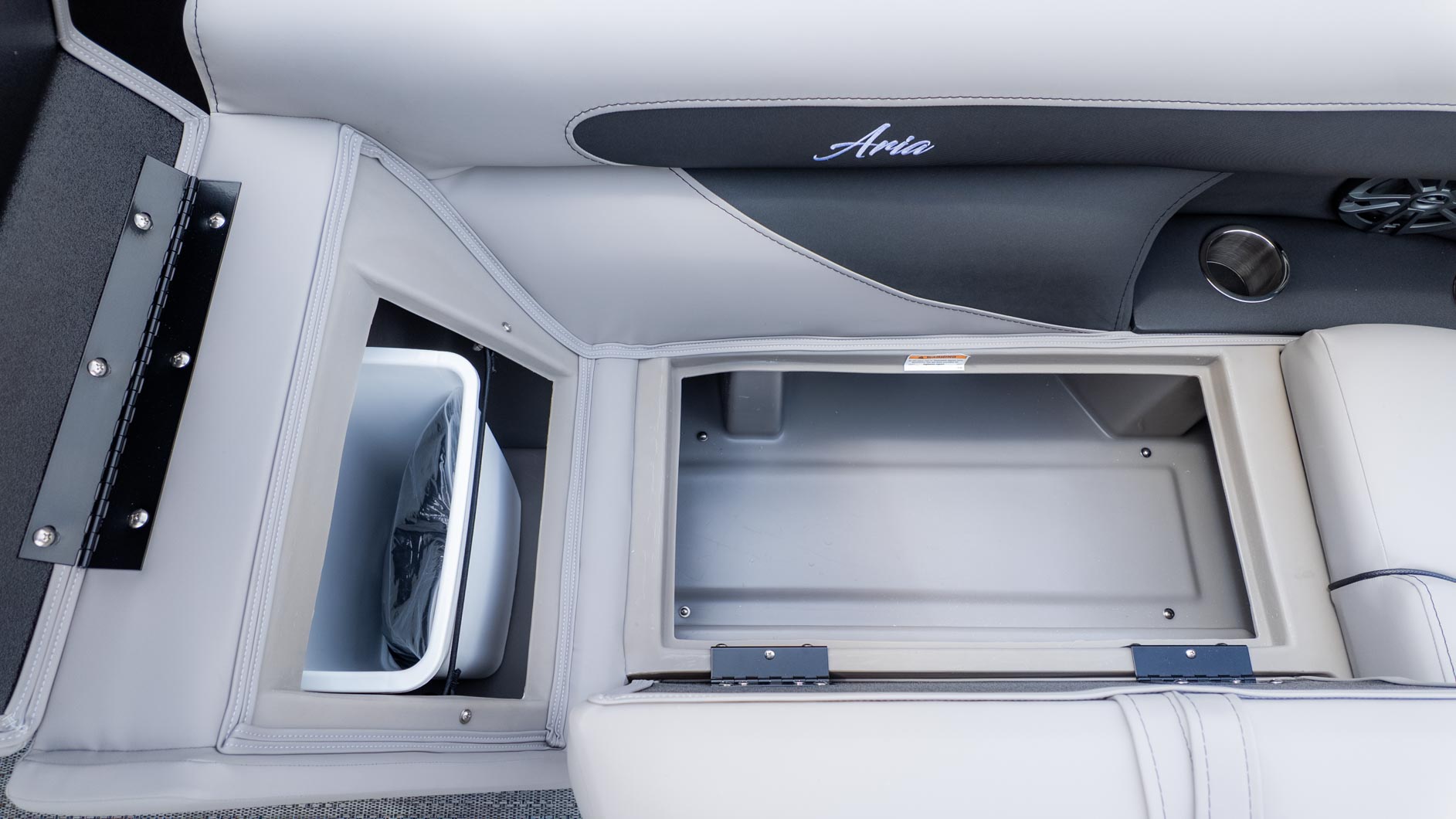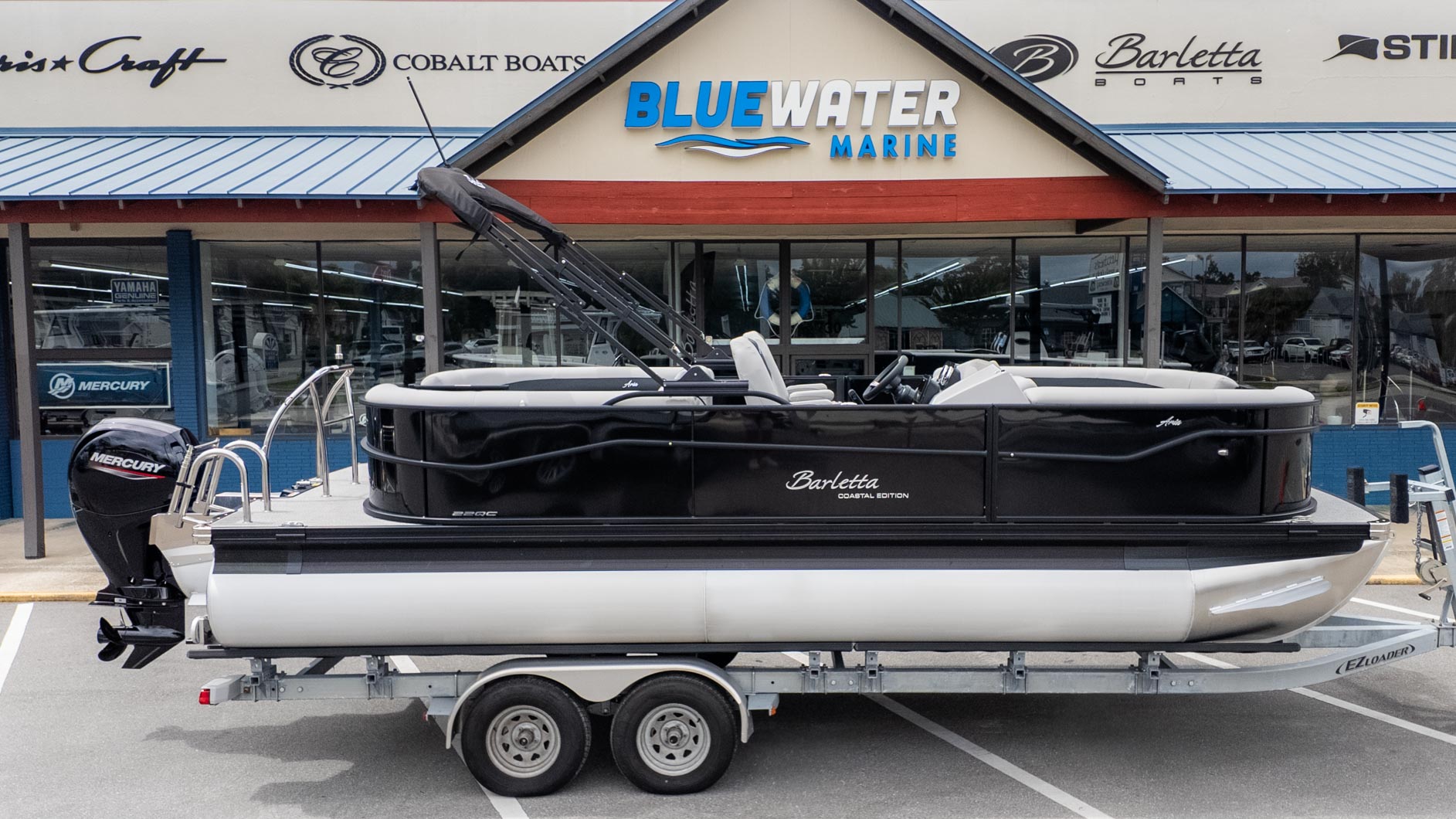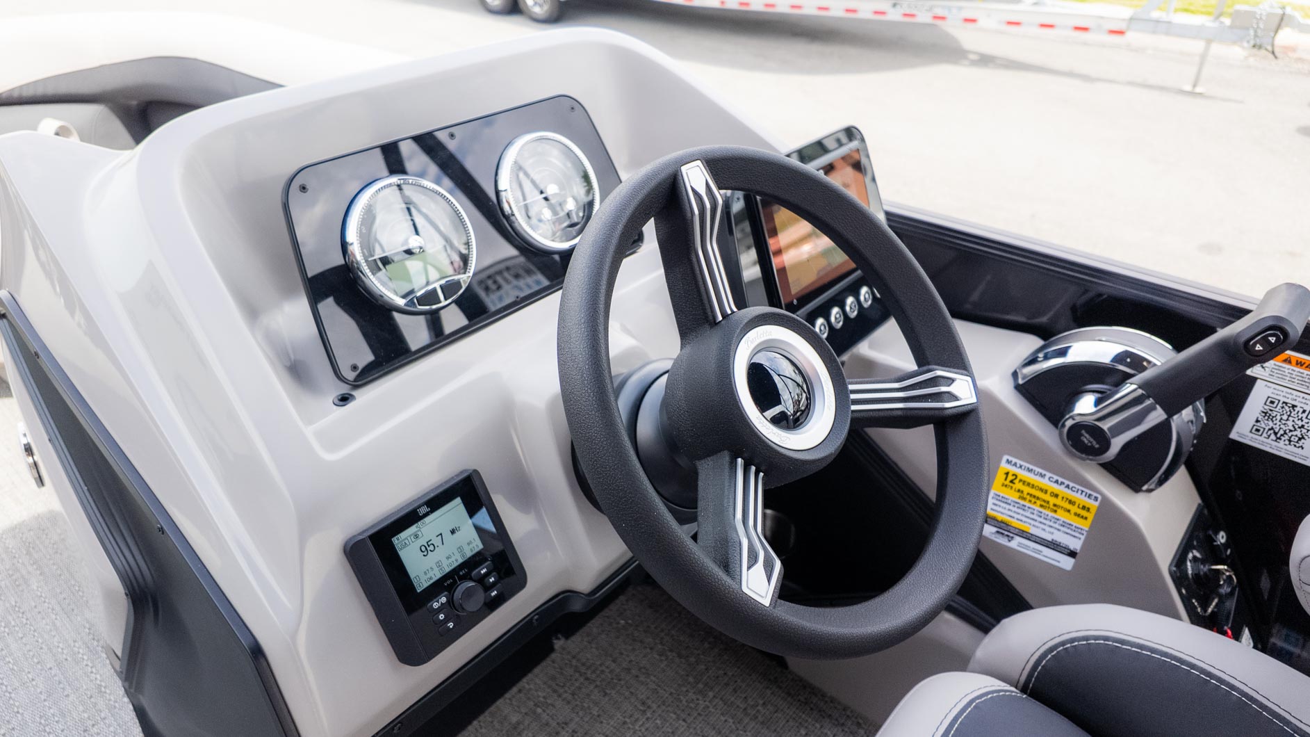 The Aria A22QC is powered by a Mercury 150L Four Stroke engine. Whether you're heading out for a day of cruising with friends or a family outing, the triple toon package offers a smooth and comfortable ride. The spacious deck and seating for up to 12 people make it ideal for hosting get-togethers and creating lasting memories on the water. The included JBL Marine Stereo with four speakers is ready to set the soundtrack for your adventures. You'll also find Yeti-ready stainless steel cupholders throughout, perfect for keeping your favorite beverages cool. This boat is a great option for anyone looking for a versatile and luxurious pontoon experience.