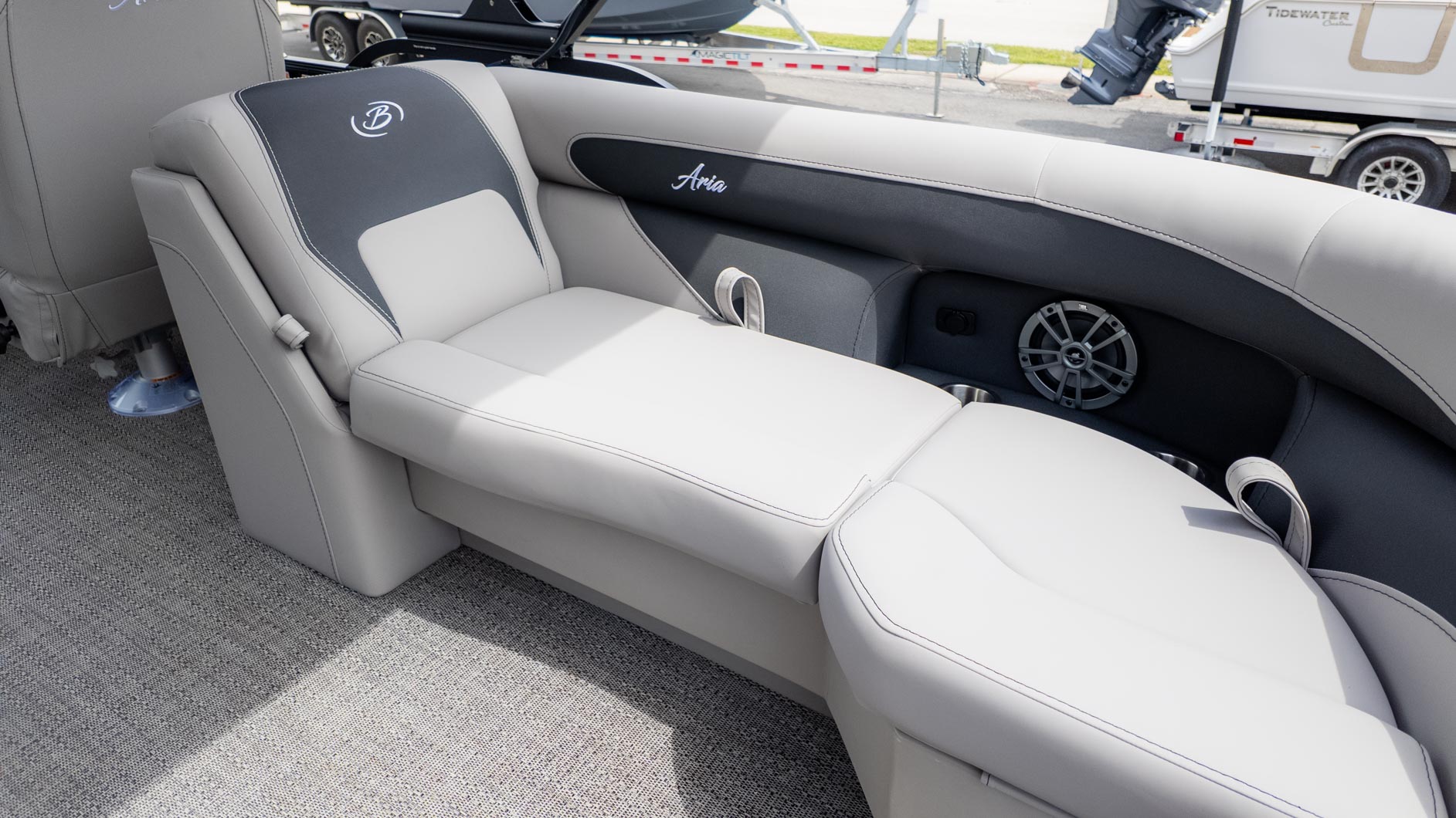 Ready for fun in the sun? The Barletta Aria A22QC is perfect for those who want a blend of comfort, style, and practicality. With its Tempest Gray furniture and Amore Gray flooring, the interior is stylish and easy to maintain. The boat is designed with thoughtful, pet-friendly amenities, so your furry friends can have a great time too.