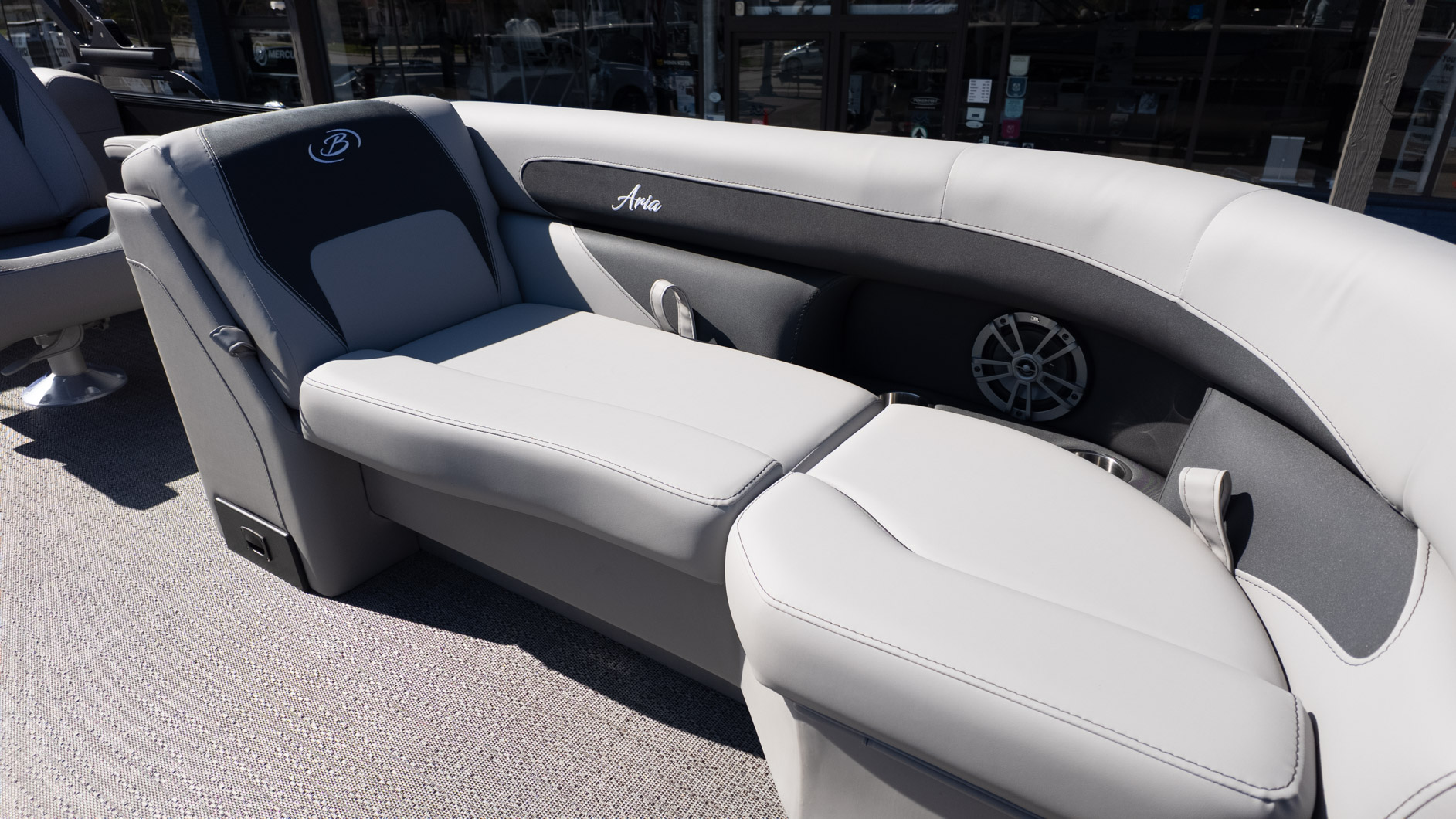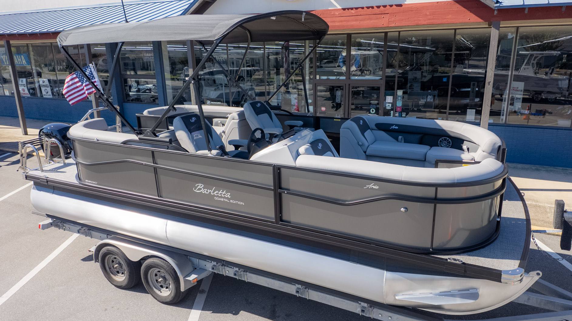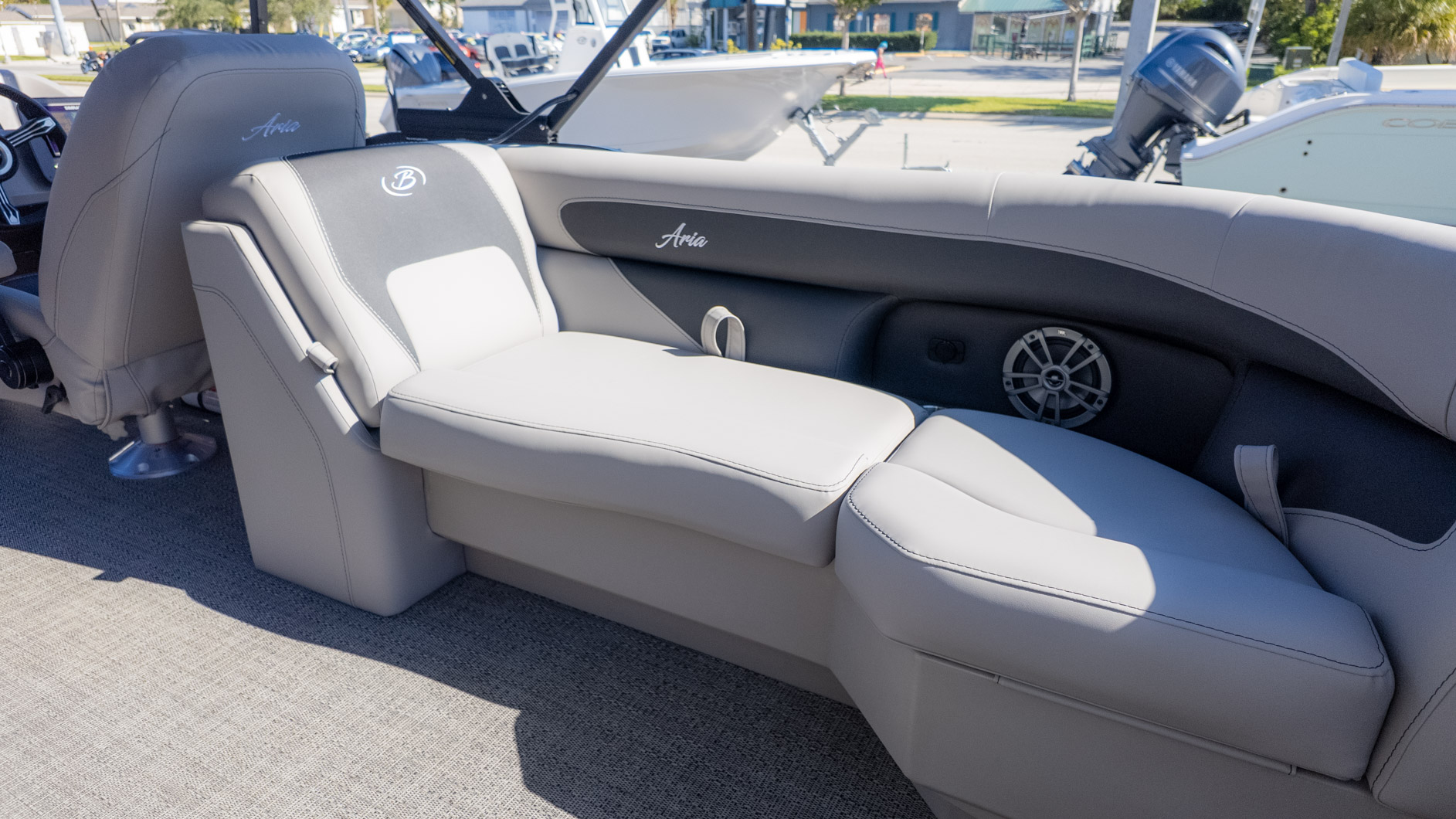 Ready for some on-the-water fun? The Barletta Aria A22QC is designed for those who want a quality boat without sacrificing features. It's the perfect pontoon for a family who wants to get out on the water, with seating for up to 12 people when equipped with the Triple Toon package. This boat is ready for a good time with its standard JBL Marine Stereo and four speakers. The Tempest Gray furniture and Amore Gray flooring create a comfortable and stylish atmosphere for all your adventures.