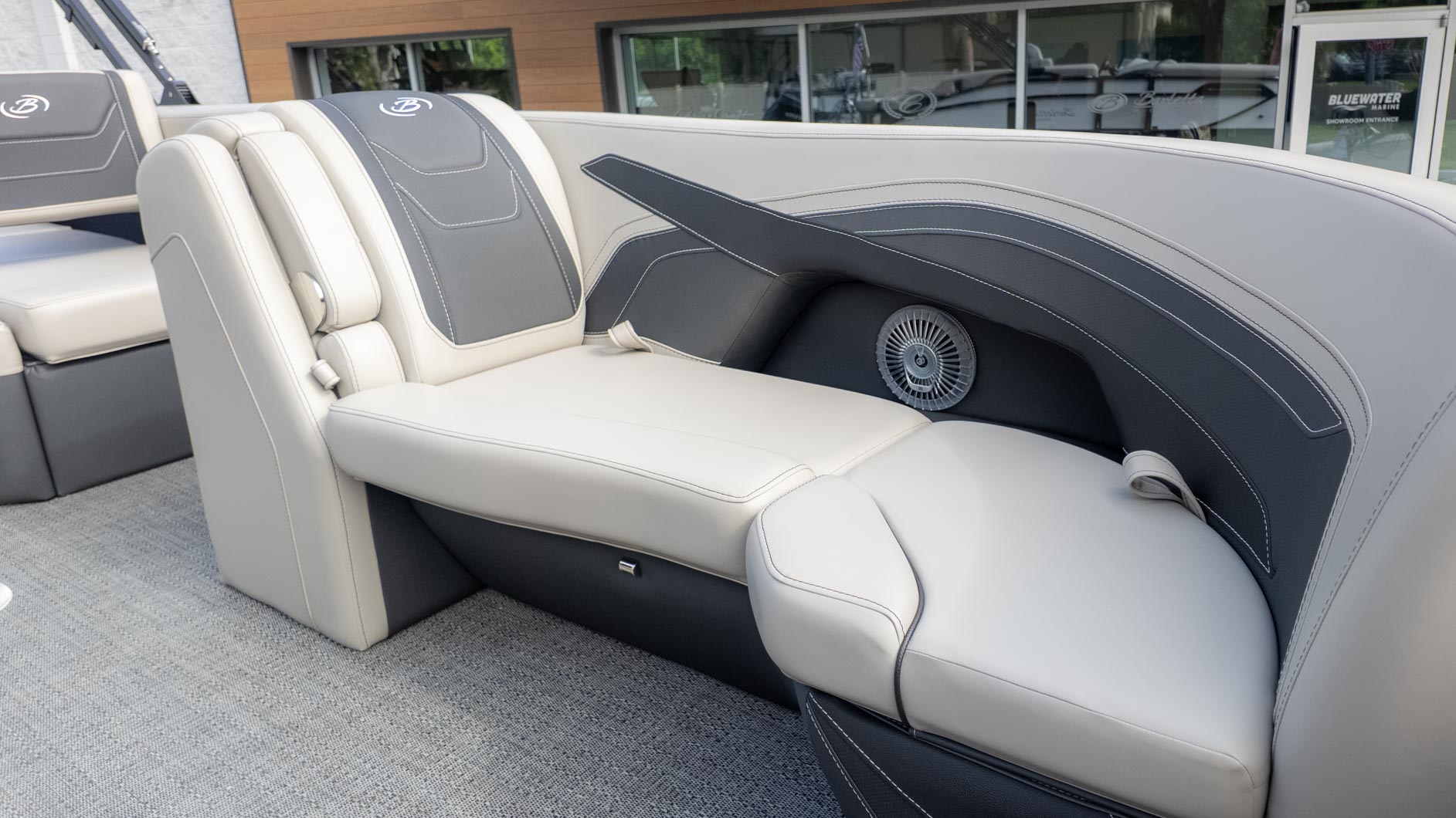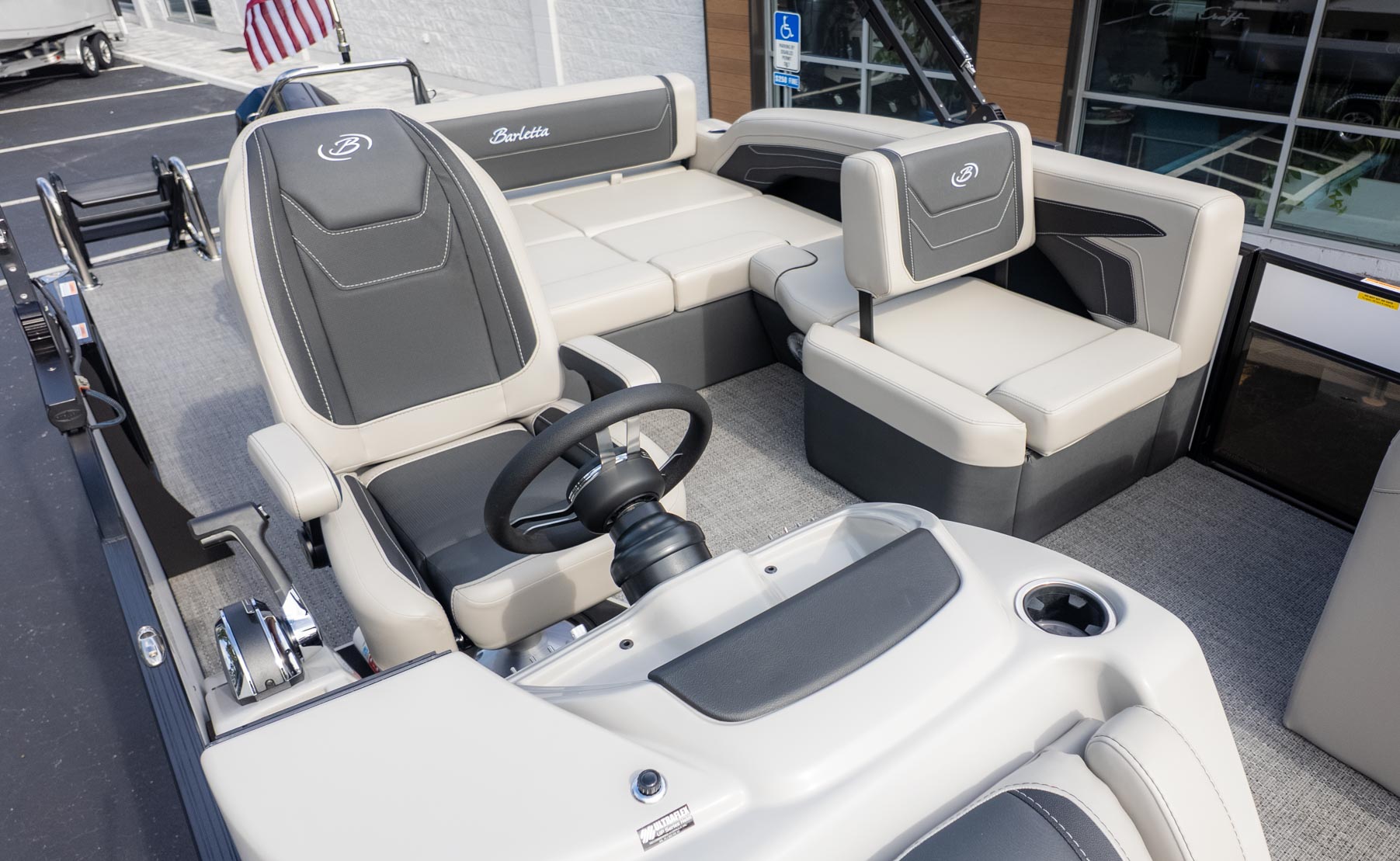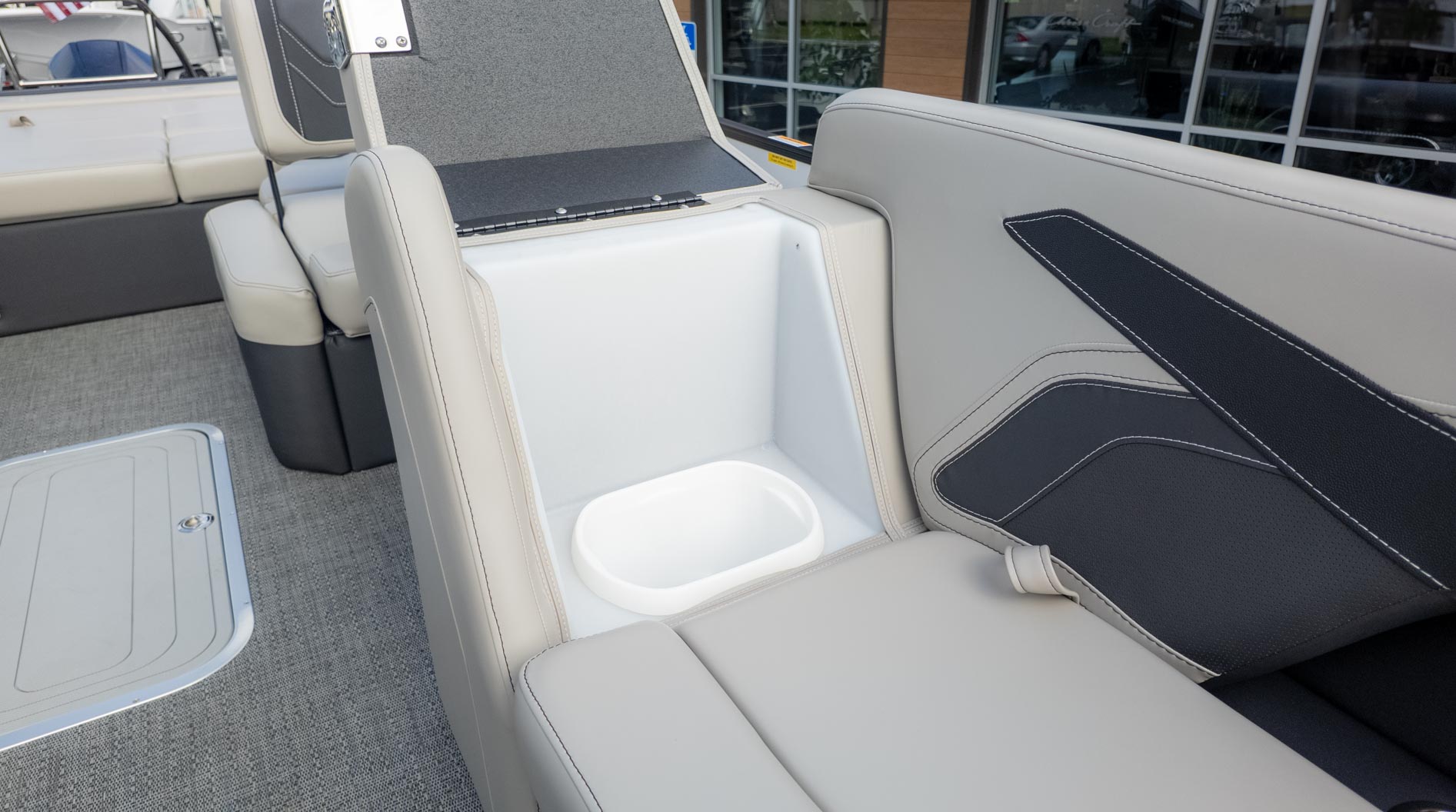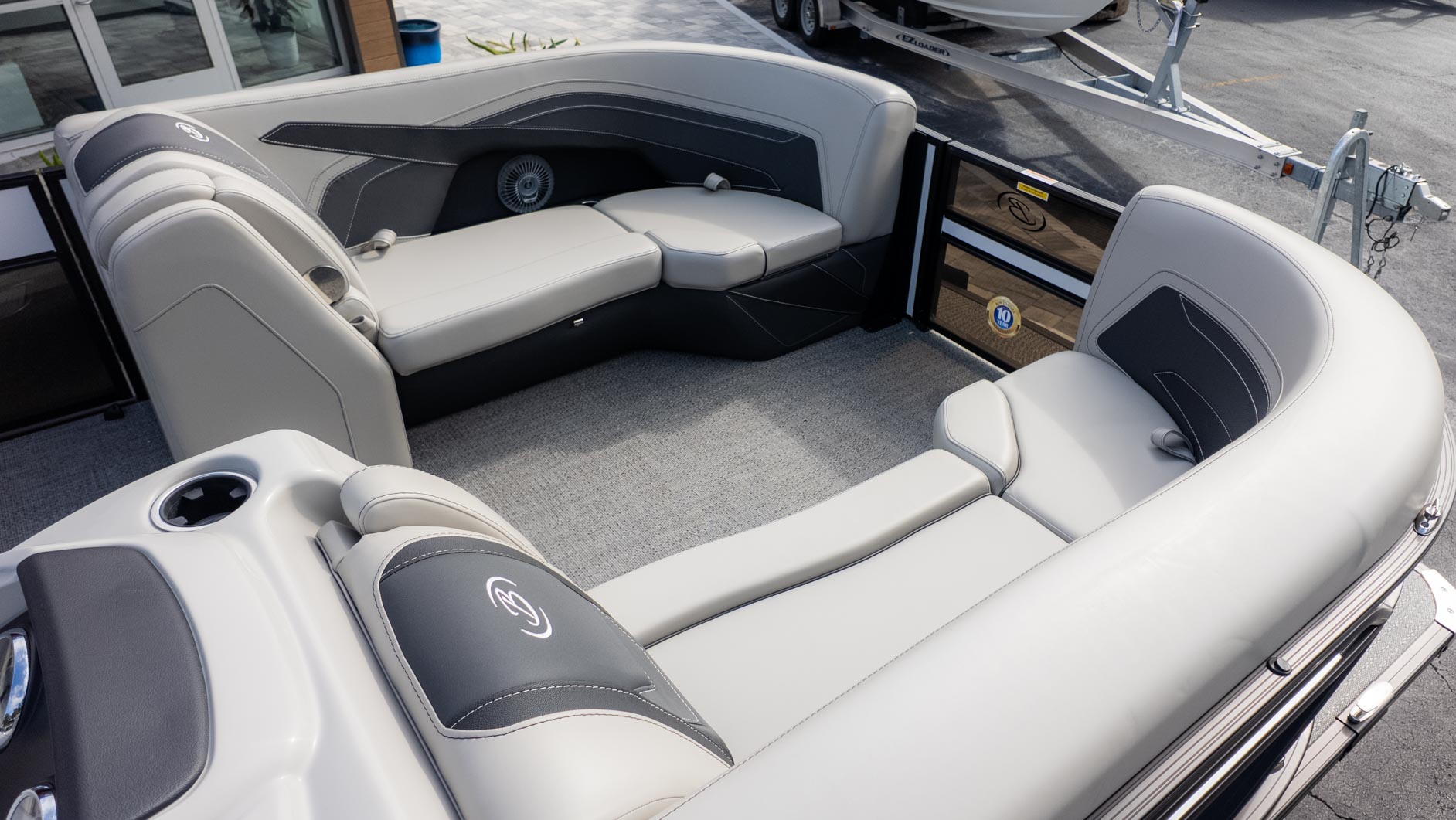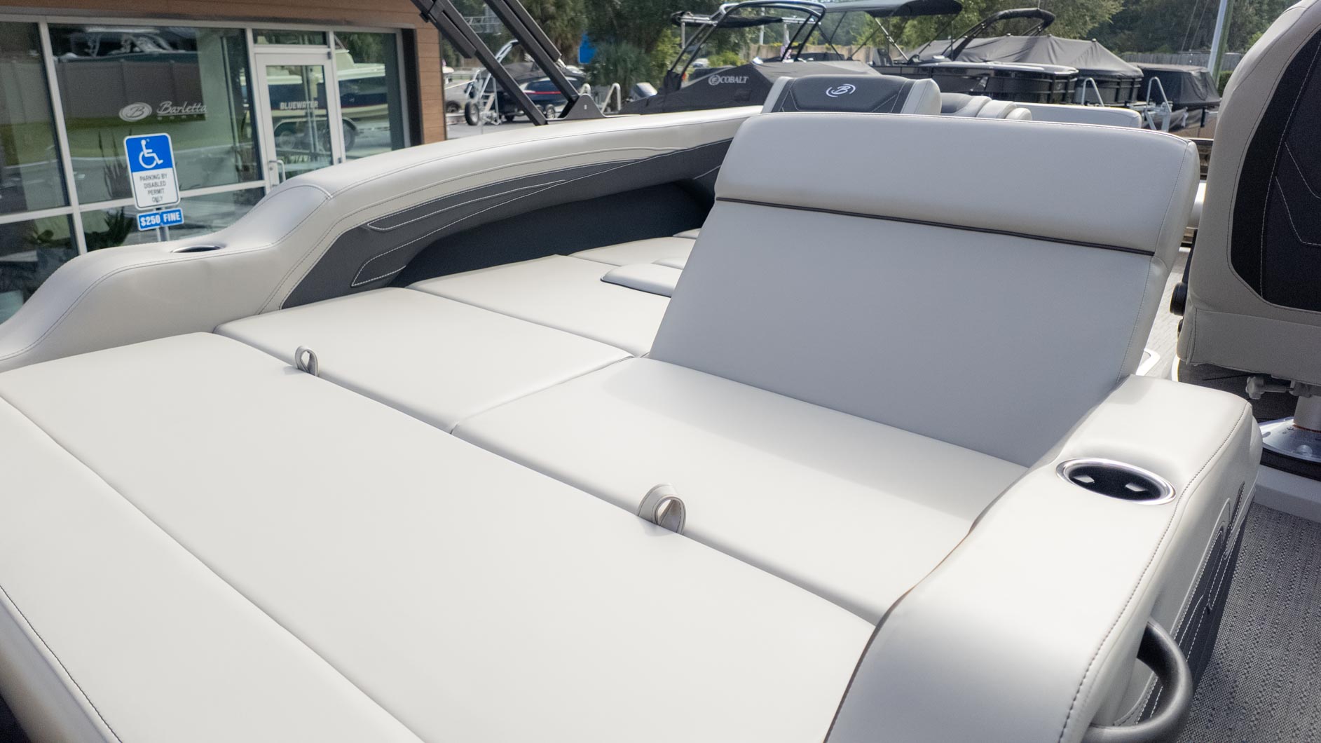 The Cabrio C22U is a dream for those who love to entertain, offering an E-Z Access integrated waste basket, a stow-away table in the port chaise, and Yeti-Ready cupholders throughout to keep your beverages perfectly chilled. For the music lovers, the JBL Marine Stereo with 6 speakers will keep the good times rolling. And with the included Mercury 200L FourStroke engine, you'll have plenty of power for leisurely cruises or pulling a tube with the integrated watersports cage. Get ready to make some waves!