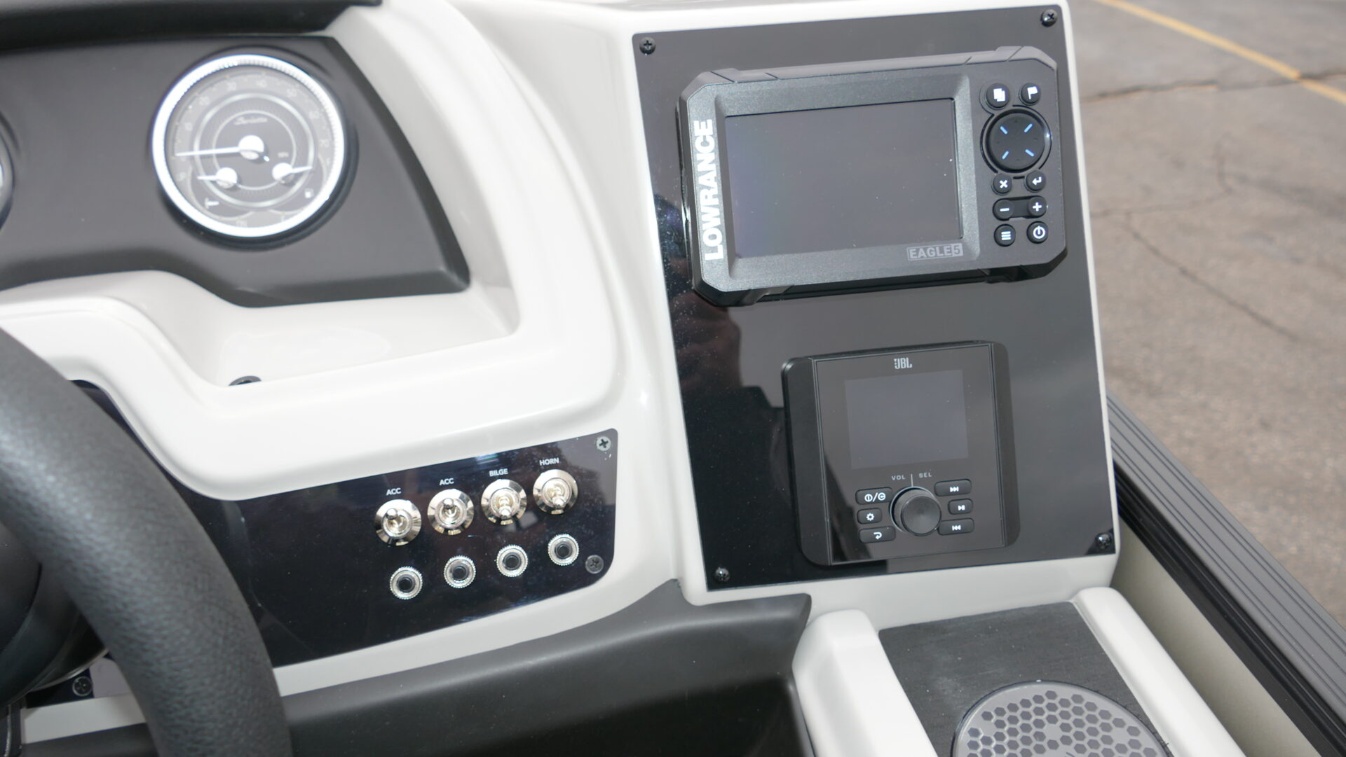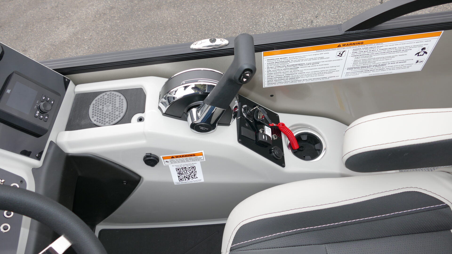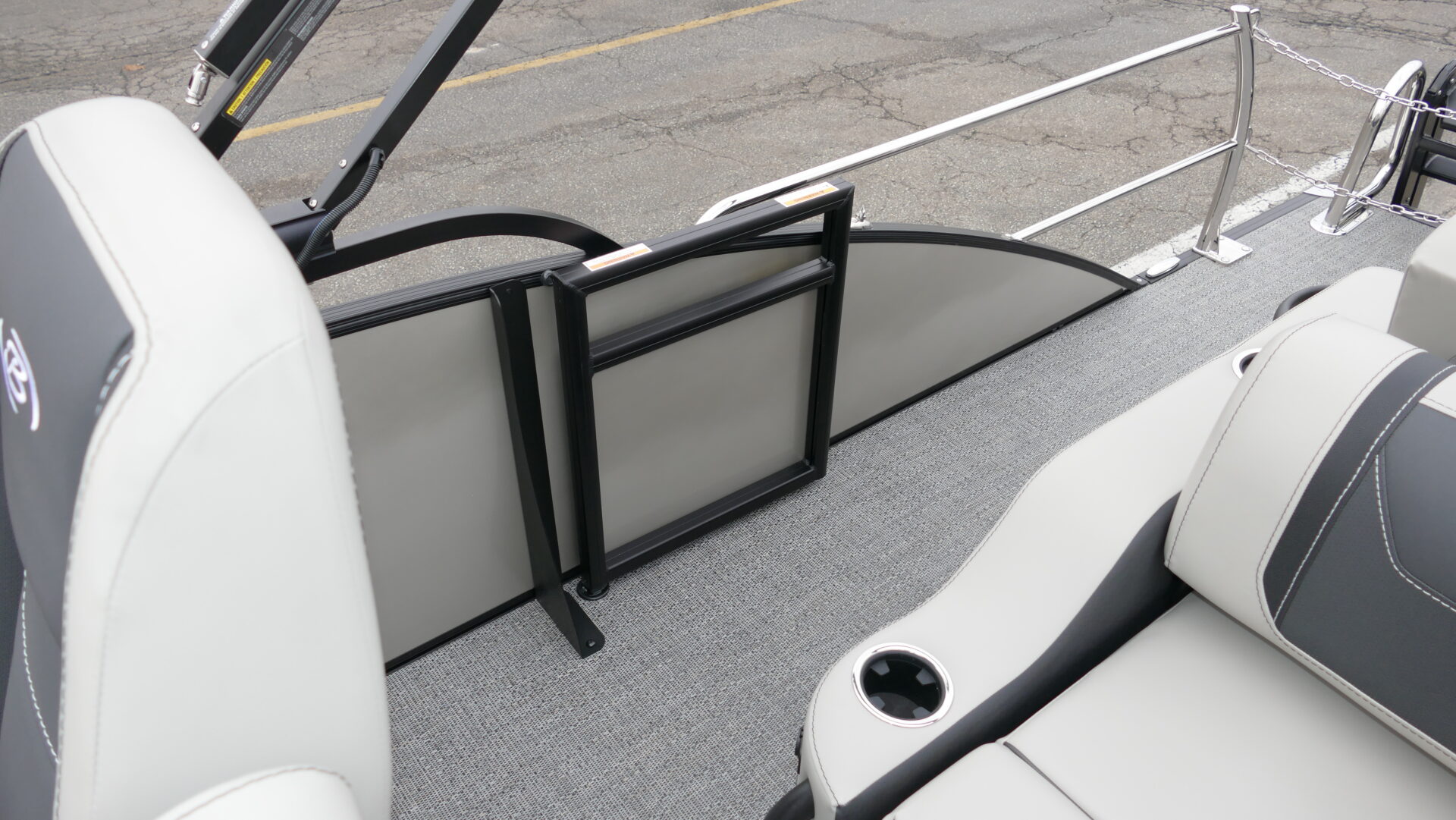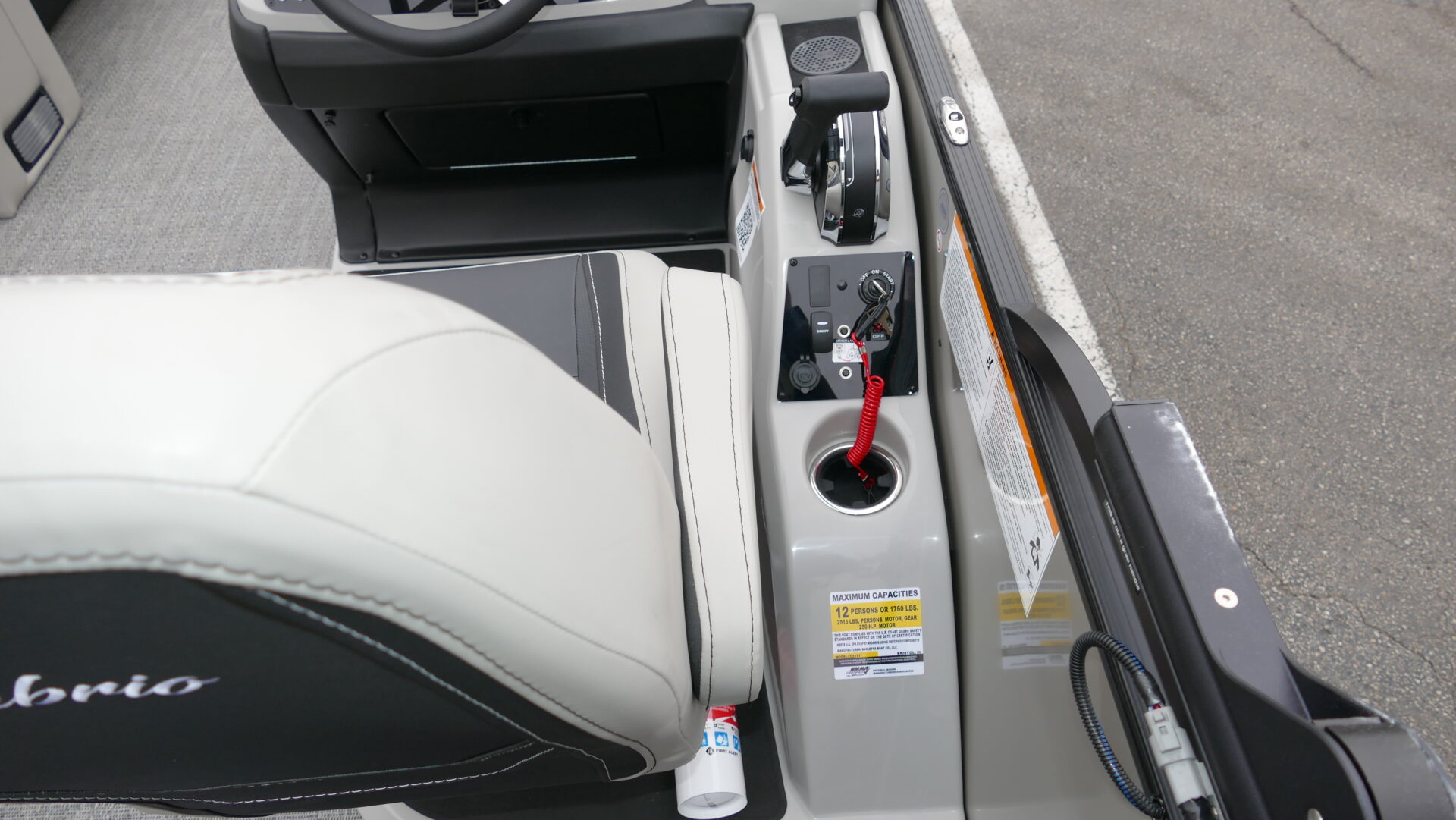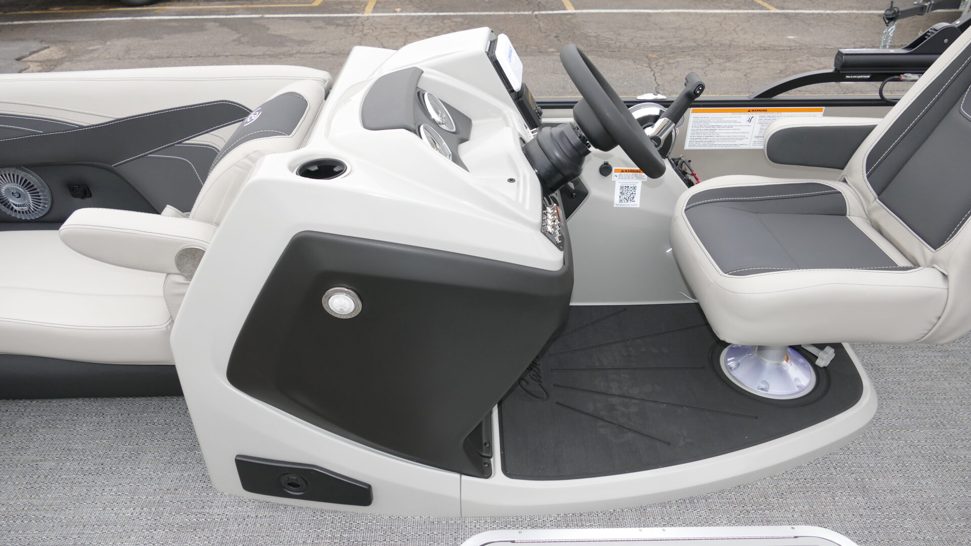 Exterior Colors : Railskin Color – Matte Black, Railskin Color Accent- Champagne, Interior Colors : Marquesan Gray / Onyx Accent, Flooring : Amore Gray Full Length Flooring, Cabrio Tri Toon Package Includes: 25″ Center Tube with 50 Gallon Fuel Tank, Full Lifting Strakes (Inside & Outside), Hydraulic Steering, Ski Tow Bar, Full Belly Skin, In Floor Midship Storage, Mercury 200L. V6 4 Stroke With Power Assist Steering, Cabrio Blackout Package Includes : Black Rails, Black Bimini, Black Rubrail, Black Skirting, Black Shims And Gate Pockets, Black Heavy-Duty Rail Supports, Subwoofer And Amplifier, Stainless Steel Saftey Stanchions With Chains, Stainless Seel Flag Pole With American Flag, On Board Battery Charger, Stainless Steel Propeller, Lifetime + 10 Year Bow To Stern Warranty. Trailer Available For A Additional Cost.