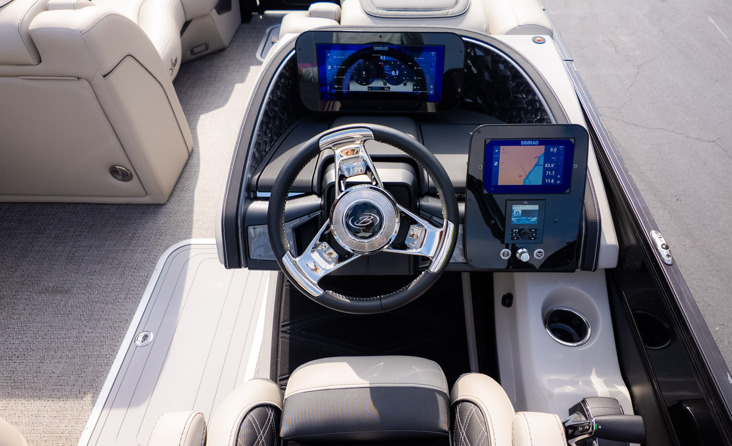 The Lusso L23M is perfect for hosts who love to entertain. The Meridian Flip Table is a thoughtful addition for on-water dining or games. And with the Enhanced Display JBL Marine Stereo featuring six speakers, a subwoofer, and a 1500W amplifier, your favorite tunes will sound incredible. For those who enjoy watersports, the tube-tow watersports cage is ready for action. This boat truly shines for families and groups who prioritize relaxation, entertainment, and making unforgettable memories on the water. Powering your adventures is the Mercury (D) 300L Verado V8.