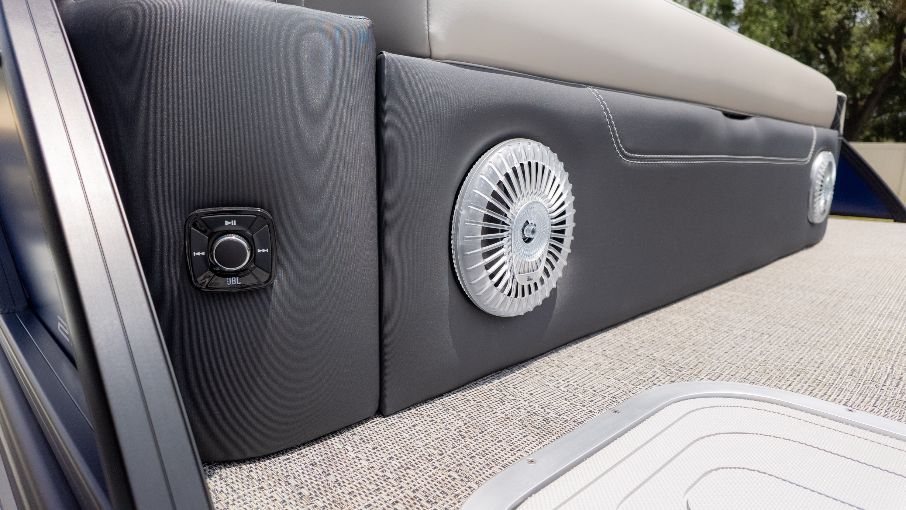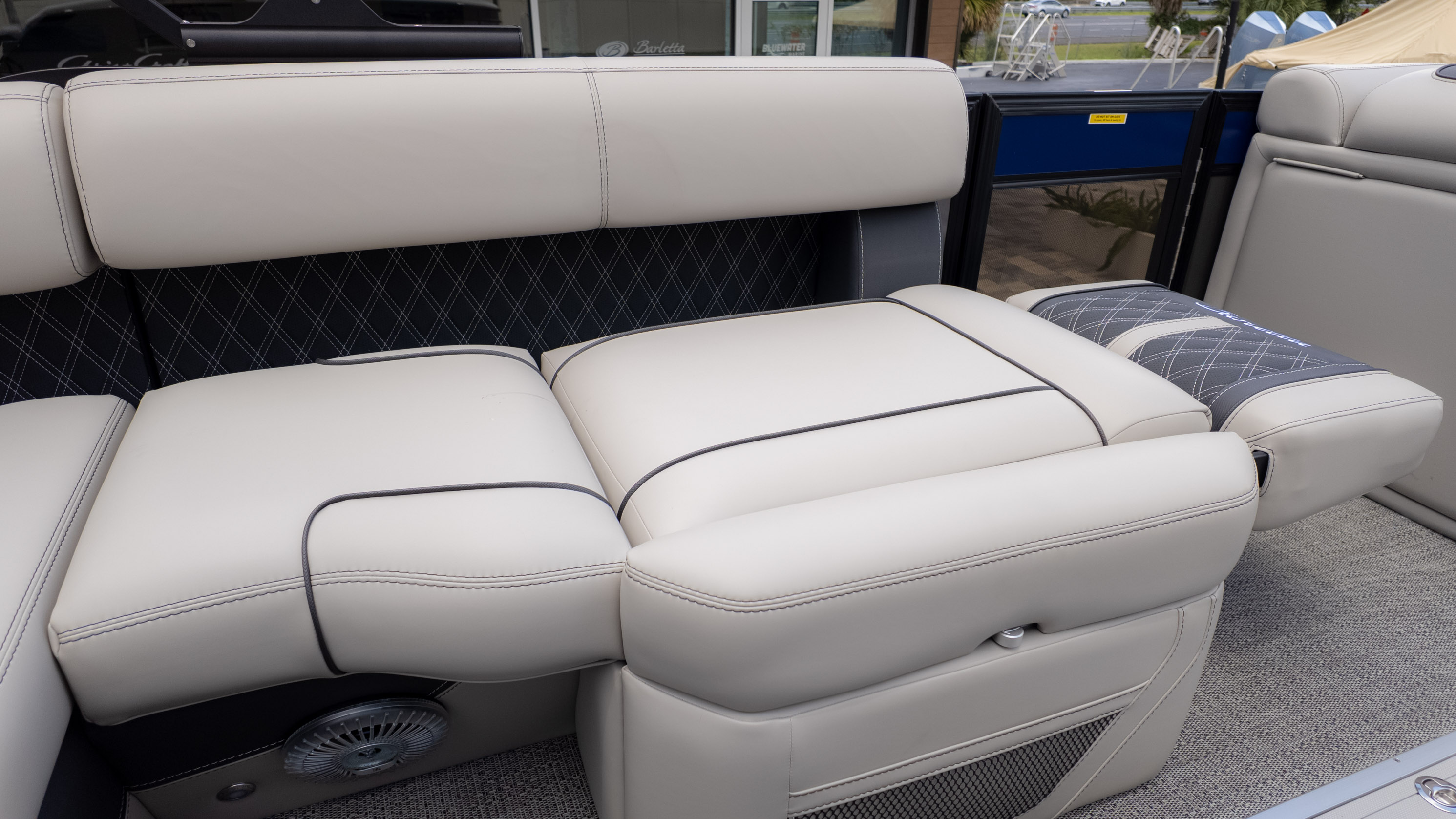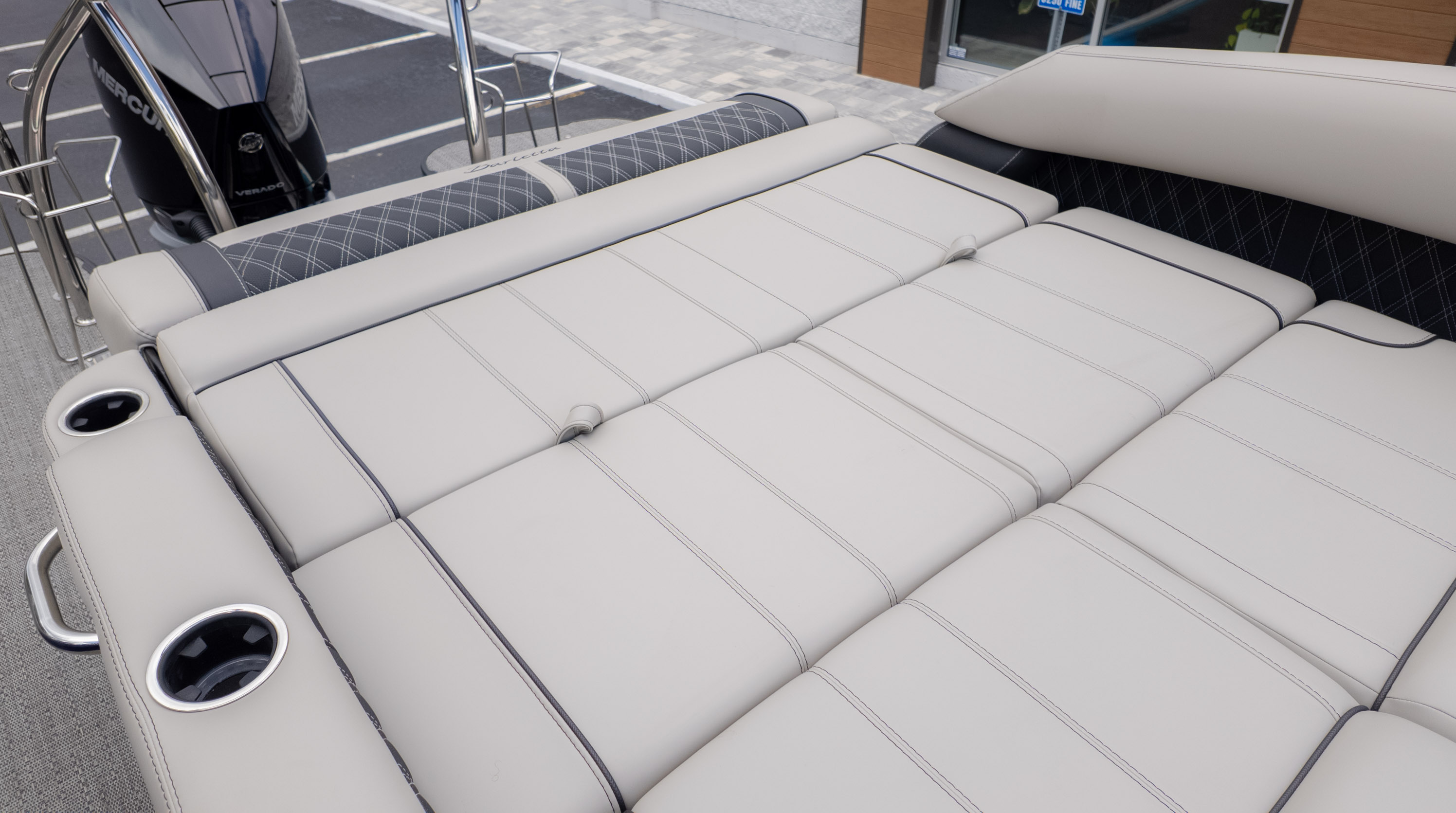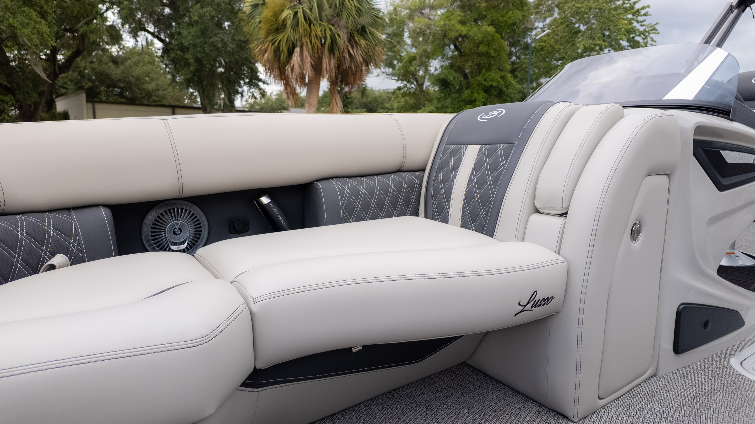 Imagine lounging on the Marquesan Gray with Onyx furniture, enjoying the expansive feel of the Amore Gray flooring underfoot. The Triple Toon Package ensures a stable and smooth ride, perfect for those who appreciate a relaxed pace on the water. And with the Ultra-Lounge Multi-Position Stern Lounge, complete with USB ports and Yeti-Ready cupholders, you'll find the perfect spot to unwind and soak up the sun.