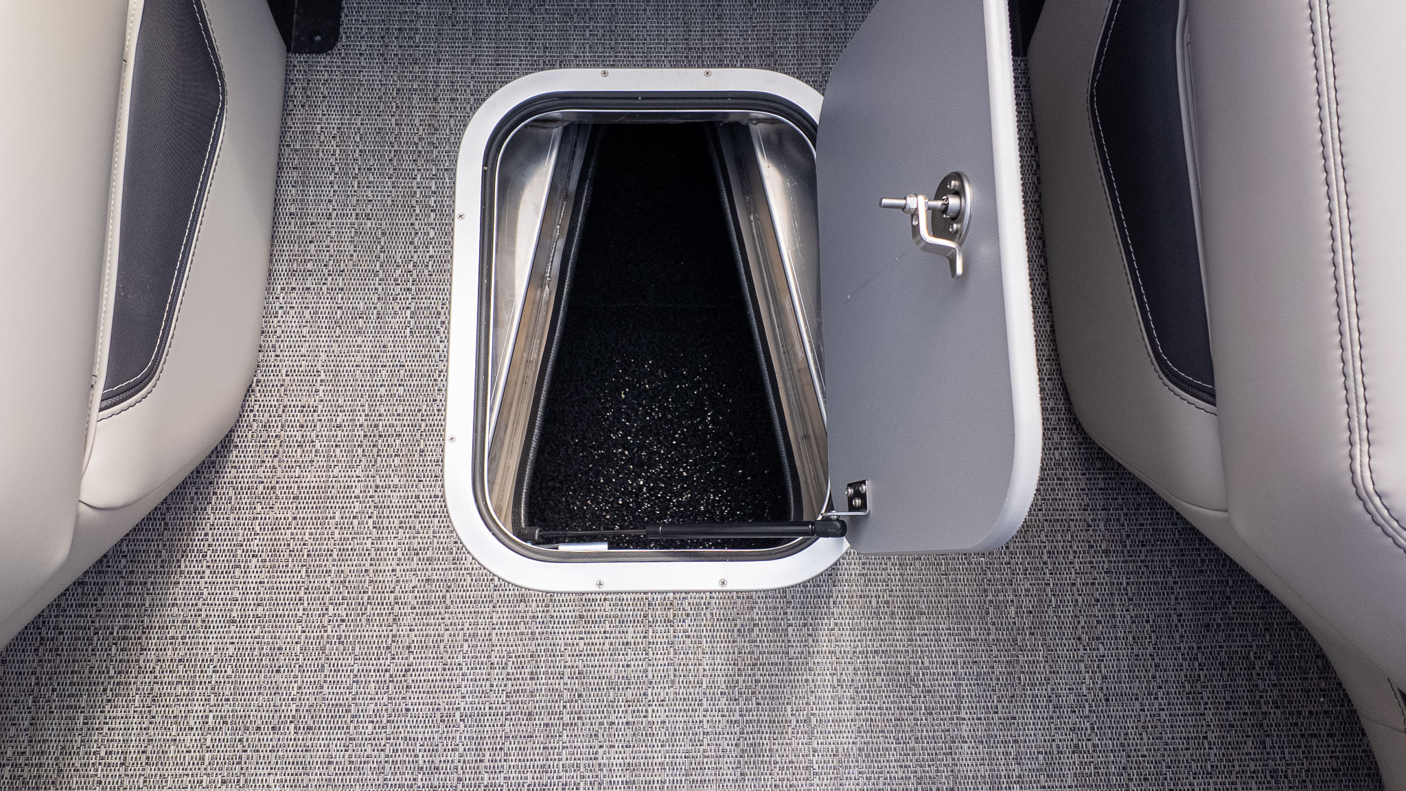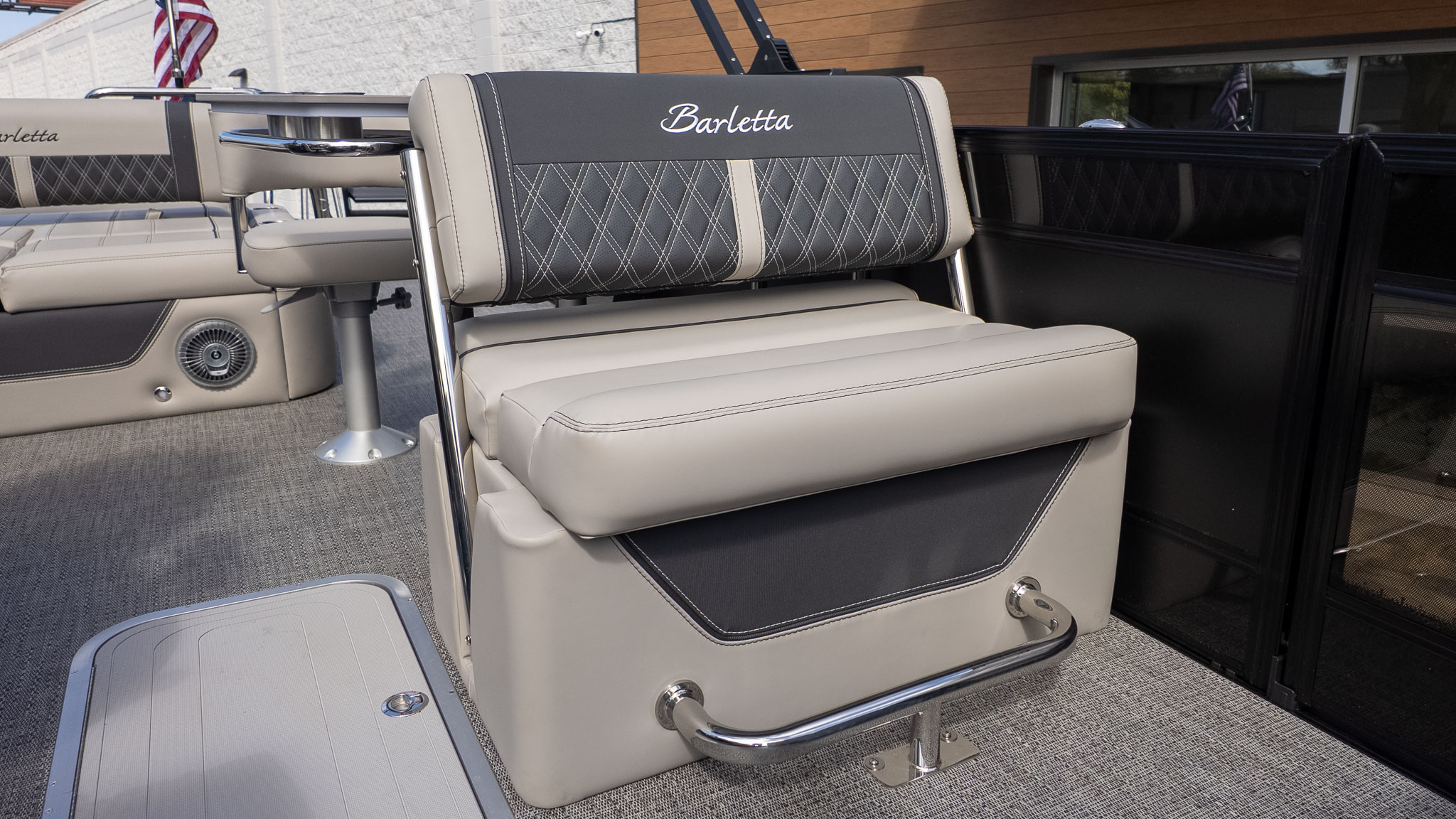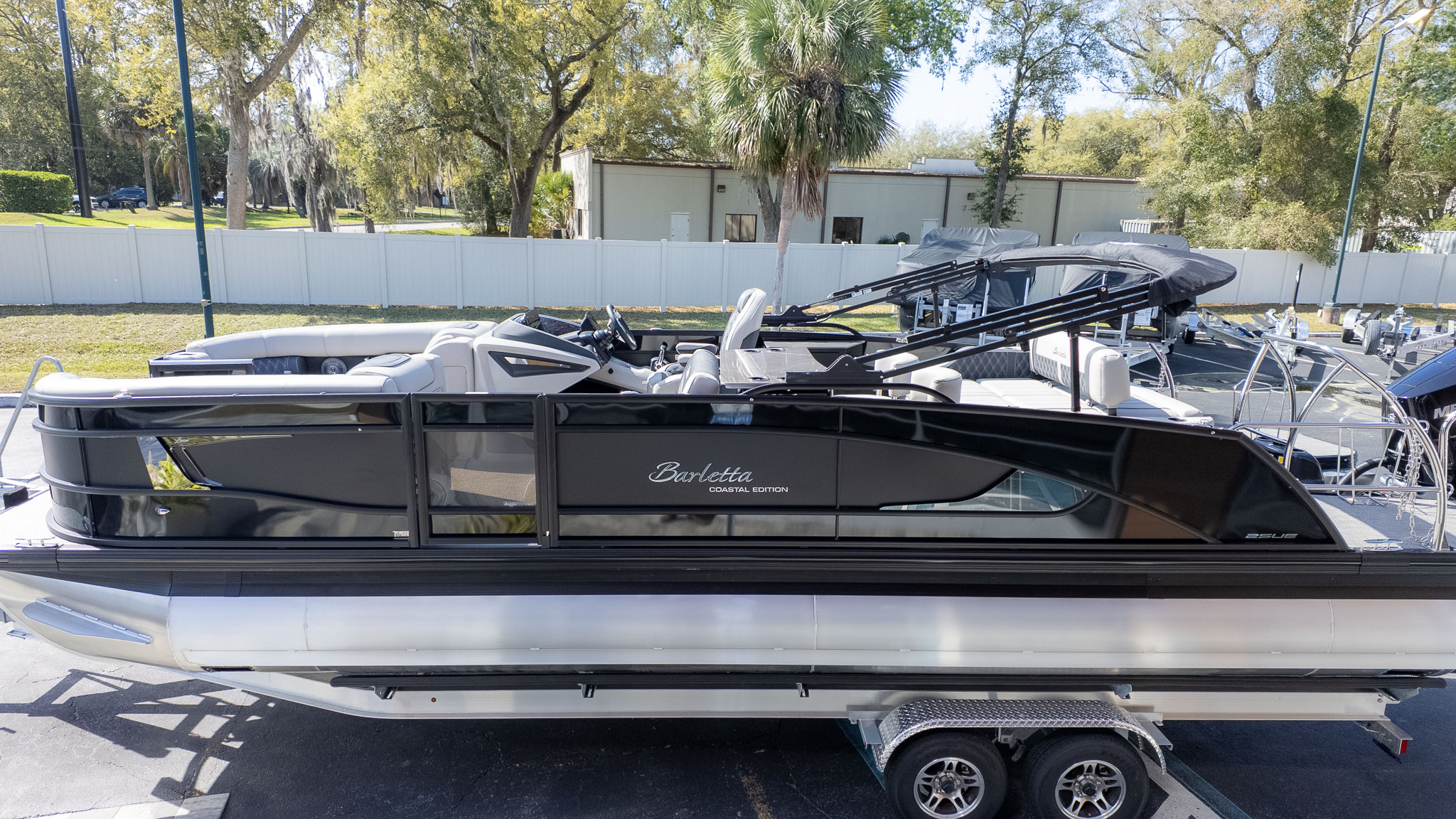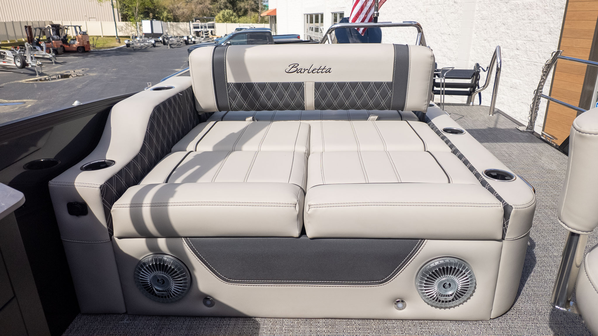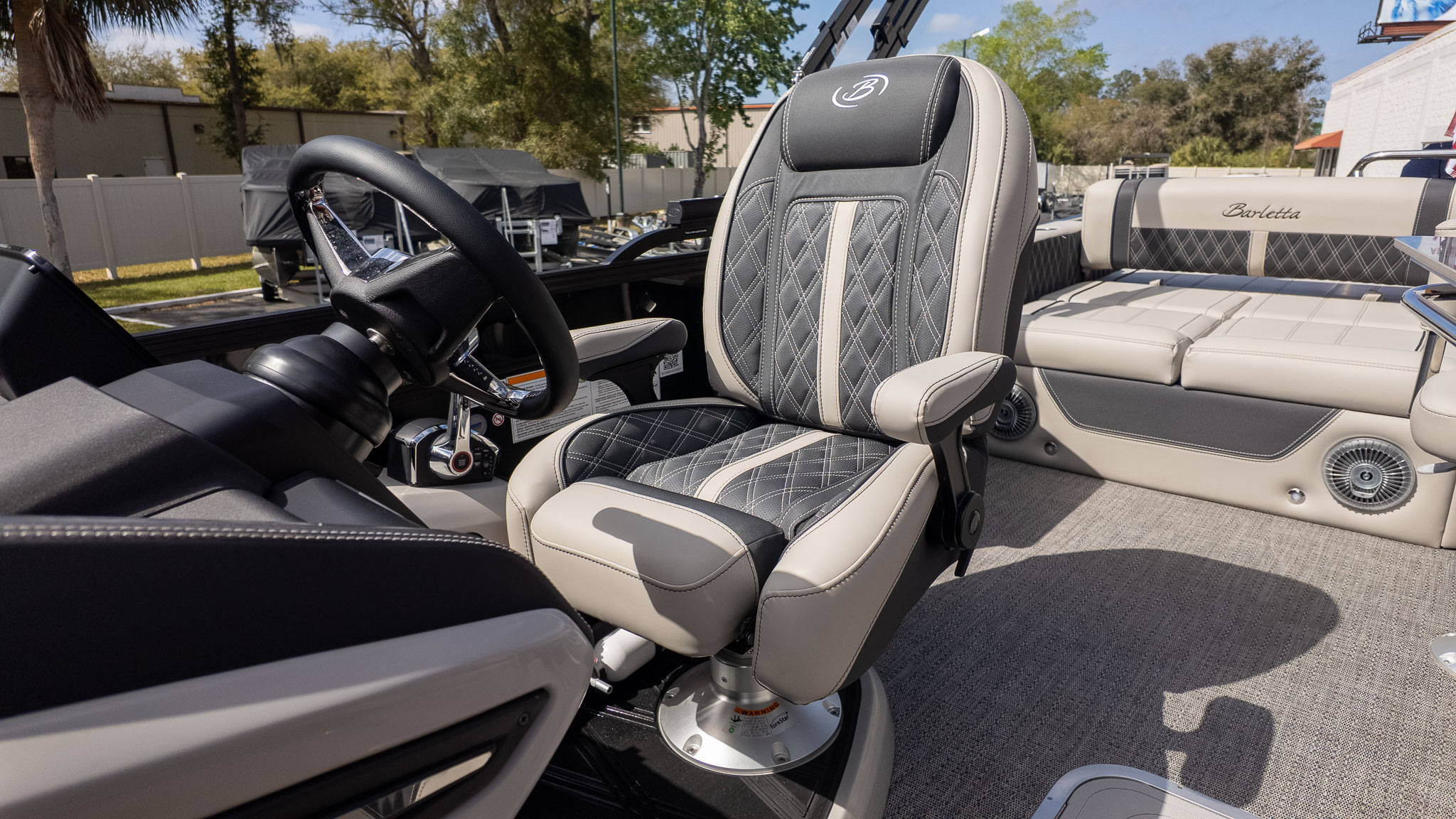 When the party transitions from lively conversation to pure relaxation, the multi-position Ultra-Lounge at the stern offers five different configurations, shifting from a supportive bench to a massive sunpad in seconds. For your four-legged co-captains, Barletta’s signature "Doggie-Dock View" gates and integrated pet dishes ensure your pups are just as pampered as the guests. Under the hood, the Mercury 425L V10 Verado provides effortless, silky-smooth power to move your crew across the water with a quiet confidence that won't interrupt the JBL marine stereo's playlist. Whether you’re anchored at the sandbar or cruising under the white underwater lights, this boat is built for the entertainer who wants to lead the pack in both style and comfort. With plush Marquesan Gray furniture and the sleek Black Diamond finish, you’re not just throwing a party; you’re setting the gold standard for on-water living.
