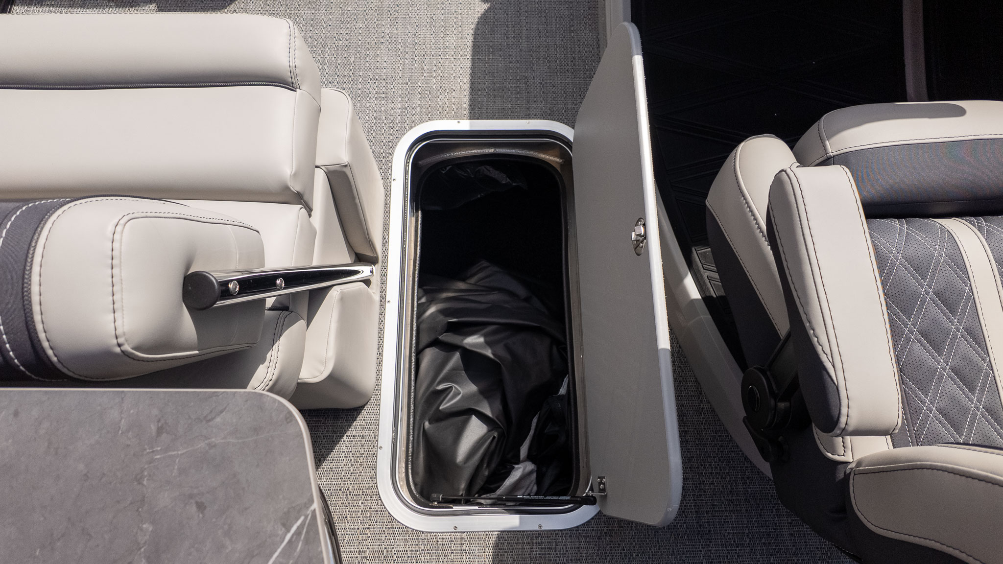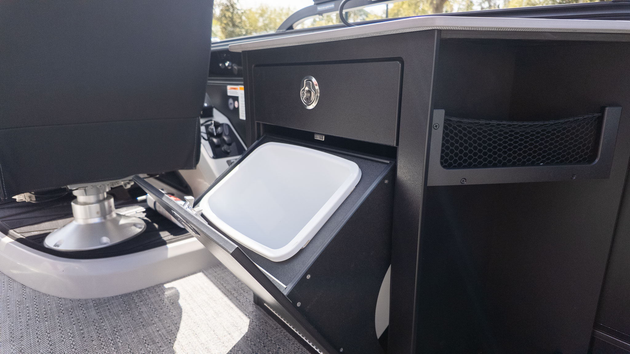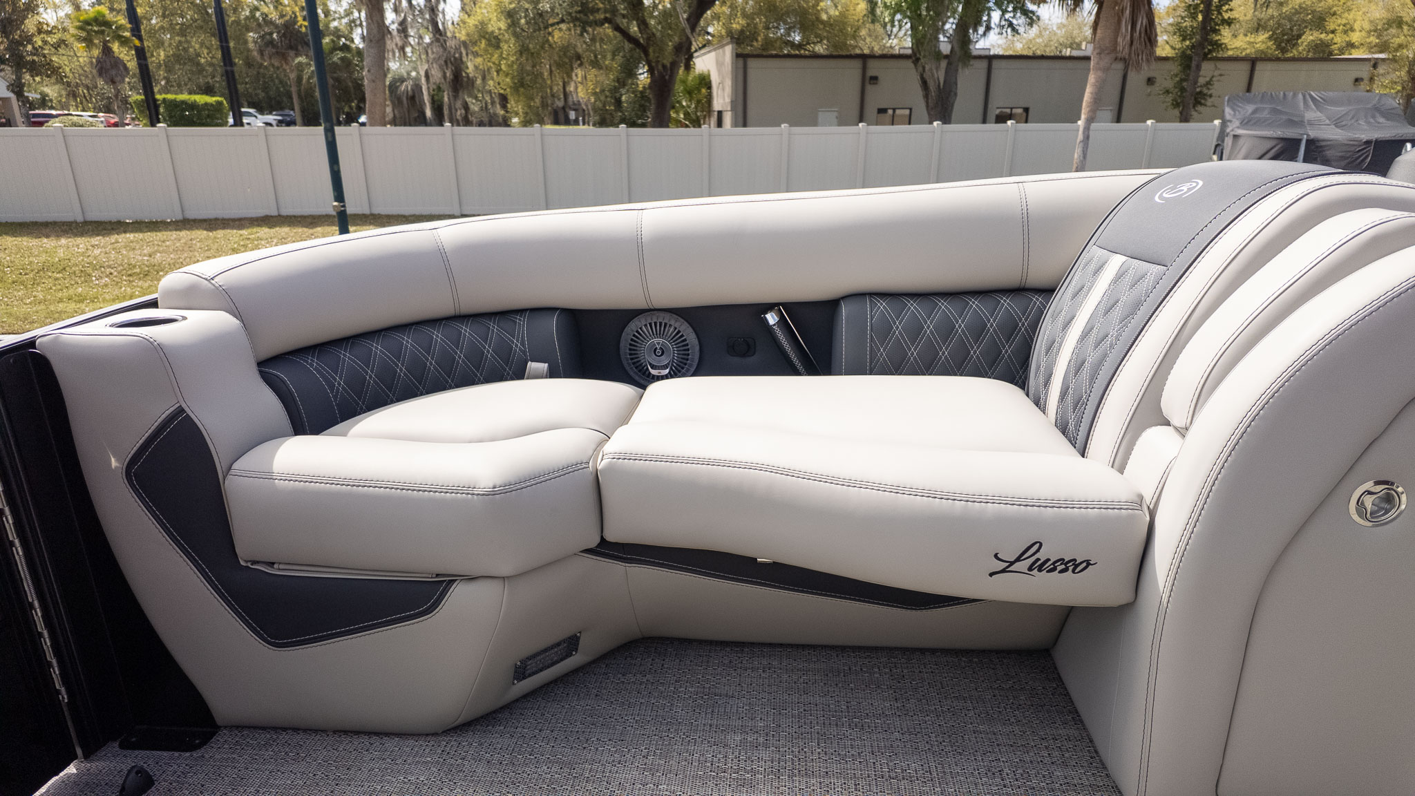 If you’re the designated host of your social circle, the Barletta Lusso L25UE is your new floating headquarters. This isn’t just a boat; it’s a high-end lakeside lounge designed for those who believe the best days are spent surrounded by friends, family, and a constant stream of cold drinks. The standout "Ultra-Entertainer" layout features a versatile high-top bar table complete with upholstered swivel stools, creating the perfect mid-ship hub for serving snacks or a round of sunset cocktails.