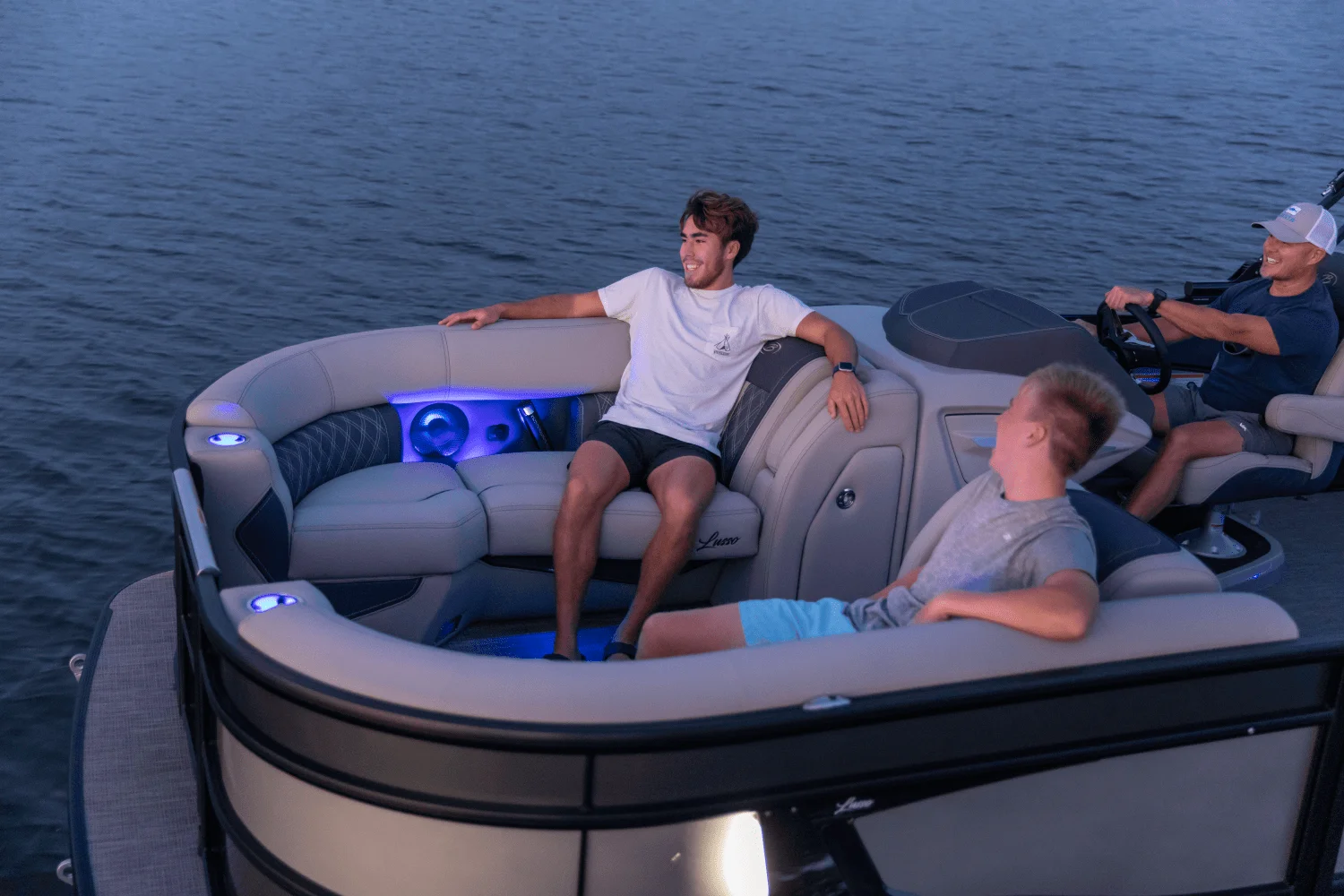 Is the Lusso right for you? Designed wth you and your on-water experience in mind, the Barletta Lusso models offer something for everyone. A classic and Stylish Rail-set, Ultra-soft and Ultra-Comfortable furniture, a sleek helm loaded with technology and leg-room, pet friendly amenities... the list goes on and on. Take a look and see why the Barletta L-class pontoon boat just might be the perfect choice for you and your family. There's something for everyone on the ultra-versatile, Ultra-popular Ultra-Lounge. The Rear Lounge turns into 5 different seating positions giving you flexibility in any situation. The front chaise lounges are the cherry on the top when it comes to seating everyone on board comfortably.