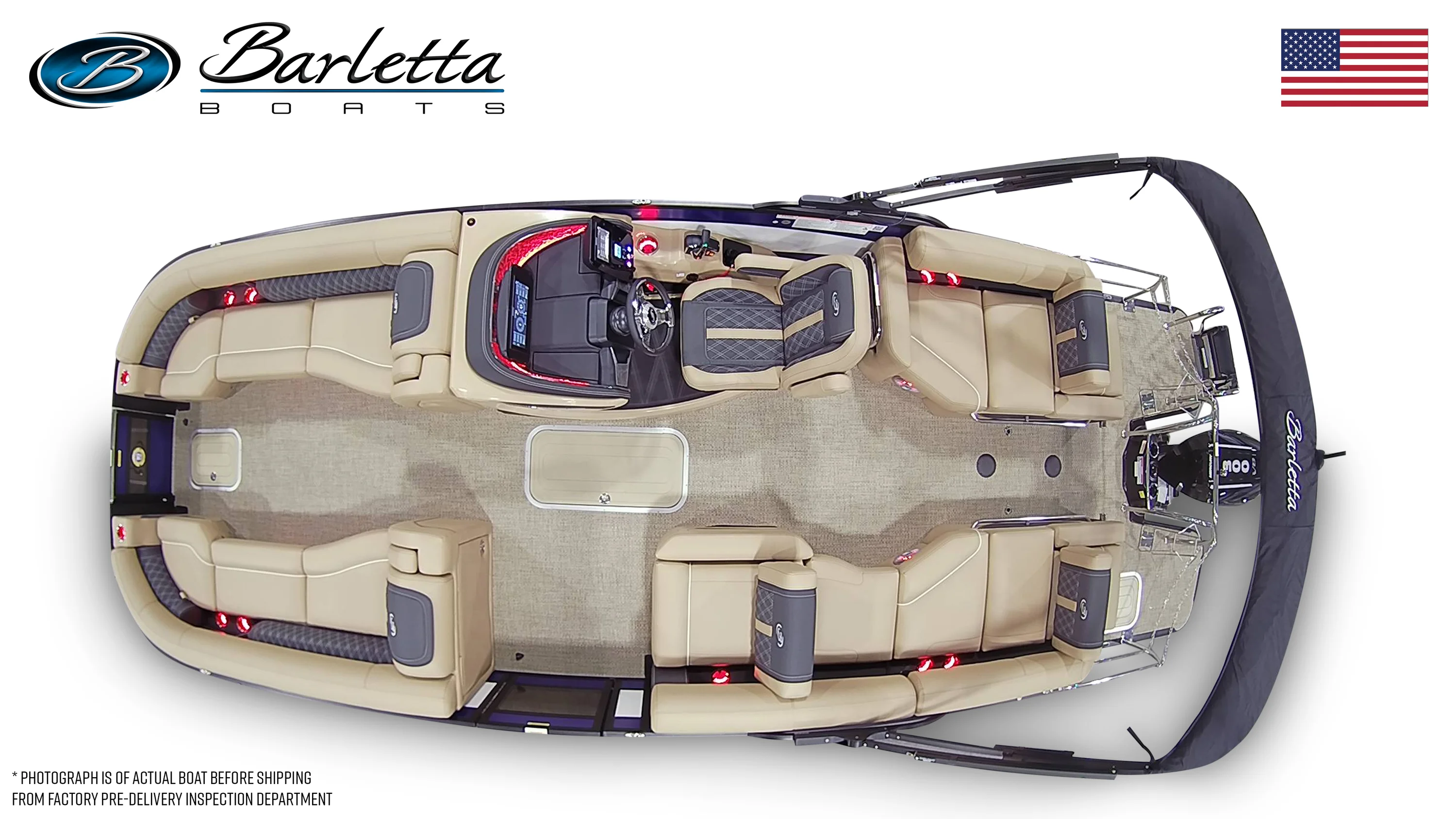 Each detail of the LUSSO25M reflects Barletta's commitment to quality. The luxurious finishes and thoughtful designs create an ambiance where relaxation meets sophistication, perfect for any occasion on the water.