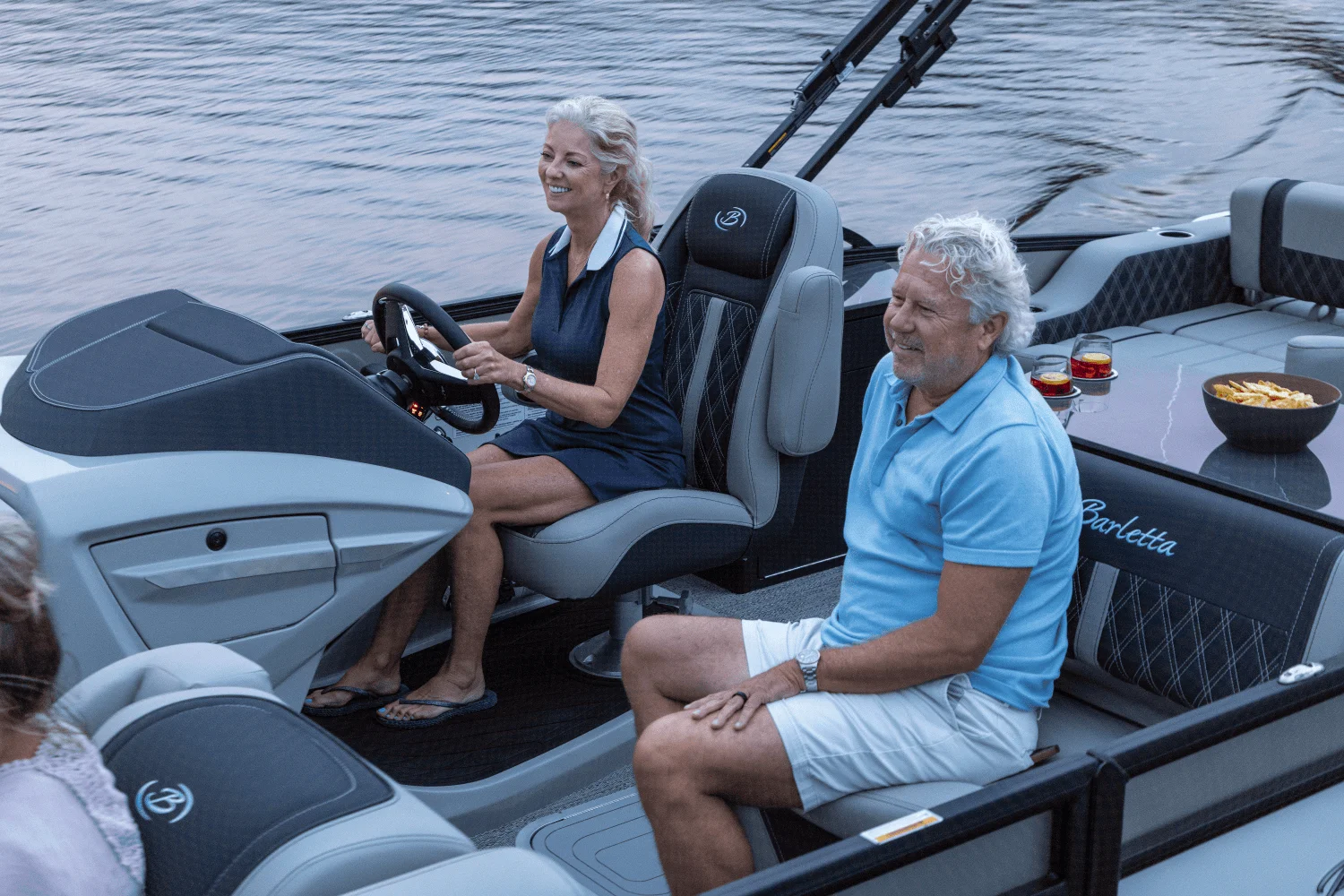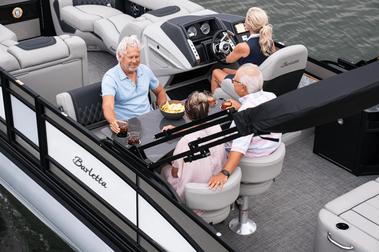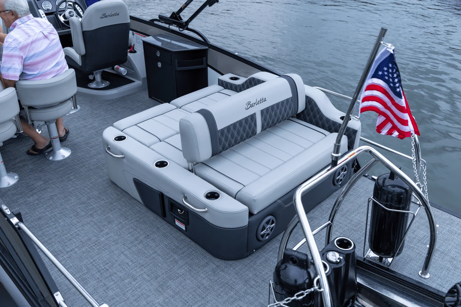 Is the Lusso right for you? Designed wth you and your on-water experience in mind, the Barletta Lusso models offer something for everyone. A classic and Stylish Rail-set, Ultra-soft and Ultra-Comfortable furniture, a sleek helm loaded with technology and leg-room, pet friendly amenities... the list goes on and on. Take a look and see why the Barletta L-class pontoon boat just might be the perfect choice for you and your family. The highlight of the Ultra-Entertainer floorplan is the versatile high-top table accompained by two upholstered swivel stools with additional multi-function bench seating perfect for hosting family and friends of all ages. Moving to the stern of the boat you will find the one-of-a-kind Ultra-Lounge featuring 5 different seating positions. To round-off this floorplan, you will find the standard chaise-lounge seating in the bow designed for comforting lounging and extra seating.