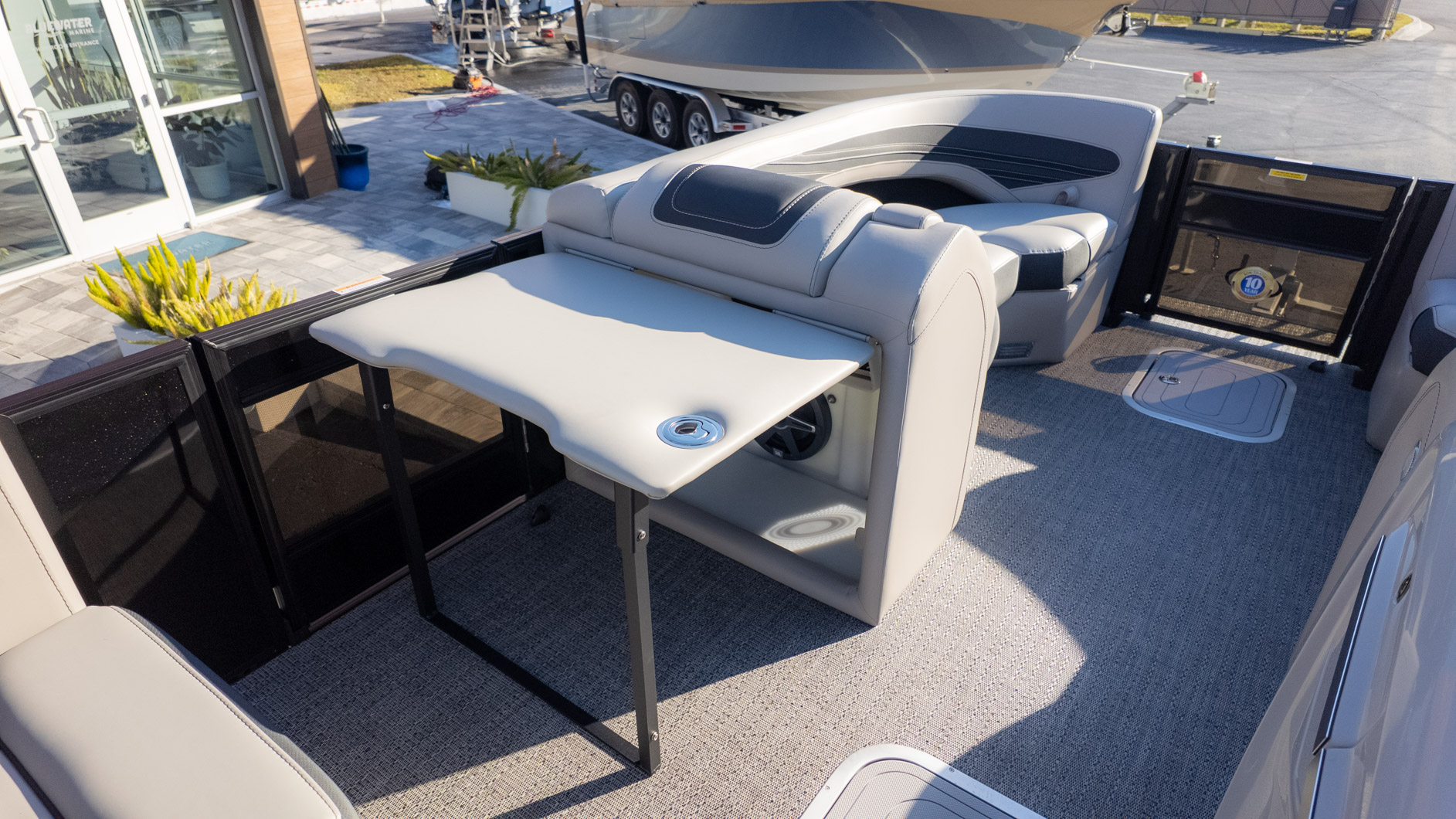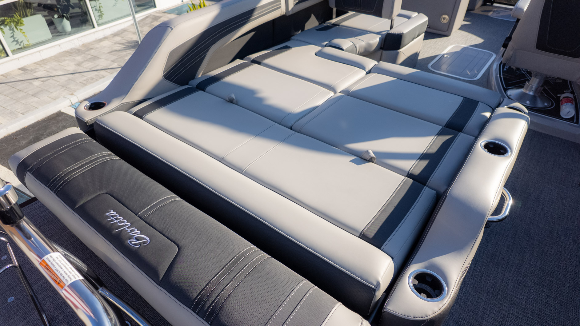 The famous Ultra-Lounge transforms into five different seating positions, ensuring that whether you're relaxing with a drink or watching the kids tube off the back (thanks to the built-in tow cage!), everyone has the best seat in the house. Plus, with thoughtful features like integrated pet food dishes and a Doggie-Dock View through the bow gate, your furry co-pilots are covered. Toss in the premium JBL Marine Stereo, Interior RGB lighting, and plenty of Yeti-Ready cupholders, and you have a sleek, floating party platform ready for endless family fun.