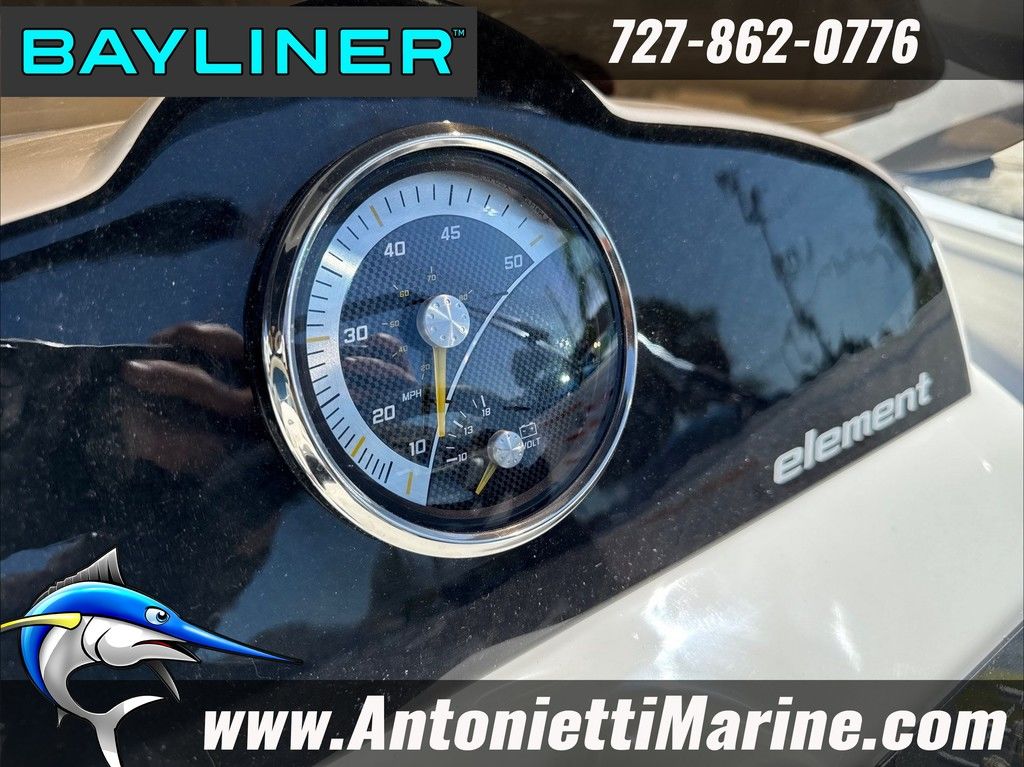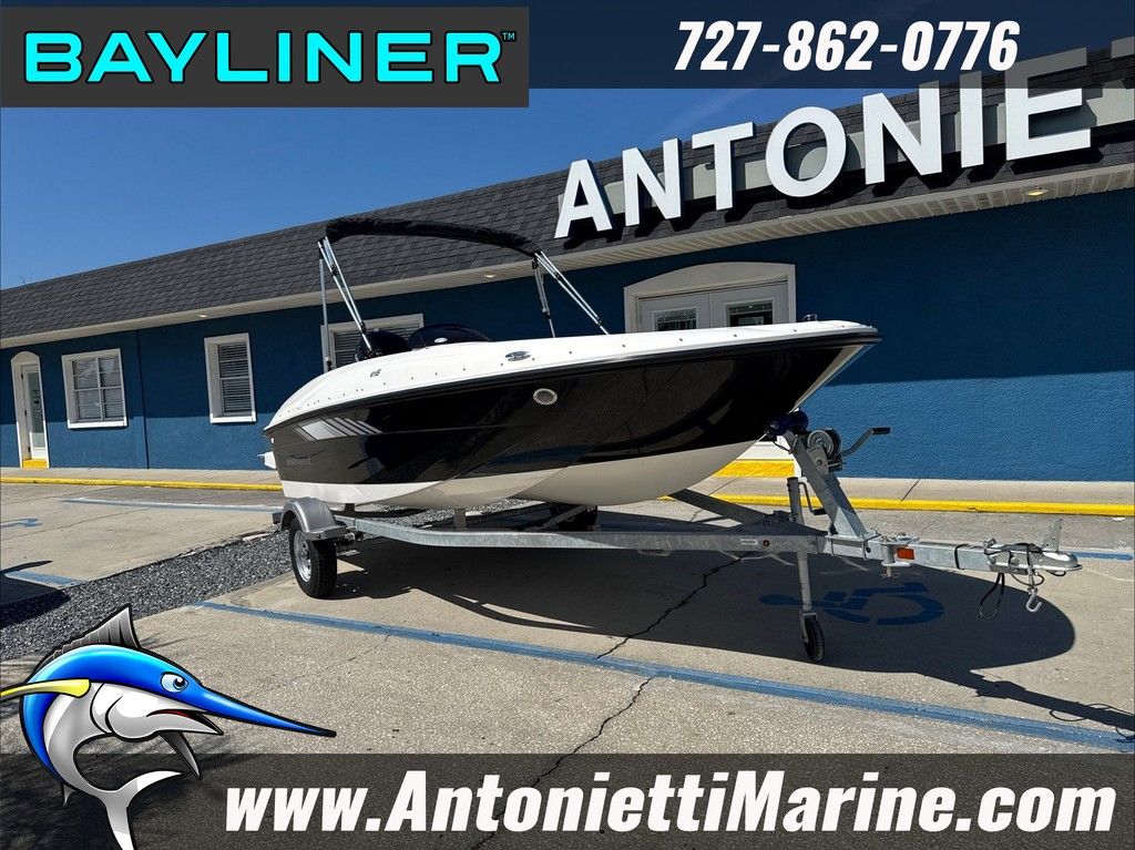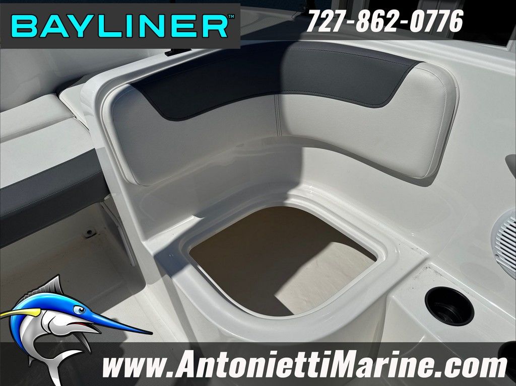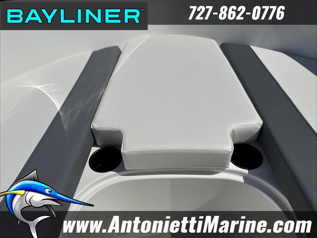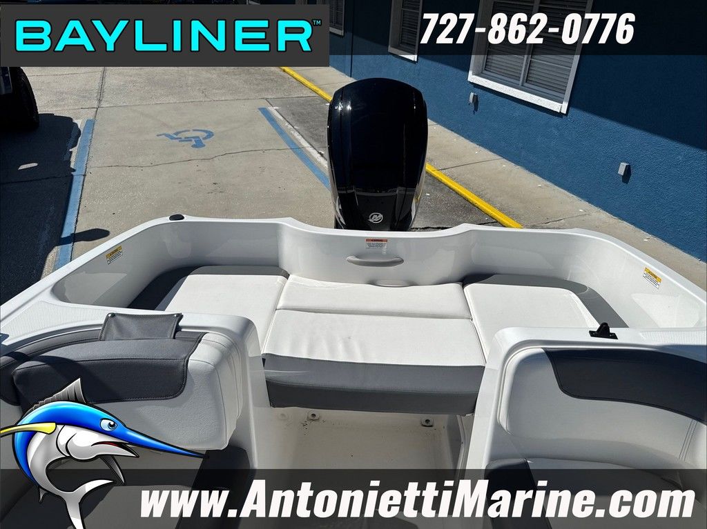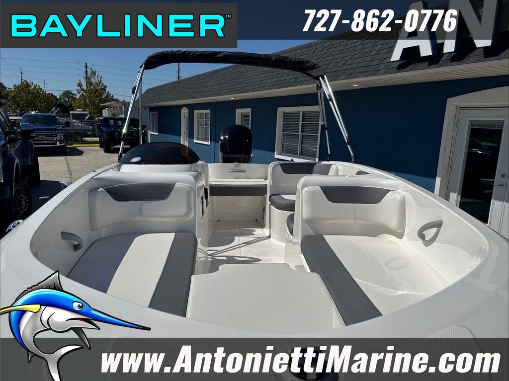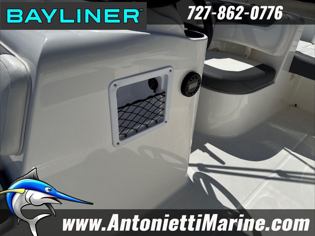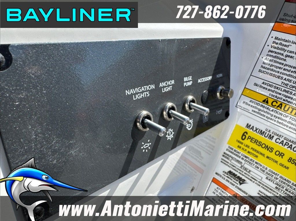 The Bayliner E16's Convenience Package includes a Bimini with a 6’ top and boot, snap-on bow well and cockpit cover, and a waterproof 120-watt AM/FM stereo with MP3 capability—everything you need for comfort, protection, and entertainment on the water!