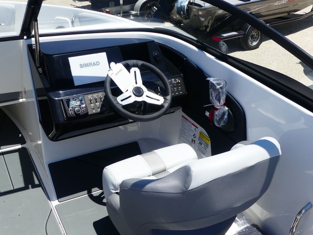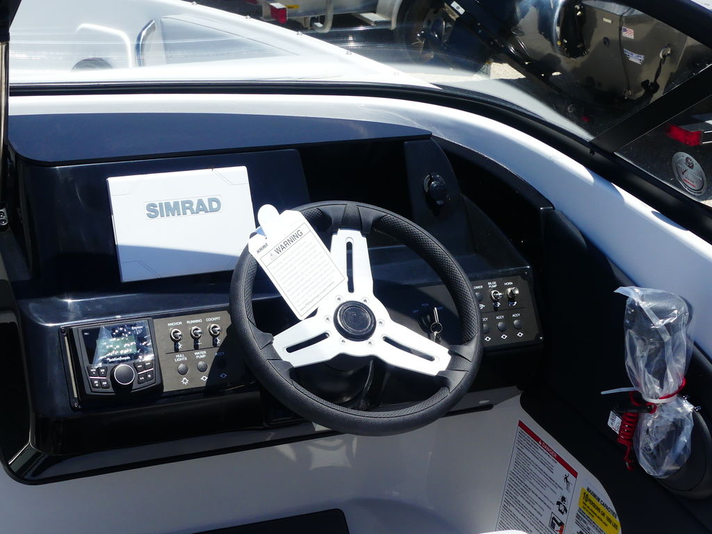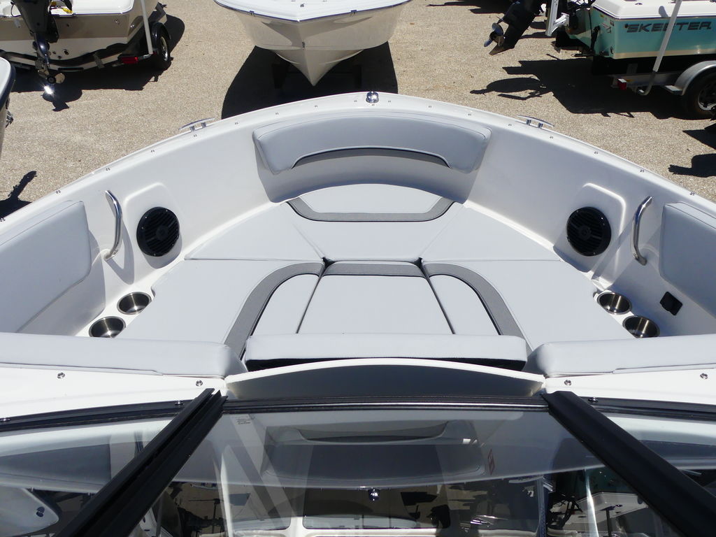Step aboard and you’ll find a spacious, thoughtfully designed layout with plush seating throughout the bow and cockpit. The open bow configuration provides ample room for lounging, while smart storage solutions keep your gear organized for watersports, sandbar hopping, or sunset cruises. With intuitive helm controls and comfortable captain’s seating, this boat is ideal for both first-time owners and seasoned boaters.