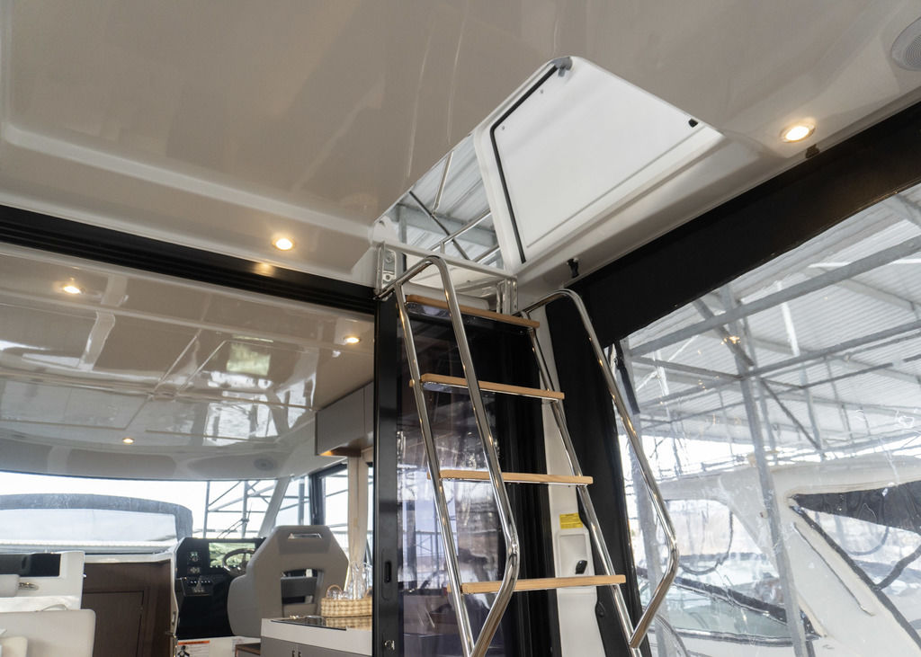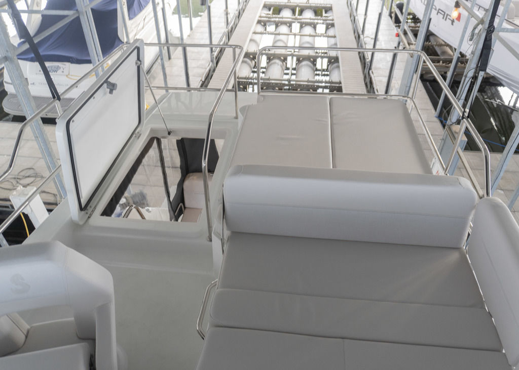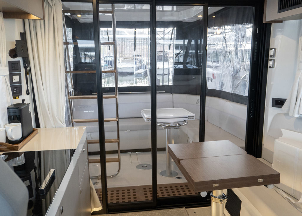 Flybridge with helm station and social seating