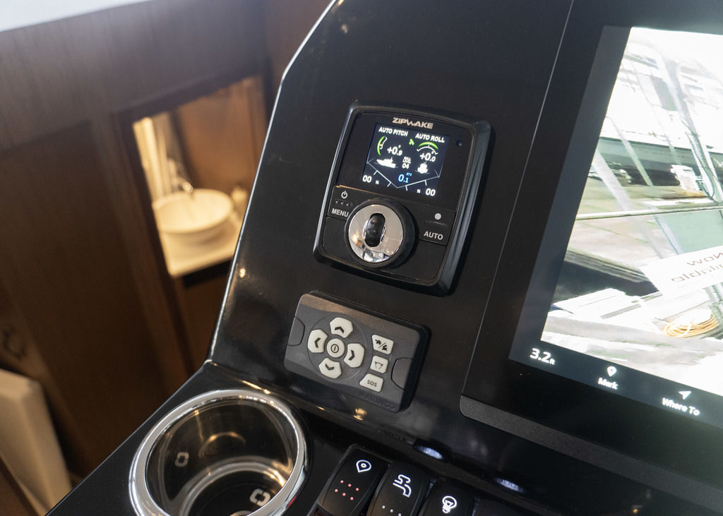 Spacious wheelhouse with panoramic windows for excellent visibility