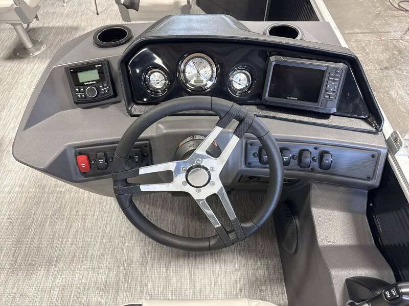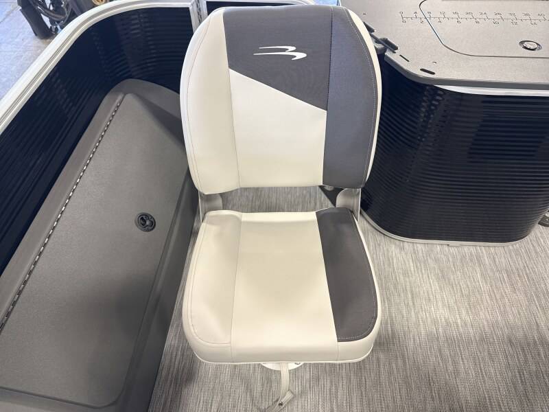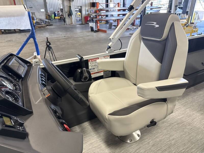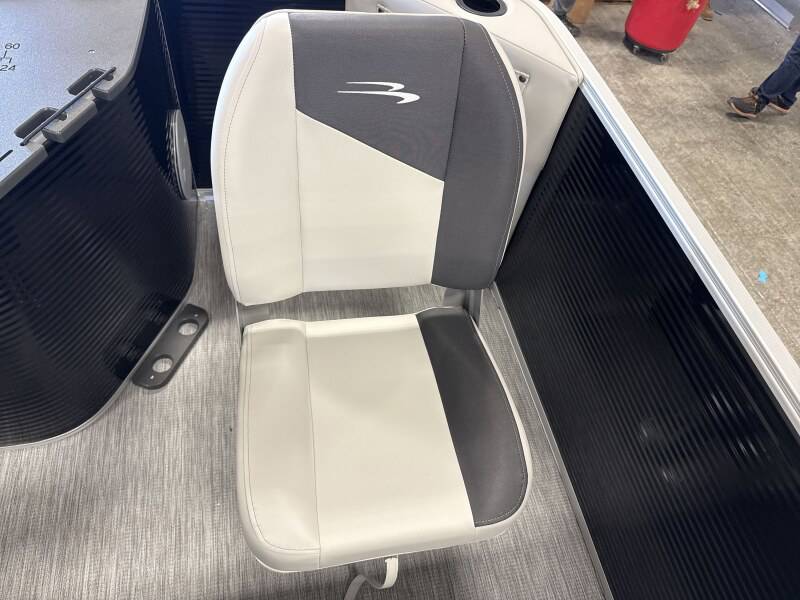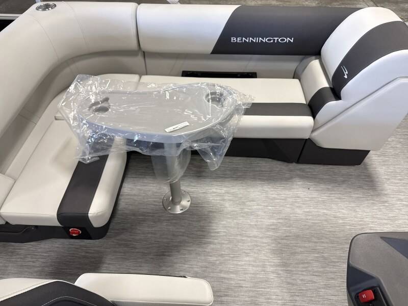 2026 Bennington 20SF powered by a Yamaha!Factory Installed Options:Exterior- gemini blackInterior- leon light silver with slate simtex accentsBlack canvasS series trim packageIronwood trim accentImpulse mineral grey flooringWireless chargerRod locker storage4 bass seats in shadow greyMain display analog V3 Echomap
