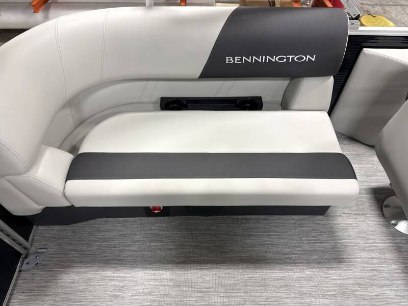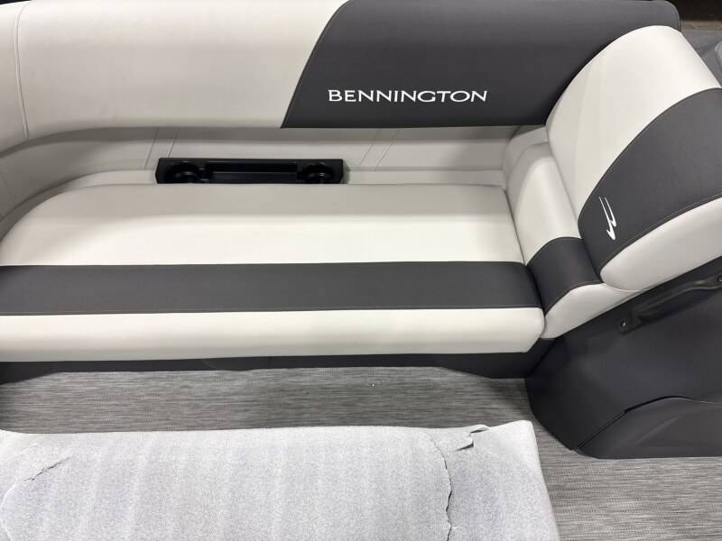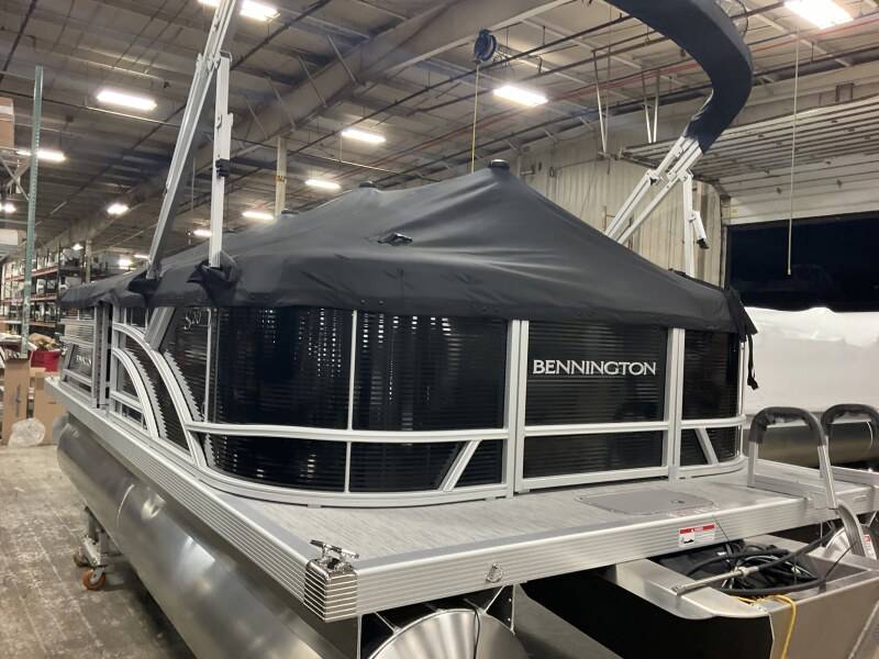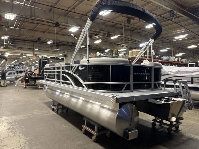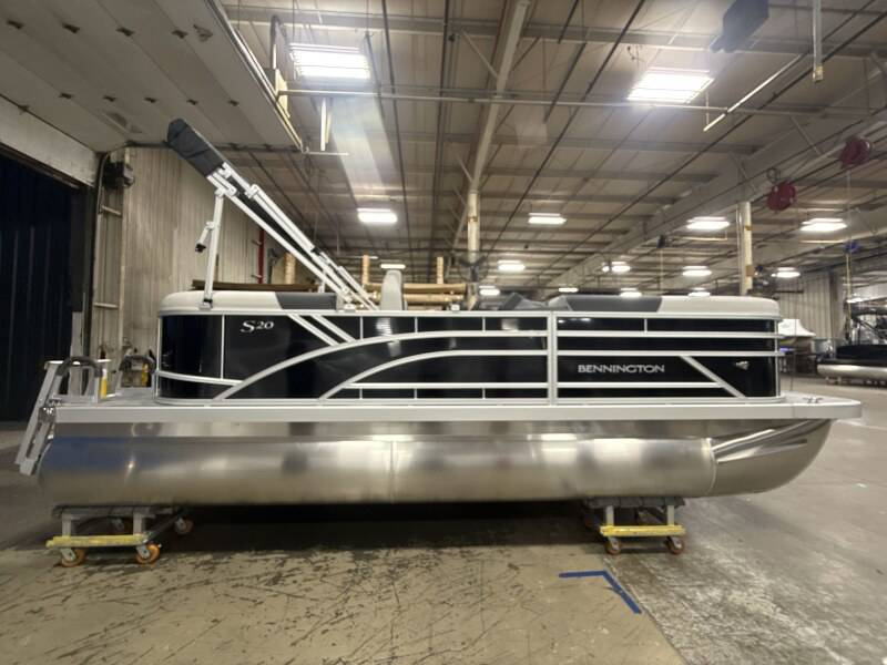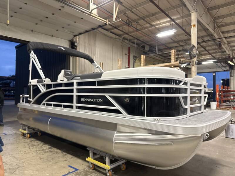 2026 Bennington 20 SSR powered by a Yamaha F90LB!Factory Installed Options:Exterior- gemini blackInterior- leon light silver with slate simtex accentsBlack canvasS series trim packageIronwood trim accentImpulse mineral grey flooringWireless chargerMain display analog V3 Echomap