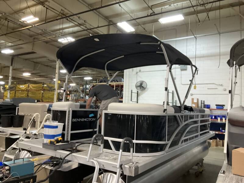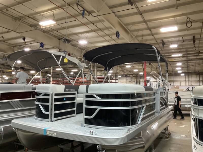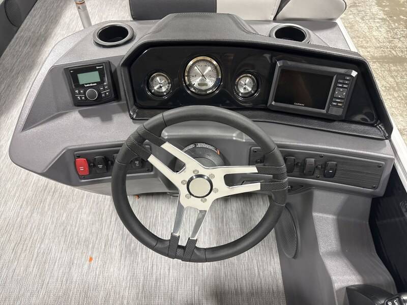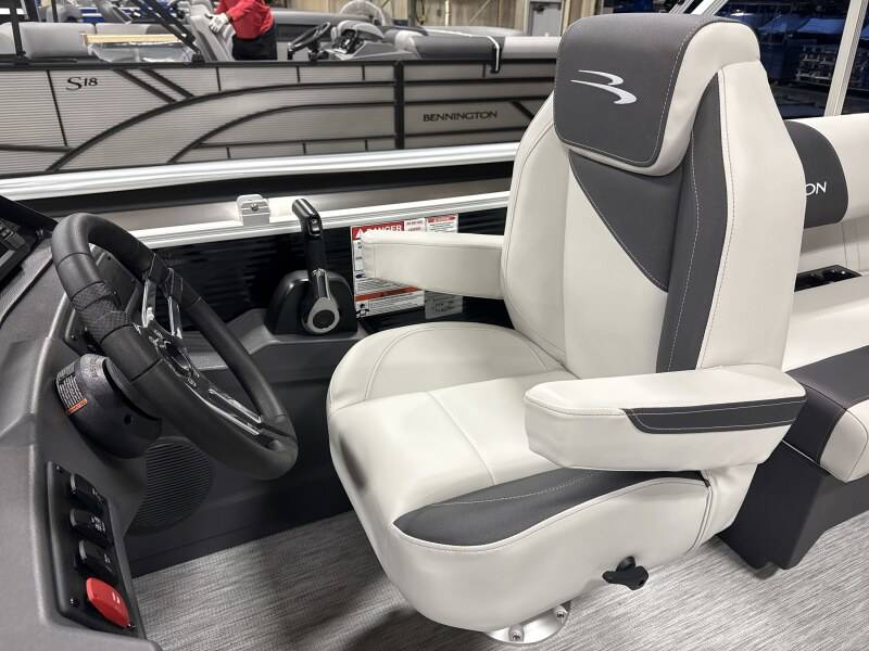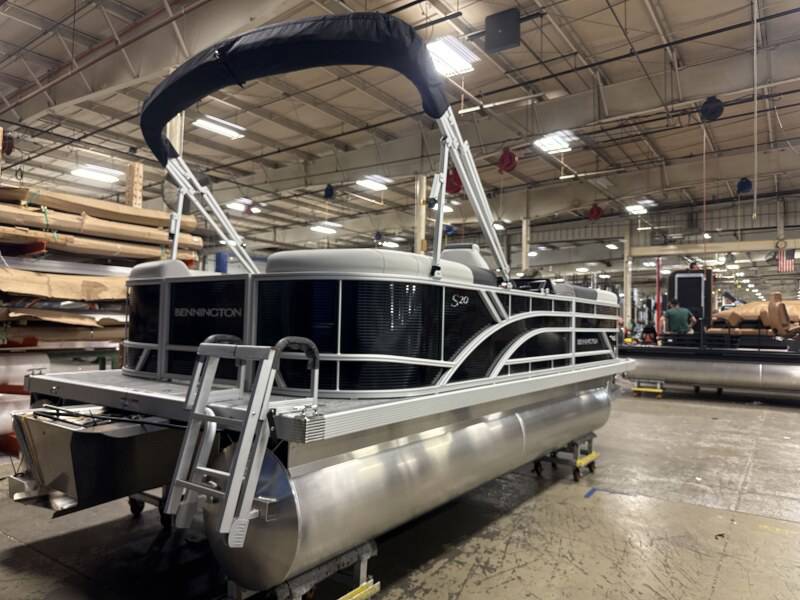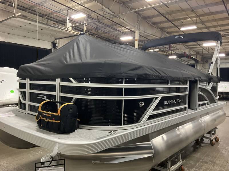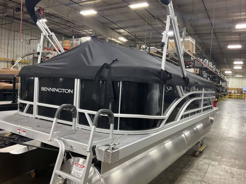 2026 Bennington 20 SSR powered by a Yamaha F90LB!Factory Installed Options:Exterior- gemini blackInterior- leon light silver with slate simtex accentsBlack canvasS series trim packageIronwood trim accentImpulse mineral grey flooringWireless chargerMain display analog V3 Echomap